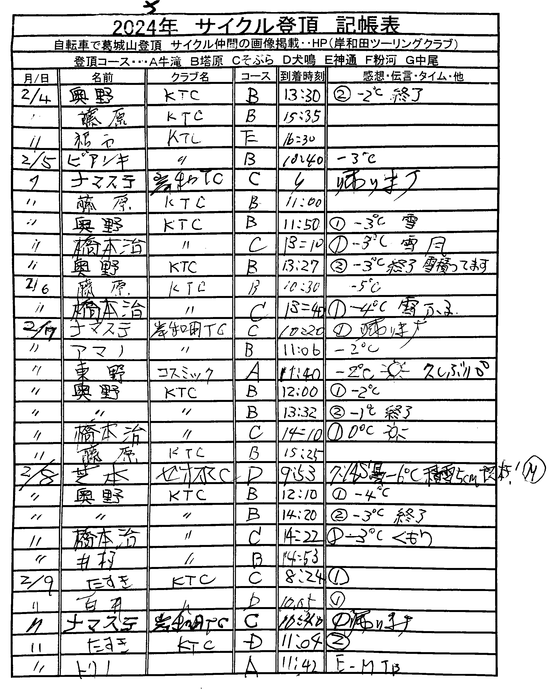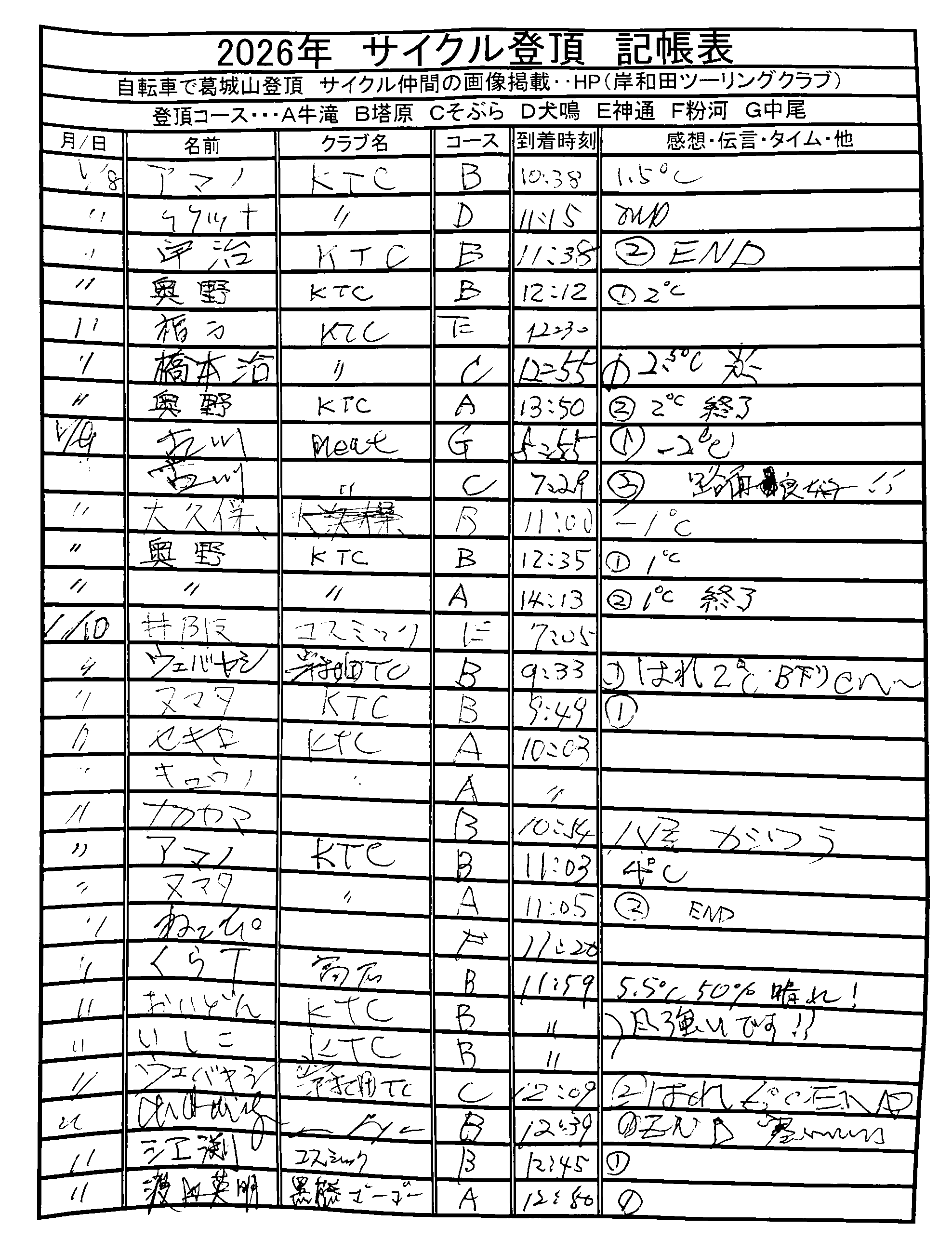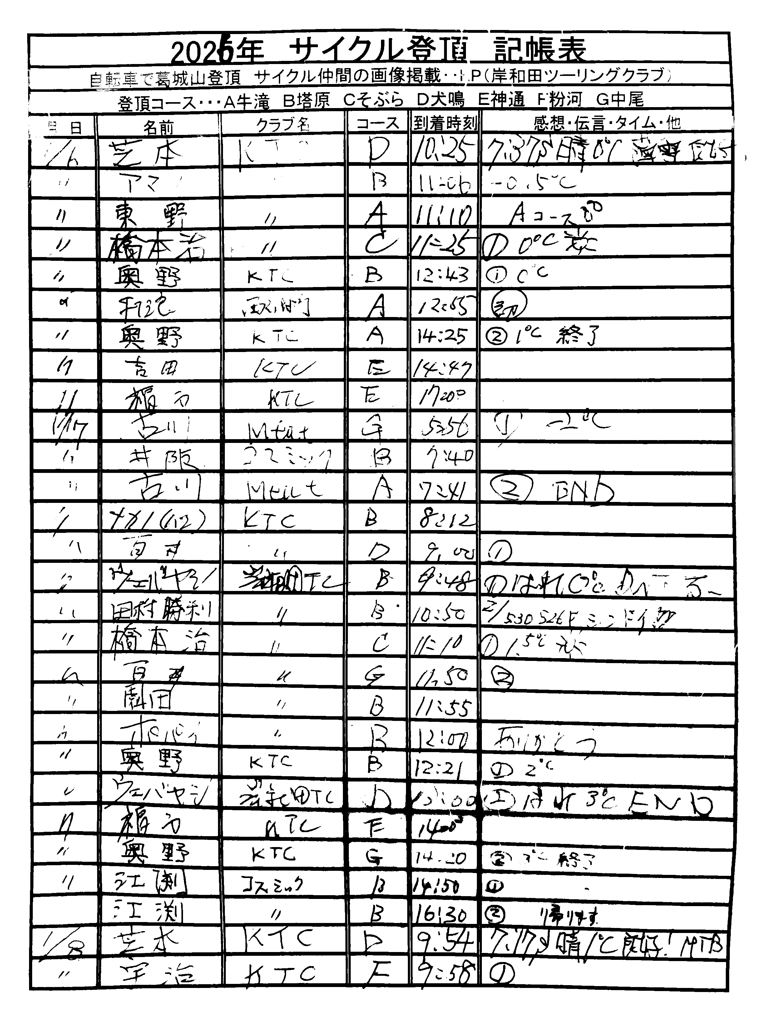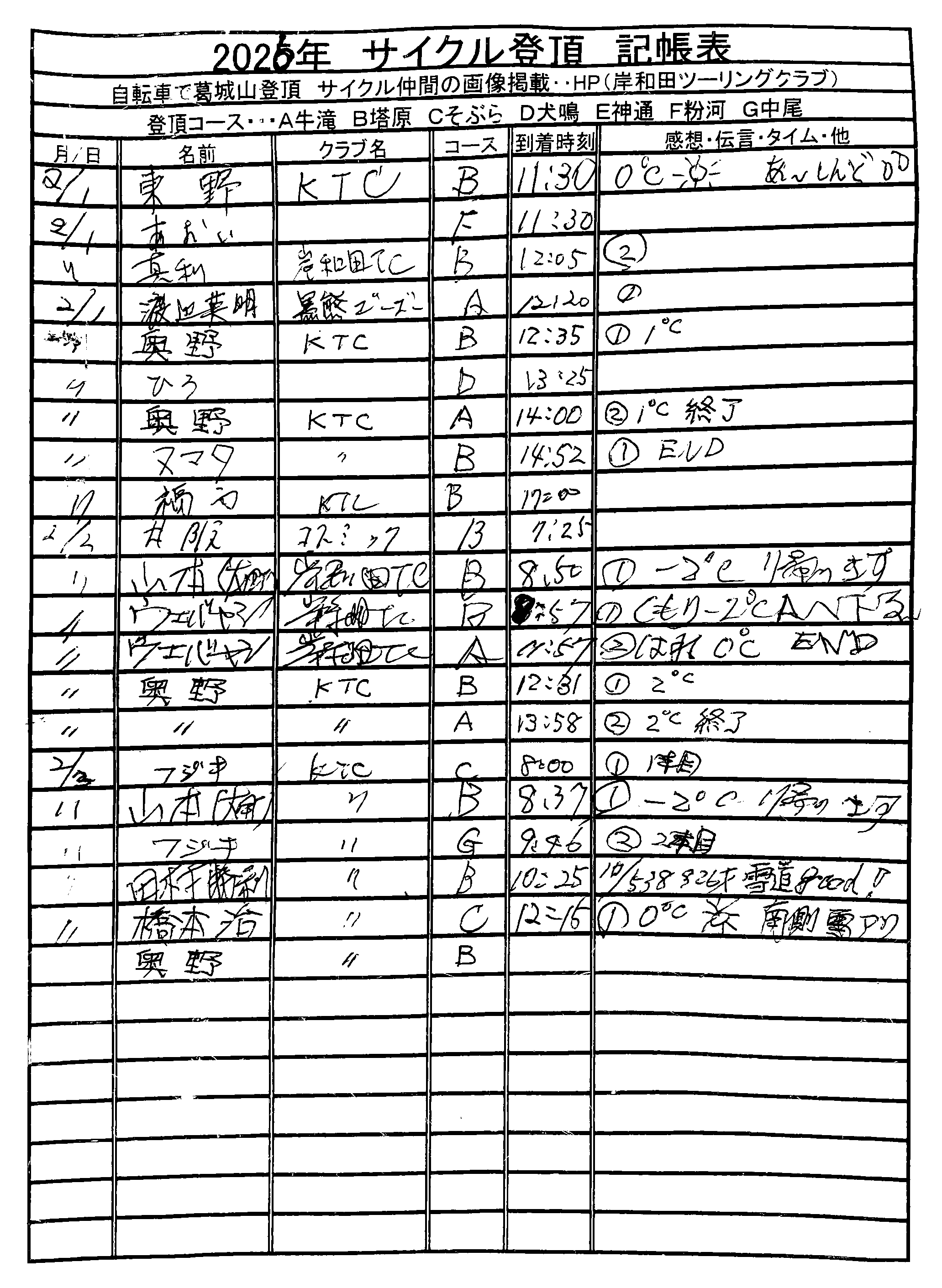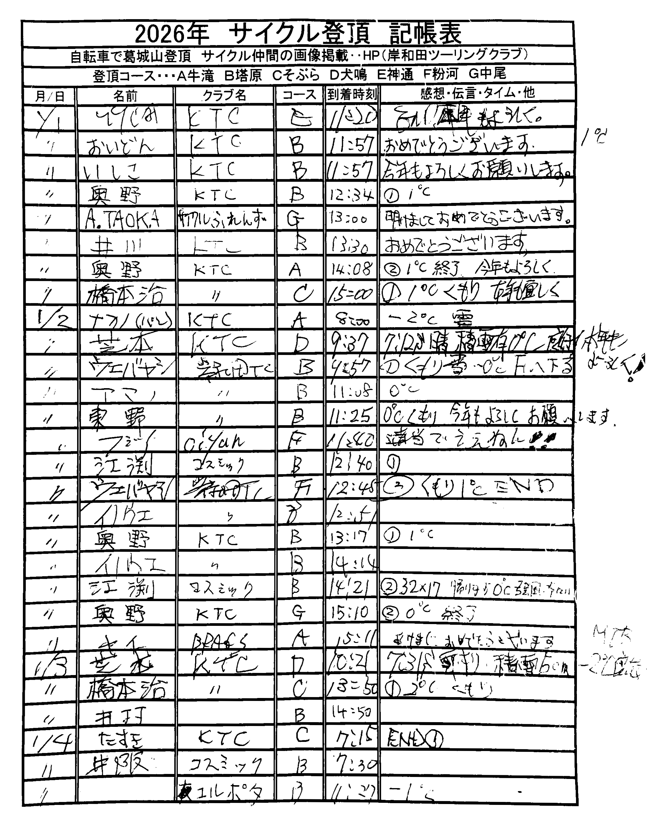 ■ 記帳表と回数表 ■ 岸和田ツーリングクラブの記帳表・回数表から引用させていただいてます。 2026年02月の記帳表 01/29〜02/01 01〜03 2026年01月の記帳表 12/31〜01/01 01〜04 04〜06 06〜08 08〜10 10〜13 13〜15 15〜17 17〜18 19〜21 21〜26 27〜29 29〜02/01 2025年12月の記帳表 11/30〜12/01 02〜03 03〜06 06〜07 07〜08 08〜10 10〜11 12〜13 13〜16 16〜18 18〜20 20〜20 20〜23 24〜28 28〜29 29〜31 31〜01/01 2025年11月の記帳表 10/30〜10/01 01〜02 02〜03 03〜04 05〜07 07〜08 08〜10 10〜11 11〜12 12〜14 14〜15 15〜16 16〜16 16〜17 17〜19 19〜21 19〜21 21〜22 22〜23 23〜24 24〜26 26〜28 28〜30 30〜30 30〜12/01 2025年10月の記帳表 09/30〜10/01 01〜02 02〜05 05〜06 06〜07 07〜08 08〜10 10〜11 11〜12 12〜13 13〜14 14〜15 15〜17 17〜18 18〜19 19〜21 21〜23 23〜25 25〜25 26〜27 27〜29 29〜30 30〜11/01 2025年09月の記帳表 08/31〜09/01 01〜02 02〜03 03〜06 06〜07 07〜07 07〜09 09〜10 10〜12 12〜13 13〜14 14〜15 15〜16 16〜18 18〜19 19〜20 20〜21 21〜22 22〜23 23〜24 24〜26 26〜27 27〜28 28〜28 28〜30 30〜10/01 2025年08月の記帳表 07/30〜08/01 01〜02 02〜03 03〜03 03〜03 03〜05 05〜06 06〜08 08〜08 09〜09 09〜12 12〜13 13〜14 14〜14 14〜15 15〜16 16〜17 17〜17 17〜18 18〜19 19〜20 20〜22 22〜23 23〜23 23〜24 24〜26 26〜27 27〜28 28〜29 29〜30 30〜31 31〜31 31〜09/01 2025年07月の記帳表 06/29〜07/01 01〜02 02〜03 03〜05 05〜05 05〜06 06〜06 06〜07 07〜09 09〜10 10〜12 12〜12 12〜13 13〜14 14〜16 16〜18 18〜19 19〜20 20〜20 20〜21 21〜21 22〜22 22〜23 24〜25 25〜26 26〜26 26〜27 27〜28 28〜29 29〜30 30〜08/01 2025年06月の記帳表 05/31〜06/01 01〜01 01〜02 02〜04 04〜05 05〜06 06〜07 07〜07 07〜08 08〜11 12〜13 13〜15 15〜16 16〜17 17〜18 18〜19 19〜20 20〜21 21〜22 22〜23 23〜25 26〜27 27〜28 28〜28 28〜29 28〜29 29〜29 29〜07/01 2025年05月の記帳表 04/29〜05/01 01〜01 01〜03 03〜03 03〜04 04〜04 04〜05 05〜05 05〜07 07〜08 08〜08 09〜10 10〜11 11〜11 11〜13 13〜14 14〜15 15〜16 16〜18 18〜18 18〜20 20〜21 21〜23 23〜23 23〜26 26〜27 27〜28 28〜30 30〜31 31〜06/01 2025年04月の記帳表 03/30〜04/01 01〜03 03〜04 04〜05 05〜06 06〜08 08〜09 09〜11 11〜12 12〜12 12〜14 14〜16 16〜17 17〜18 18〜19 19〜20 20〜20 20〜21 21〜23 24〜25 25〜26 26〜26 26〜26 26〜27 27〜27 27〜29 29〜29 29〜05/01 2025年03月の記帳表 02/28〜03/01 01〜06 06〜08 08〜09 09〜09 10〜12 12〜13 13〜14 14〜17 17〜21 21〜22 23〜23 23〜24 24〜25 25〜26 26〜29 29〜30 30〜30 30〜04/01 2025年02月の記帳表 01/30〜02/01 01〜04 04〜09 09〜13 13〜15 15〜15 15〜16 16〜18 19〜23 23〜28 28〜03/01 2025年01月の記帳表 12/31〜01/01 01〜02 02〜03 03〜04 04〜05 05〜05 07〜08 09〜13 13〜16 16〜18 18〜19 19〜21 21〜23 23〜25 25〜26 26〜26 26〜30 30〜02/01 2024年12月の記帳表 11/30〜12/01 01〜01 01〜02 02〜03 03〜04 05〜06 06〜07 07〜08 08〜09 09〜11 11〜12 12〜13 13〜15 15〜18 18〜20 20〜22 22〜23 23〜25 25〜27 27〜29 29〜31 31〜01/01 2024年11月の記帳表 01〜03 03〜04 04〜04 04〜05 05〜06 06〜08 08〜09 09〜10 10〜10 10〜12 12〜13 13〜14 14〜16 16〜17 17〜18 18〜19 19〜20 20〜21 22〜23 23〜24 24〜24 24〜25 26〜27 27〜30 30〜12/01 2024年10月の記帳表 09/29〜10/01 01〜02 02〜02 03〜05 05〜06 06〜06 06〜09 09〜10 10〜11 11〜12 12〜13 13〜13 13〜14 14〜15 15〜16 17〜17 17〜18 19〜20 20〜20 20〜22 22〜24 24〜25 25〜26 26〜27 27〜27 27〜29 29〜31 31〜31 2024年09月の記帳表 08/30〜09/01 01〜01 02〜03 03〜04 04〜05 05〜07 07〜07 07〜08 08〜09 09〜11 11〜12 12〜13 13〜14 14〜16 16〜16 16〜18 18〜20 20〜20 21〜21 21〜23 23〜23 23〜24 24〜25 25〜25 26〜27 27〜28 28〜28 28〜29 29〜29 29〜10/01 2024年08月の記帳表 07/31〜08/01 01〜02 02〜03 03〜03 03〜04 04〜04 04〜06 06〜07 07〜08 08〜10 10〜10 10〜11 11〜11 11〜12 12〜13 13〜14 14〜14 15〜15 15〜16 16〜17 17〜18 18〜18 18〜19 19〜21 21〜22 22〜23 23〜24 24〜25 25〜26 26〜27 28〜30 30〜09/01 2024年07月の記帳表 06/29〜07/03 03〜03 04〜05 05〜06 06〜06 06〜07 07〜07 07〜08 09〜09 09〜13 13〜14 14〜14 14〜15 15〜17 17〜18 18〜19 19〜20 20〜21 21〜21 21〜22 22〜24 24〜25 25〜26 26〜27 27〜28 28〜28 28〜29 29〜31 31〜08/01 2024年06月の記帳表 05/30〜06/01 01〜01 01〜02 02〜02 02〜03 03〜04 04〜05 05〜06 06〜07 07〜08 08〜08 08〜09 09〜11 11〜12 12〜12 12〜14 14〜15 15〜15 15〜16 16〜16 16〜17 17〜17 17〜19 19〜20 20〜22 22〜22 22〜25 25〜26 26〜29 29〜29 29〜29 29〜07/03 2024年05月の記帳表 04/29〜05/02 02〜02 02〜02 02〜03 03〜04 04〜04 04〜04 04〜05 05〜05 05〜07 07〜09 09〜10 10〜10 10〜11 11〜11 11〜11 11〜11 11〜12 12〜14 14〜15 15〜15 15〜17 17〜18 18〜18 18〜18 18〜20 20〜22 22〜22 22〜24 24〜25 25〜25 25〜26 26〜26 26〜26 26〜29 29〜30 30〜06/01 2024年04月の記帳表 03/31〜04/02 02〜05 05〜06 06〜06 06〜07 07〜07 07〜10 10〜11 11〜12 12〜13 13〜13 13〜14 14〜14 14〜16 16〜17 17〜17 17〜18 18〜19 19〜20 20〜20 21〜24 24〜25 25〜27 27〜28 28〜28 28〜29 29〜29 29〜05/02 2024年03月の記帳表 02/28〜03/01 01〜03 03〜03 03〜04 04〜07 07〜09 09〜10 10〜13 13〜14 14〜16 16〜16 16〜17 17〜18 19〜21 21〜22 22〜27 27〜28 28〜30 30〜30 31〜31 31〜 2024年02月の記帳表 01/31〜02/03 03〜03 03〜06 06〜07 08〜09 09〜10 10〜11 11〜11 11〜12 13〜14 14〜14 14〜16 16〜17 17〜18 18〜18 18〜20 20〜24 24〜26 26〜28 28〜03/01 2024年01月の記帳表 01〜02 02〜03 03〜05 05〜06 06〜07 07〜07 08〜09 09〜12 12〜13 14〜14 14〜17 17〜20 21〜23 23〜27 28〜29 29〜31 31〜02/03 2023
