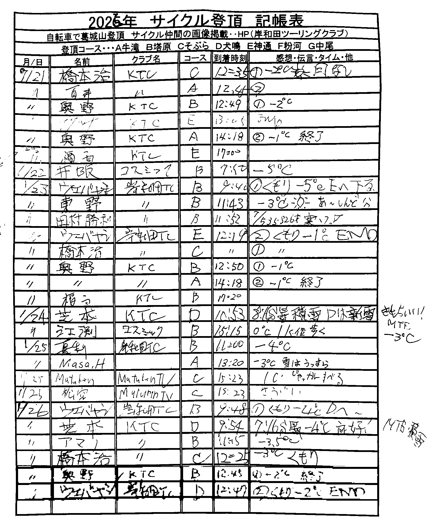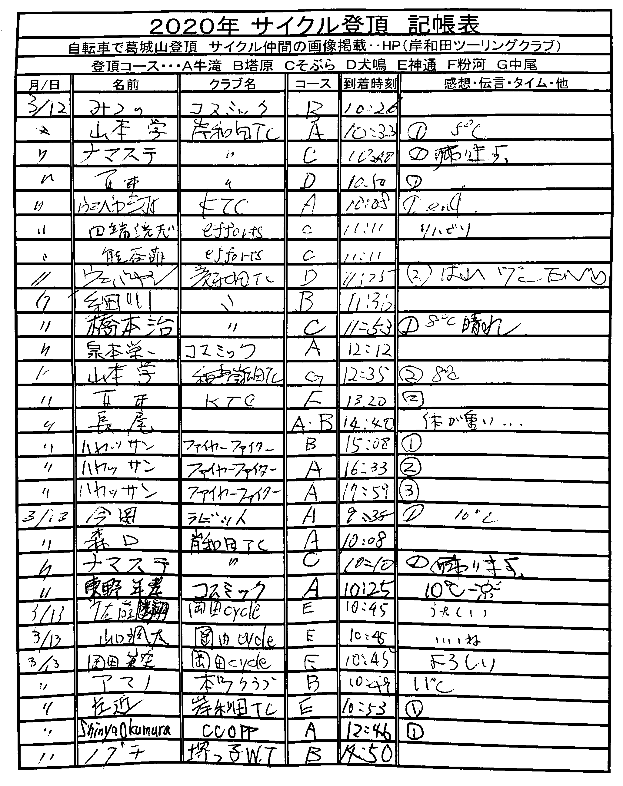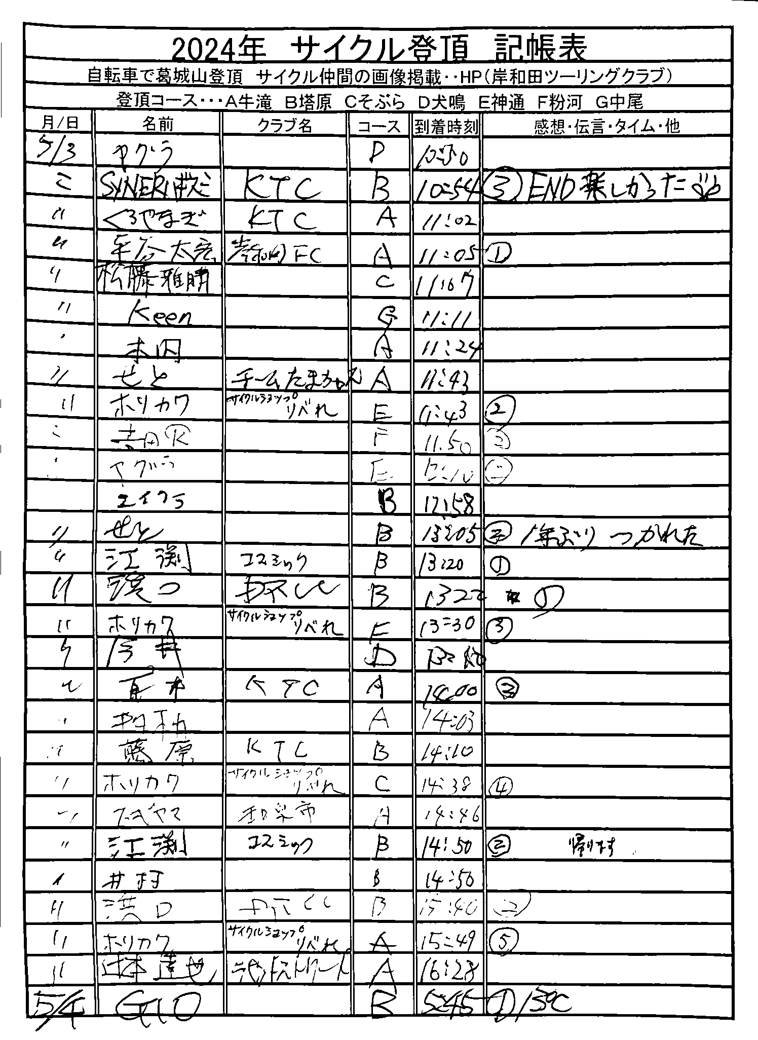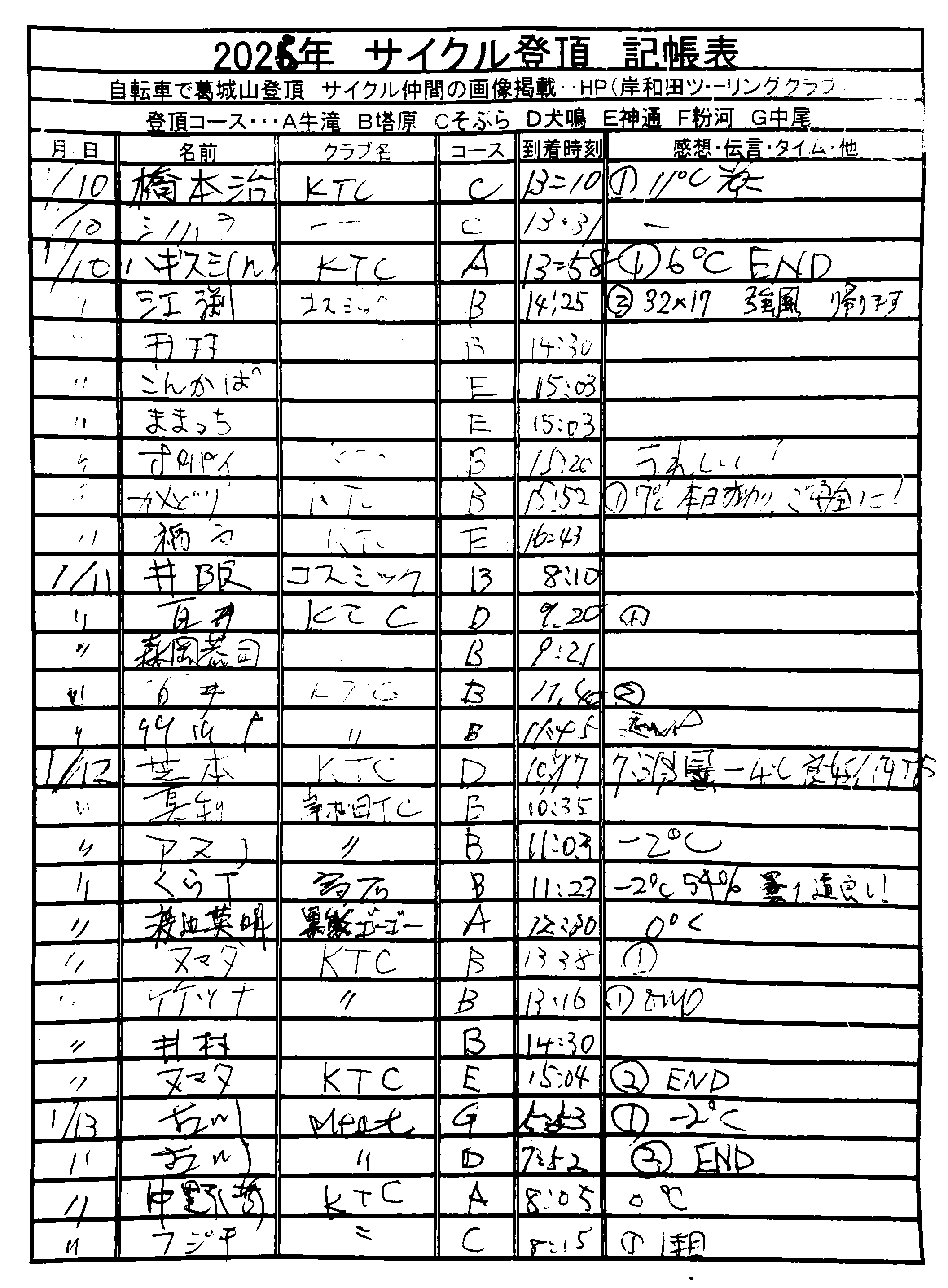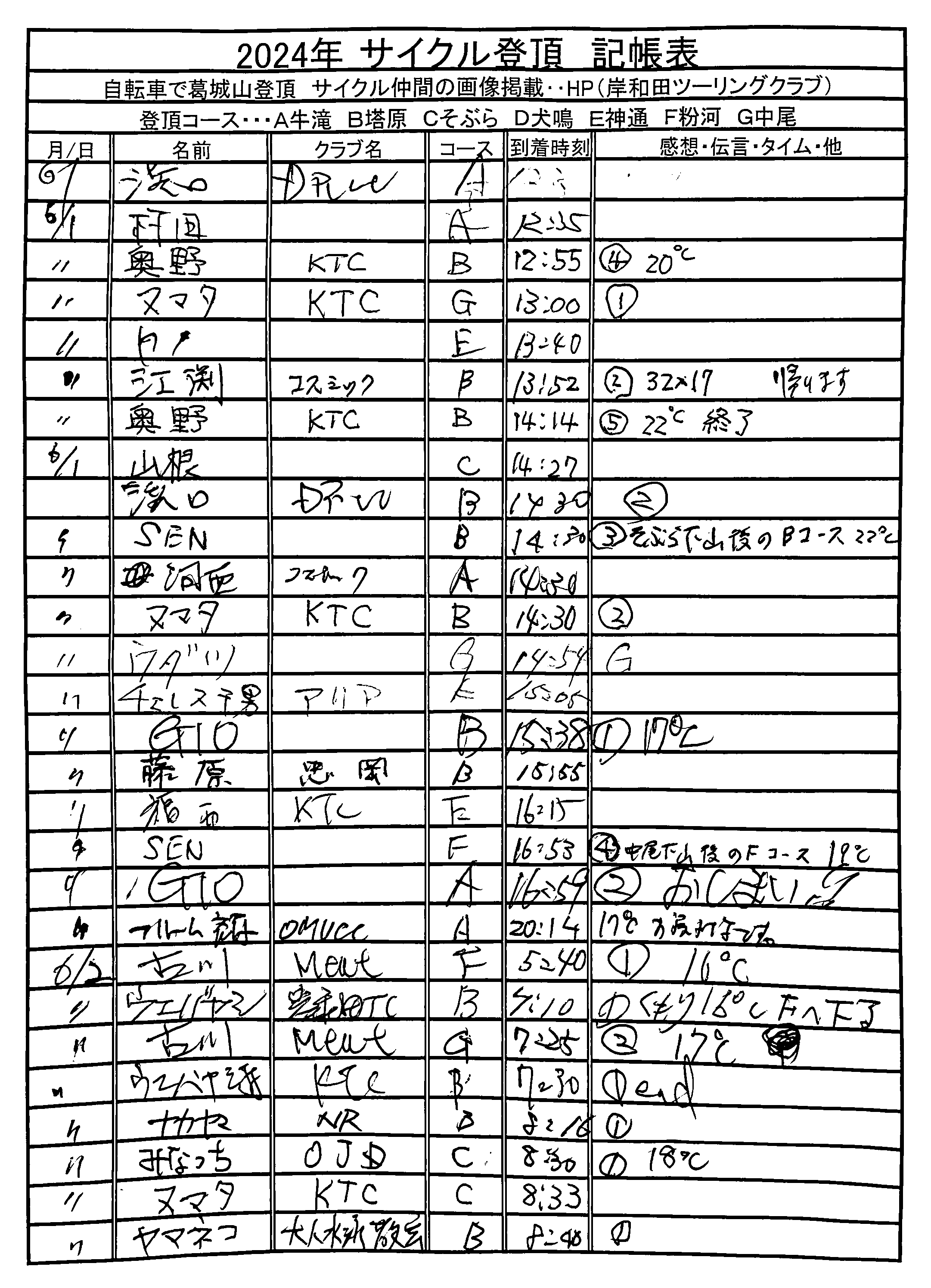 ■ 記帳表と回数表 ■ 岸和田ツーリングクラブの記帳表・回数表から引用させていただいてます。 2026年02月の記帳表 01/29〜02/01 01〜03 2026年01月の記帳表 12/31〜01/01 01〜04 04〜06 06〜08 08〜10 10〜13 13〜15 15〜17 17〜18 19〜21 21〜26 27〜29 29〜02/01 2025年12月の記帳表 11/30〜12/01 02〜03 03〜06 06〜07 07〜08 08〜10 10〜11 12〜13 13〜16 16〜18 18〜20 20〜20 20〜23 24〜28 28〜29 29〜31 31〜01/01 2025年11月の記帳表 10/30〜10/01 01〜02 02〜03 03〜04 05〜07 07〜08 08〜10 10〜11 11〜12 12〜14 14〜15 15〜16 16〜16 16〜17 17〜19 19〜21 19〜21 21〜22 22〜23 23〜24 24〜26 26〜28 28〜30 30〜30 30〜12/01 2025年10月の記帳表 09/30〜10/01 01〜02 02〜05 05〜06 06〜07 07〜08 08〜10 10〜11 11〜12 12〜13 13〜14 14〜15 15〜17 17〜18 18〜19 19〜21 21〜23 23〜25 25〜25 26〜27 27〜29 29〜30 30〜11/01 2025年09月の記帳表 08/31〜09/01 01〜02 02〜03 03〜06 06〜07 07〜07 07〜09 09〜10 10〜12 12〜13 13〜14 14〜15 15〜16 16〜18 18〜19 19〜20 20〜21 21〜22 22〜23 23〜24 24〜26 26〜27 27〜28 28〜28 28〜30 30〜10/01 2025年08月の記帳表 07/30〜08/01 01〜02 02〜03 03〜03 03〜03 03〜05 05〜06 06〜08 08〜08 09〜09 09〜12 12〜13 13〜14 14〜14 14〜15 15〜16 16〜17 17〜17 17〜18 18〜19 19〜20 20〜22 22〜23 23〜23 23〜24 24〜26 26〜27 27〜28 28〜29 29〜30 30〜31 31〜31 31〜09/01 2025年07月の記帳表 06/29〜07/01 01〜02 02〜03 03〜05 05〜05 05〜06 06〜06 06〜07 07〜09 09〜10 10〜12 12〜12 12〜13 13〜14 14〜16 16〜18 18〜19 19〜20 20〜20 20〜21 21〜21 22〜22 22〜23 24〜25 25〜26 26〜26 26〜27 27〜28 28〜29 29〜30 30〜08/01 2025年06月の記帳表 05/31〜06/01 01〜01 01〜02 02〜04 04〜05 05〜06 06〜07 07〜07 07〜08 08〜11 12〜13 13〜15 15〜16 16〜17 17〜18 18〜19 19〜20 20〜21 21〜22 22〜23 23〜25 26〜27 27〜28 28〜28 28〜29 28〜29 29〜29 29〜07/01 2025年05月の記帳表 04/29〜05/01 01〜01 01〜03 03〜03 03〜04 04〜04 04〜05 05〜05 05〜07 07〜08 08〜08 09〜10 10〜11 11〜11 11〜13 13〜14 14〜15 15〜16 16〜18 18〜18 18〜20 20〜21 21〜23 23〜23 23〜26 26〜27 27〜28 28〜30 30〜31 31〜06/01 2025年04月の記帳表 03/30〜04/01 01〜03 03〜04 04〜05 05〜06 06〜08 08〜09 09〜11 11〜12 12〜12 12〜14 14〜16 16〜17 17〜18 18〜19 19〜20 20〜20 20〜21 21〜23 24〜25 25〜26 26〜26 26〜26 26〜27 27〜27 27〜29 29〜29 29〜05/01 2025年03月の記帳表 02/28〜03/01 01〜06 06〜08 08〜09 09〜09 10〜12 12〜13 13〜14 14〜17 17〜21 21〜22 23〜23 23〜24 24〜25 25〜26 26〜29 29〜30 30〜30 30〜04/01 2025年02月の記帳表 01/30〜02/01 01〜04 04〜09 09〜13 13〜15 15〜15 15〜16 16〜18 19〜23 23〜28 28〜03/01 2025年01月の記帳表 12/31〜01/01 01〜02 02〜03 03〜04 04〜05 05〜05 07〜08 09〜13 13〜16 16〜18 18〜19 19〜21 21〜23 23〜25 25〜26 26〜26 26〜30 30〜02/01 2024年12月の記帳表 11/30〜12/01 01〜01 01〜02 02〜03 03〜04 05〜06 06〜07 07〜08 08〜09 09〜11 11〜12 12〜13 13〜15 15〜18 18〜20 20〜22 22〜23 23〜25 25〜27 27〜29 29〜31 31〜01/01 2024年11月の記帳表 01〜03 03〜04 04〜04 04〜05 05〜06 06〜08 08〜09 09〜10 10〜10 10〜12 12〜13 13〜14 14〜16 16〜17 17〜18 18〜19 19〜20 20〜21 22〜23 23〜24 24〜24 24〜25 26〜27 27〜30 30〜12/01 2024年10月の記帳表 09/29〜10/01 01〜02 02〜02 03〜05 05〜06 06〜06 06〜09 09〜10 10〜11 11〜12 12〜13 13〜13 13〜14 14〜15 15〜16 17〜17 17〜18 19〜20 20〜20 20〜22 22〜24 24〜25 25〜26 26〜27 27〜27 27〜29 29〜31 31〜31 2024年09月の記帳表 08/30〜09/01 01〜01 02〜03 03〜04 04〜05 05〜07 07〜07 07〜08 08〜09 09〜11 11〜12 12〜13 13〜14 14〜16 16〜16 16〜18 18〜20 20〜20 21〜21 21〜23 23〜23 23〜24 24〜25 25〜25 26〜27 27〜28 28〜28 28〜29 29〜29 29〜10/01 2024年08月の記帳表 07/31〜08/01 01〜02 02〜03 03〜03 03〜04 04〜04 04〜06 06〜07 07〜08 08〜10 10〜10 10〜11 11〜11 11〜12 12〜13 13〜14 14〜14 15〜15 15〜16 16〜17 17〜18 18〜18 18〜19 19〜21 21〜22 22〜23 23〜24 24〜25 25〜26 26〜27 28〜30 30〜09/01 2024年07月の記帳表 06/29〜07/03 03〜03 04〜05 05〜06 06〜06 06〜07 07〜07 07〜08 09〜09 09〜13 13〜14 14〜14 14〜15 15〜17 17〜18 18〜19 19〜20 20〜21 21〜21 21〜22 22〜24 24〜25 25〜26 26〜27 27〜28 28〜28 28〜29 29〜31 31〜08/01 2024年06月の記帳表 05/30〜06/01 01〜01 01〜02 02〜02 02〜03 03〜04 04〜05 05〜06 06〜07 07〜08 08〜08 08〜09 09〜11 11〜12 12〜12 12〜14 14〜15 15〜15 15〜16 16〜16 16〜17 17〜17 17〜19 19〜20 20〜22 22〜22 22〜25 25〜26 26〜29 29〜29 29〜29 29〜07/03 2024年05月の記帳表 04/29〜05/02 02〜02 02〜02 02〜03 03〜04 04〜04 04〜04 04〜05 05〜05 05〜07 07〜09 09〜10 10〜10 10〜11 11〜11 11〜11 11〜11 11〜12 12〜14 14〜15 15〜15 15〜17 17〜18 18〜18 18〜18 18〜20 20〜22 22〜22 22〜24 24〜25 25〜25 25〜26 26〜26 26〜26 26〜29 29〜30 30〜06/01 2024年04月の記帳表 03/31〜04/02 02〜05 05〜06 06〜06 06〜07 07〜07 07〜10 10〜11 11〜12 12〜13 13〜13 13〜14 14〜14 14〜16 16〜17 17〜17 17〜18 18〜19 19〜20 20〜20 21〜24 24〜25 25〜27 27〜28 28〜28 28〜29 29〜29 29〜05/02 2024年03月の記帳表 02/28〜03/01 01〜03 03〜03 03〜04 04〜07 07〜09 09〜10 10〜13 13〜14 14〜16 16〜16 16〜17 17〜18 19〜21 21〜22 22〜27 27〜28 28〜30 30〜30 31〜31 31〜 2024年02月の記帳表 01/31〜02/03 03〜03 03〜06 06〜07 08〜09 09〜10 10〜11 11〜11 11〜12 13〜14 14〜14 14〜16 16〜17 17〜18 18〜18 18〜20 20〜24 24〜26 26〜28 28〜03/01 2024年01月の記帳表 01〜02 02〜03 03〜05 05〜06 06〜07 07〜07 08〜09 09〜12 12〜13 14〜14 14〜17 17〜20 21〜23 23〜27 28〜29 29〜31 31〜02/03 2023
