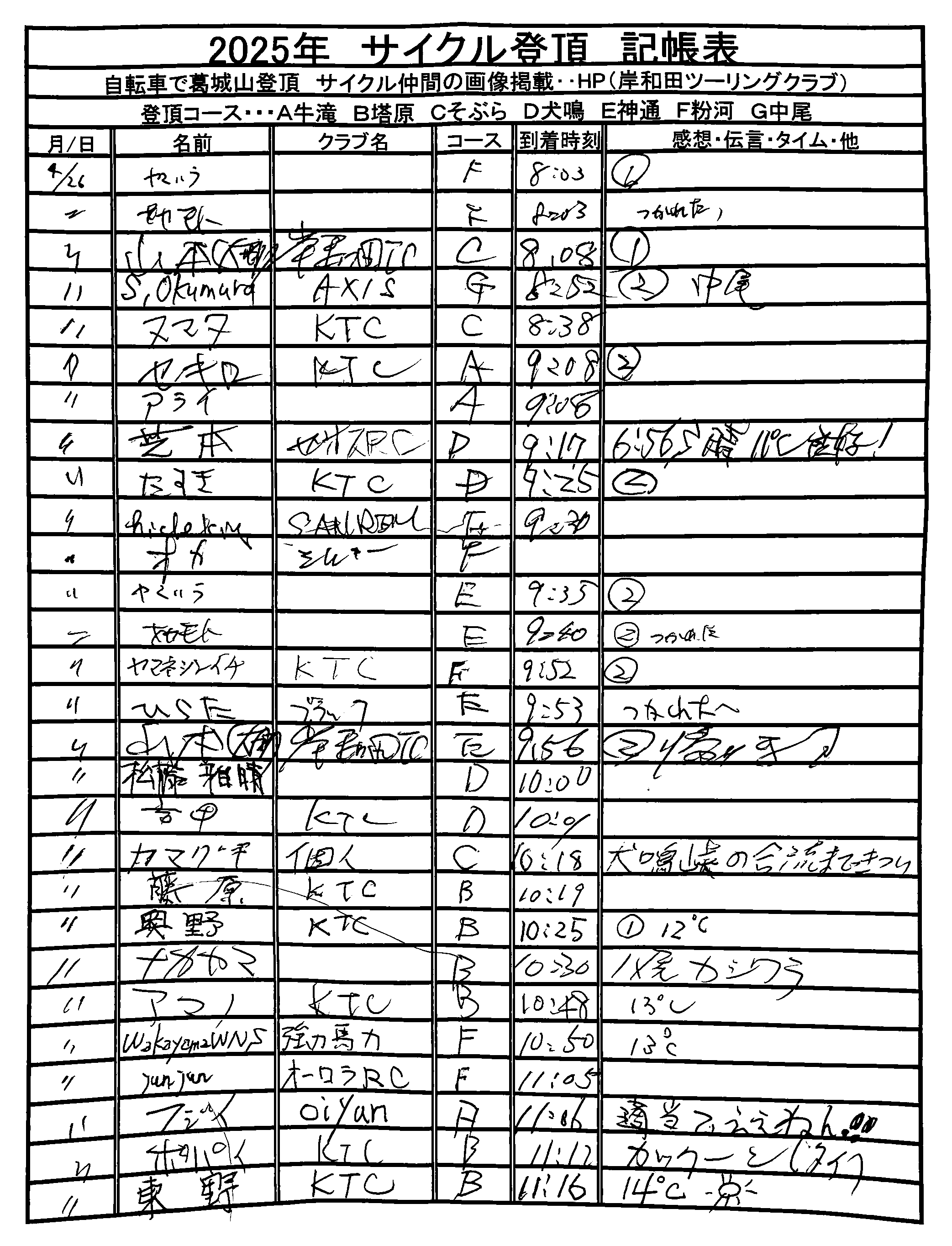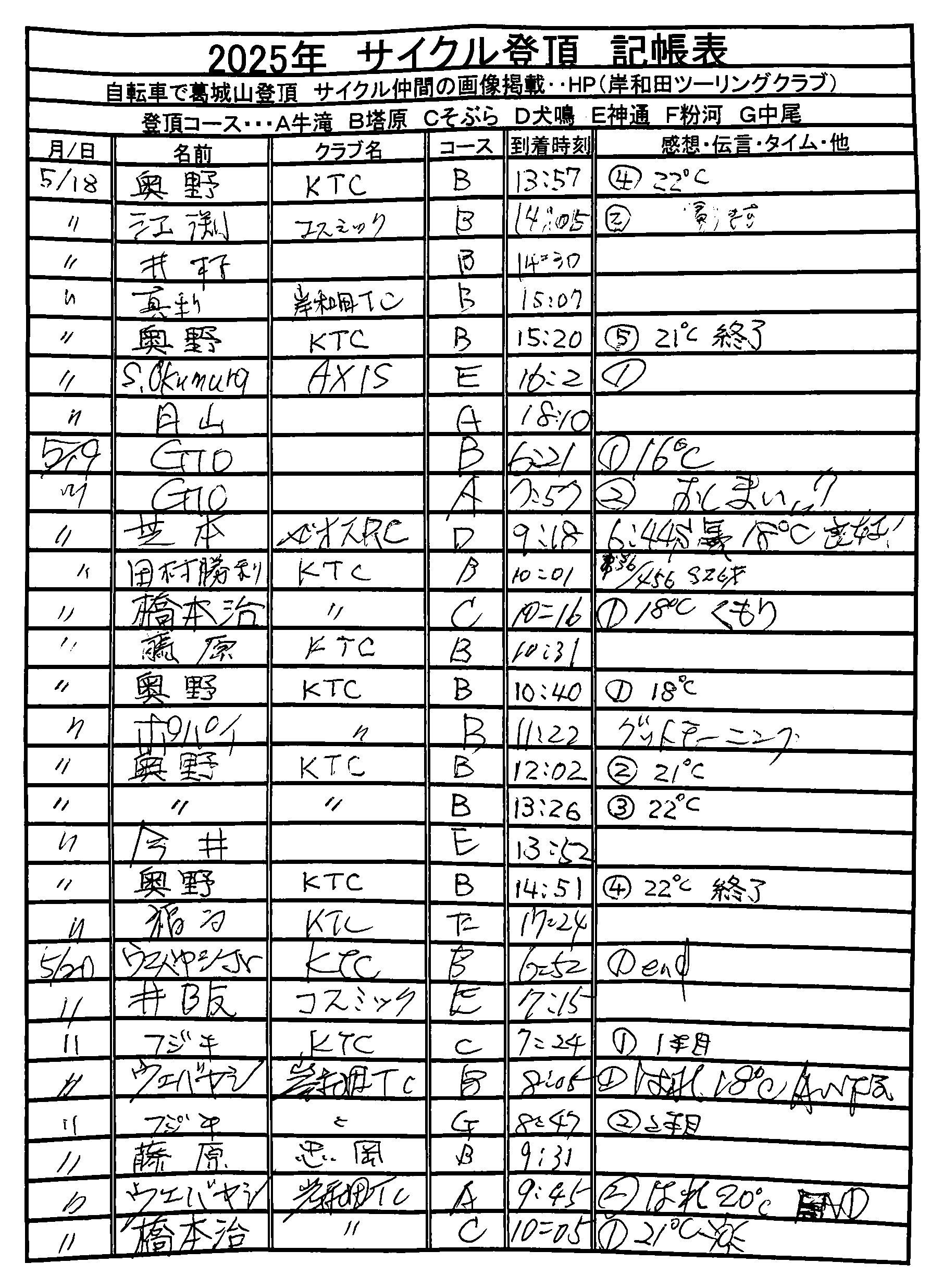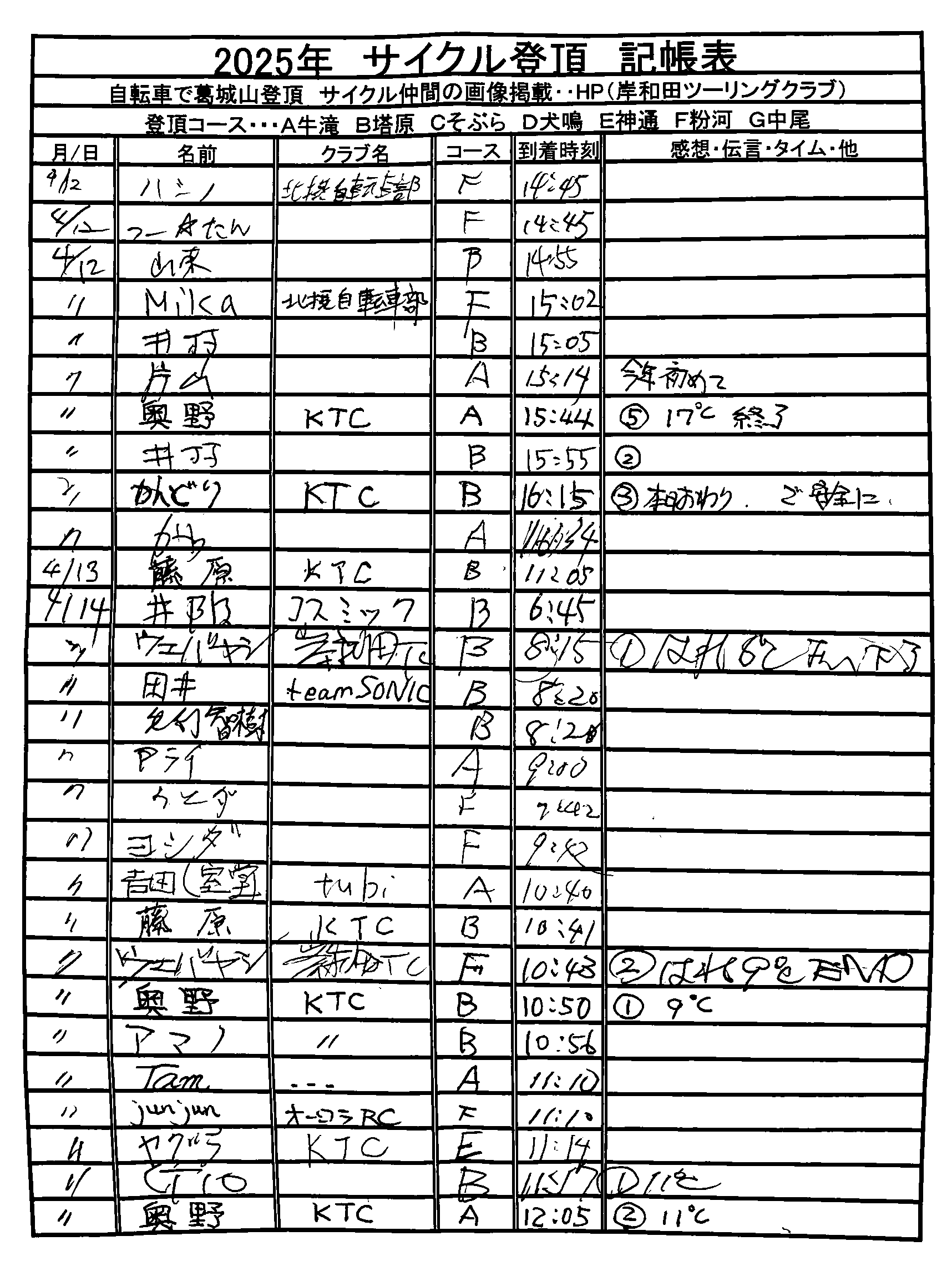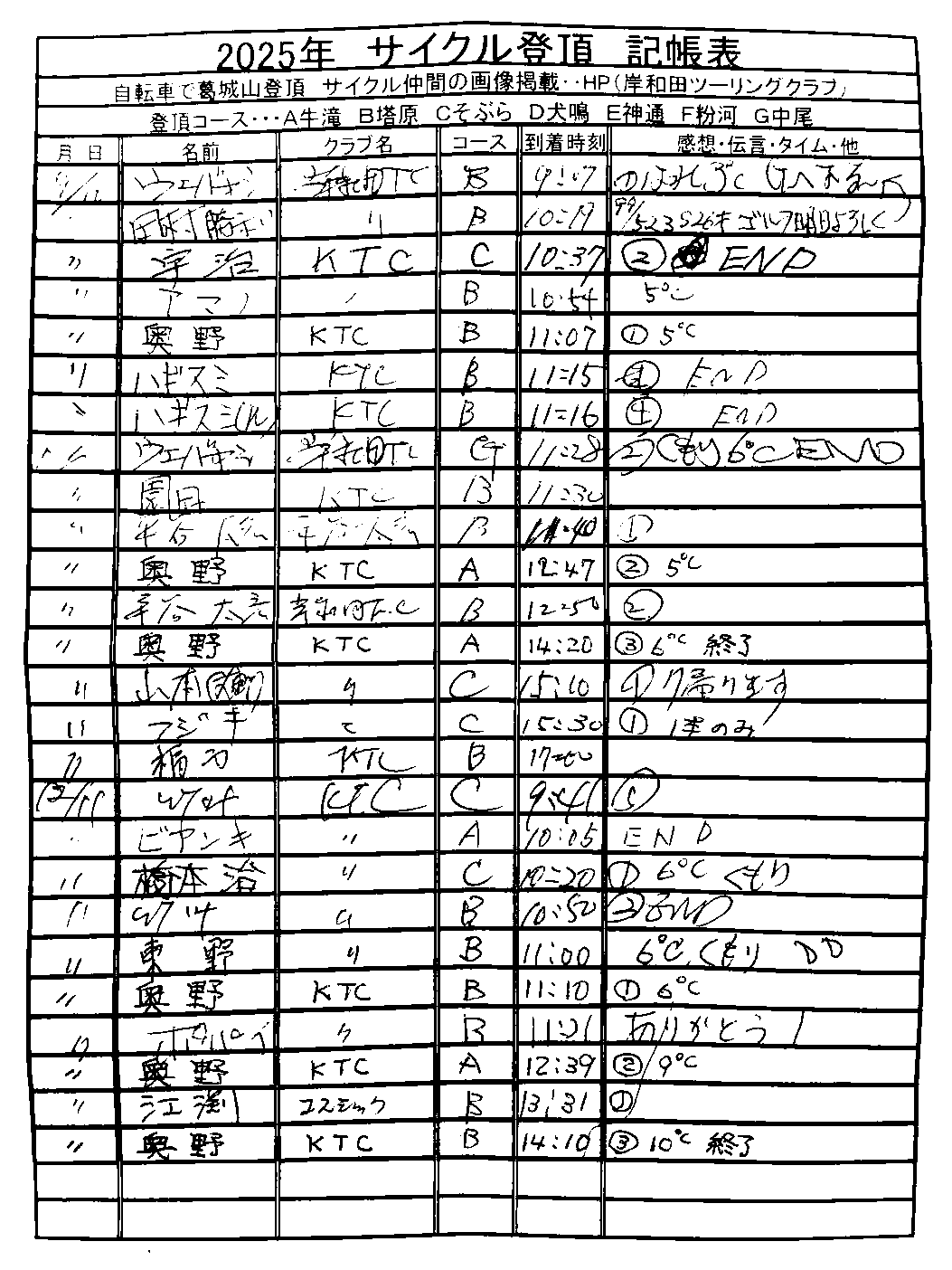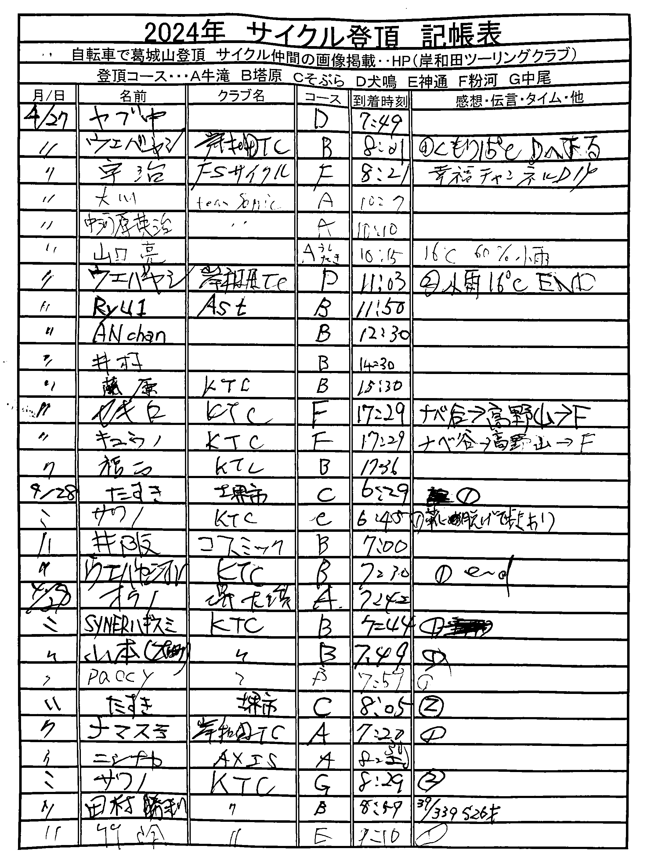 ■ 記帳表と回数表 ■ 岸和田ツーリングクラブの記帳表・回数表から引用させていただいてます。 2026年02月の記帳表 01/29〜02/01 01〜03 2026年01月の記帳表 12/31〜01/01 01〜04 04〜06 06〜08 08〜10 10〜13 13〜15 15〜17 17〜18 19〜21 21〜26 27〜29 29〜02/01 2025年12月の記帳表 11/30〜12/01 02〜03 03〜06 06〜07 07〜08 08〜10 10〜11 12〜13 13〜16 16〜18 18〜20 20〜20 20〜23 24〜28 28〜29 29〜31 31〜01/01 2025年11月の記帳表 10/30〜10/01 01〜02 02〜03 03〜04 05〜07 07〜08 08〜10 10〜11 11〜12 12〜14 14〜15 15〜16 16〜16 16〜17 17〜19 19〜21 19〜21 21〜22 22〜23 23〜24 24〜26 26〜28 28〜30 30〜30 30〜12/01 2025年10月の記帳表 09/30〜10/01 01〜02 02〜05 05〜06 06〜07 07〜08 08〜10 10〜11 11〜12 12〜13 13〜14 14〜15 15〜17 17〜18 18〜19 19〜21 21〜23 23〜25 25〜25 26〜27 27〜29 29〜30 30〜11/01 2025年09月の記帳表 08/31〜09/01 01〜02 02〜03 03〜06 06〜07 07〜07 07〜09 09〜10 10〜12 12〜13 13〜14 14〜15 15〜16 16〜18 18〜19 19〜20 20〜21 21〜22 22〜23 23〜24 24〜26 26〜27 27〜28 28〜28 28〜30 30〜10/01 2025年08月の記帳表 07/30〜08/01 01〜02 02〜03 03〜03 03〜03 03〜05 05〜06 06〜08 08〜08 09〜09 09〜12 12〜13 13〜14 14〜14 14〜15 15〜16 16〜17 17〜17 17〜18 18〜19 19〜20 20〜22 22〜23 23〜23 23〜24 24〜26 26〜27 27〜28 28〜29 29〜30 30〜31 31〜31 31〜09/01 2025年07月の記帳表 06/29〜07/01 01〜02 02〜03 03〜05 05〜05 05〜06 06〜06 06〜07 07〜09 09〜10 10〜12 12〜12 12〜13 13〜14 14〜16 16〜18 18〜19 19〜20 20〜20 20〜21 21〜21 22〜22 22〜23 24〜25 25〜26 26〜26 26〜27 27〜28 28〜29 29〜30 30〜08/01 2025年06月の記帳表 05/31〜06/01 01〜01 01〜02 02〜04 04〜05 05〜06 06〜07 07〜07 07〜08 08〜11 12〜13 13〜15 15〜16 16〜17 17〜18 18〜19 19〜20 20〜21 21〜22 22〜23 23〜25 26〜27 27〜28 28〜28 28〜29 28〜29 29〜29 29〜07/01 2025年05月の記帳表 04/29〜05/01 01〜01 01〜03 03〜03 03〜04 04〜04 04〜05 05〜05 05〜07 07〜08 08〜08 09〜10 10〜11 11〜11 11〜13 13〜14 14〜15 15〜16 16〜18 18〜18 18〜20 20〜21 21〜23 23〜23 23〜26 26〜27 27〜28 28〜30 30〜31 31〜06/01 2025年04月の記帳表 03/30〜04/01 01〜03 03〜04 04〜05 05〜06 06〜08 08〜09 09〜11 11〜12 12〜12 12〜14 14〜16 16〜17 17〜18 18〜19 19〜20 20〜20 20〜21 21〜23 24〜25 25〜26 26〜26 26〜26 26〜27 27〜27 27〜29 29〜29 29〜05/01 2025年03月の記帳表 02/28〜03/01 01〜06 06〜08 08〜09 09〜09 10〜12 12〜13 13〜14 14〜17 17〜21 21〜22 23〜23 23〜24 24〜25 25〜26 26〜29 29〜30 30〜30 30〜04/01 2025年02月の記帳表 01/30〜02/01 01〜04 04〜09 09〜13 13〜15 15〜15 15〜16 16〜18 19〜23 23〜28 28〜03/01 2025年01月の記帳表 12/31〜01/01 01〜02 02〜03 03〜04 04〜05 05〜05 07〜08 09〜13 13〜16 16〜18 18〜19 19〜21 21〜23 23〜25 25〜26 26〜26 26〜30 30〜02/01 2024年12月の記帳表 11/30〜12/01 01〜01 01〜02 02〜03 03〜04 05〜06 06〜07 07〜08 08〜09 09〜11 11〜12 12〜13 13〜15 15〜18 18〜20 20〜22 22〜23 23〜25 25〜27 27〜29 29〜31 31〜01/01 2024年11月の記帳表 01〜03 03〜04 04〜04 04〜05 05〜06 06〜08 08〜09 09〜10 10〜10 10〜12 12〜13 13〜14 14〜16 16〜17 17〜18 18〜19 19〜20 20〜21 22〜23 23〜24 24〜24 24〜25 26〜27 27〜30 30〜12/01 2024年10月の記帳表 09/29〜10/01 01〜02 02〜02 03〜05 05〜06 06〜06 06〜09 09〜10 10〜11 11〜12 12〜13 13〜13 13〜14 14〜15 15〜16 17〜17 17〜18 19〜20 20〜20 20〜22 22〜24 24〜25 25〜26 26〜27 27〜27 27〜29 29〜31 31〜31 2024年09月の記帳表 08/30〜09/01 01〜01 02〜03 03〜04 04〜05 05〜07 07〜07 07〜08 08〜09 09〜11 11〜12 12〜13 13〜14 14〜16 16〜16 16〜18 18〜20 20〜20 21〜21 21〜23 23〜23 23〜24 24〜25 25〜25 26〜27 27〜28 28〜28 28〜29 29〜29 29〜10/01 2024年08月の記帳表 07/31〜08/01 01〜02 02〜03 03〜03 03〜04 04〜04 04〜06 06〜07 07〜08 08〜10 10〜10 10〜11 11〜11 11〜12 12〜13 13〜14 14〜14 15〜15 15〜16 16〜17 17〜18 18〜18 18〜19 19〜21 21〜22 22〜23 23〜24 24〜25 25〜26 26〜27 28〜30 30〜09/01 2024年07月の記帳表 06/29〜07/03 03〜03 04〜05 05〜06 06〜06 06〜07 07〜07 07〜08 09〜09 09〜13 13〜14 14〜14 14〜15 15〜17 17〜18 18〜19 19〜20 20〜21 21〜21 21〜22 22〜24 24〜25 25〜26 26〜27 27〜28 28〜28 28〜29 29〜31 31〜08/01 2024年06月の記帳表 05/30〜06/01 01〜01 01〜02 02〜02 02〜03 03〜04 04〜05 05〜06 06〜07 07〜08 08〜08 08〜09 09〜11 11〜12 12〜12 12〜14 14〜15 15〜15 15〜16 16〜16 16〜17 17〜17 17〜19 19〜20 20〜22 22〜22 22〜25 25〜26 26〜29 29〜29 29〜29 29〜07/03 2024年05月の記帳表 04/29〜05/02 02〜02 02〜02 02〜03 03〜04 04〜04 04〜04 04〜05 05〜05 05〜07 07〜09 09〜10 10〜10 10〜11 11〜11 11〜11 11〜11 11〜12 12〜14 14〜15 15〜15 15〜17 17〜18 18〜18 18〜18 18〜20 20〜22 22〜22 22〜24 24〜25 25〜25 25〜26 26〜26 26〜26 26〜29 29〜30 30〜06/01 2024年04月の記帳表 03/31〜04/02 02〜05 05〜06 06〜06 06〜07 07〜07 07〜10 10〜11 11〜12 12〜13 13〜13 13〜14 14〜14 14〜16 16〜17 17〜17 17〜18 18〜19 19〜20 20〜20 21〜24 24〜25 25〜27 27〜28 28〜28 28〜29 29〜29 29〜05/02 2024年03月の記帳表 02/28〜03/01 01〜03 03〜03 03〜04 04〜07 07〜09 09〜10 10〜13 13〜14 14〜16 16〜16 16〜17 17〜18 19〜21 21〜22 22〜27 27〜28 28〜30 30〜30 31〜31 31〜 2024年02月の記帳表 01/31〜02/03 03〜03 03〜06 06〜07 08〜09 09〜10 10〜11 11〜11 11〜12 13〜14 14〜14 14〜16 16〜17 17〜18 18〜18 18〜20 20〜24 24〜26 26〜28 28〜03/01 2024年01月の記帳表 01〜02 02〜03 03〜05 05〜06 06〜07 07〜07 08〜09 09〜12 12〜13 14〜14 14〜17 17〜20 21〜23 23〜27 28〜29 29〜31 31〜02/03 2023