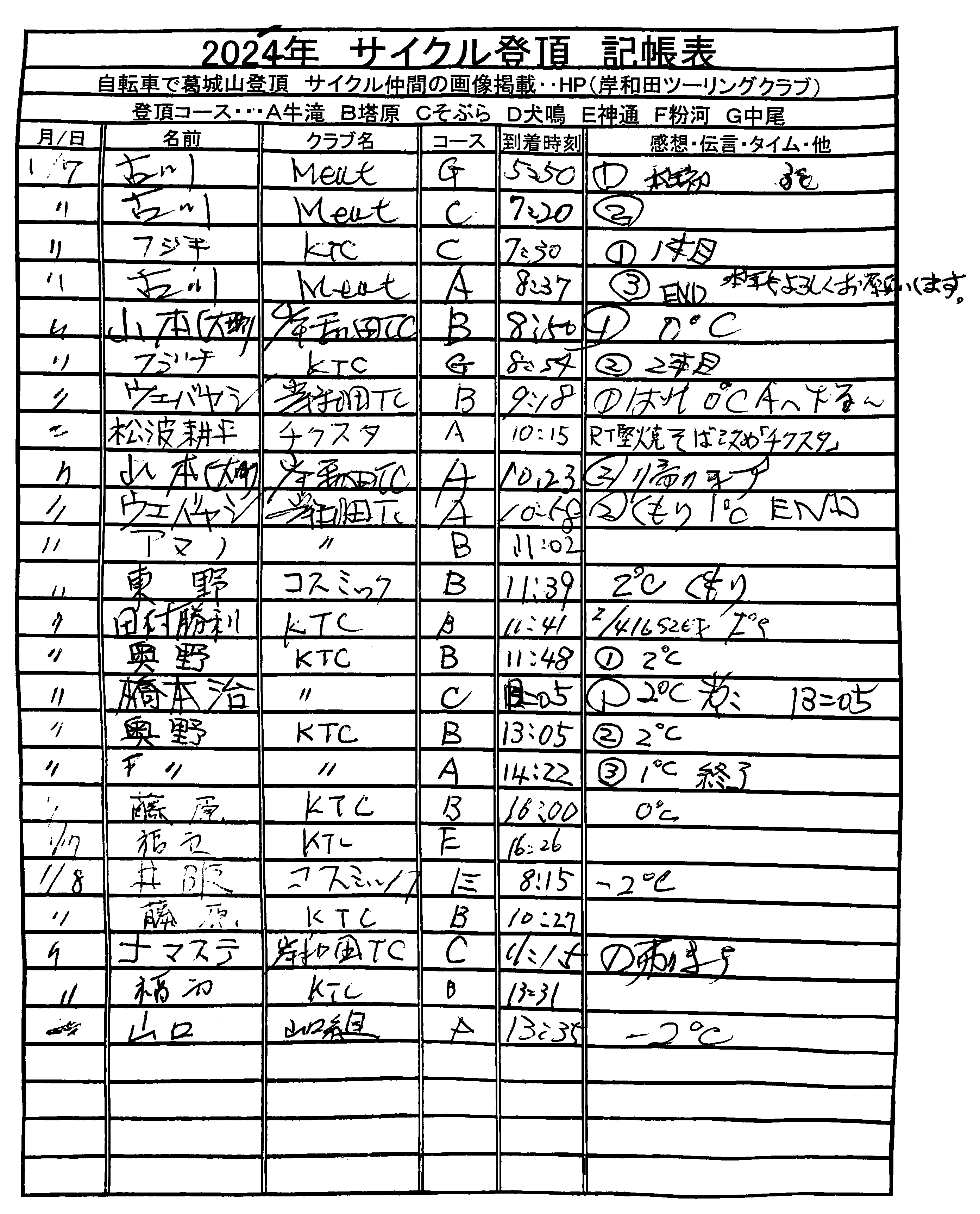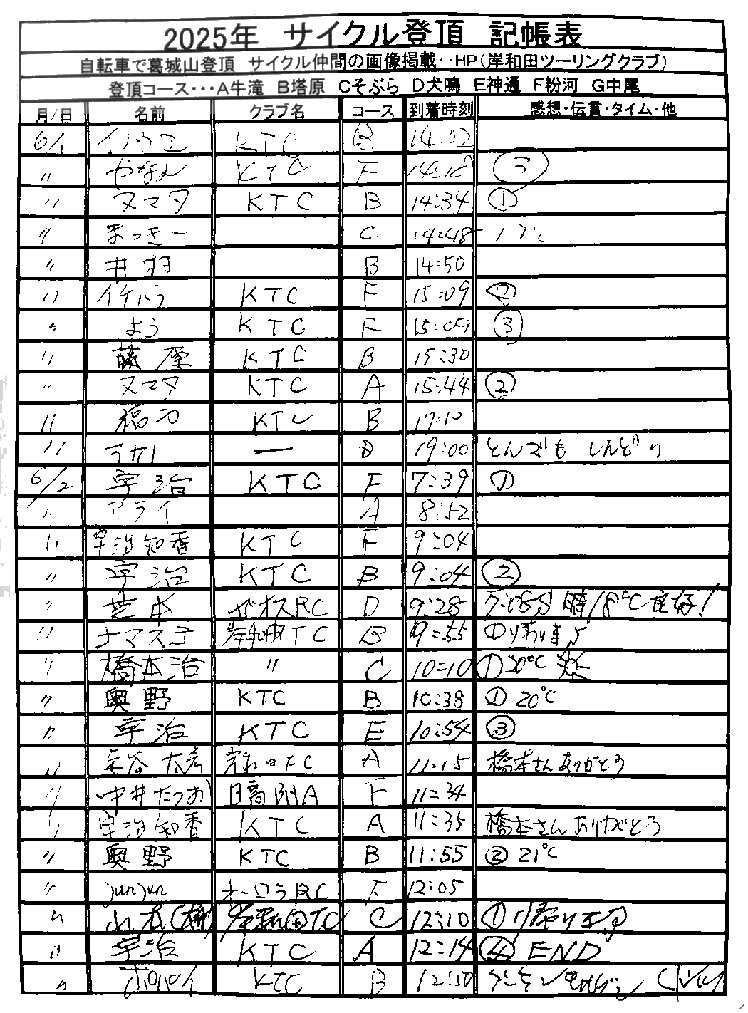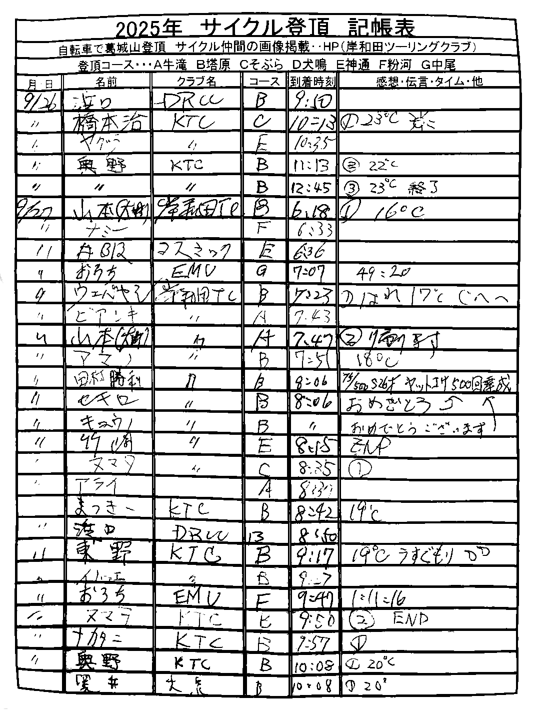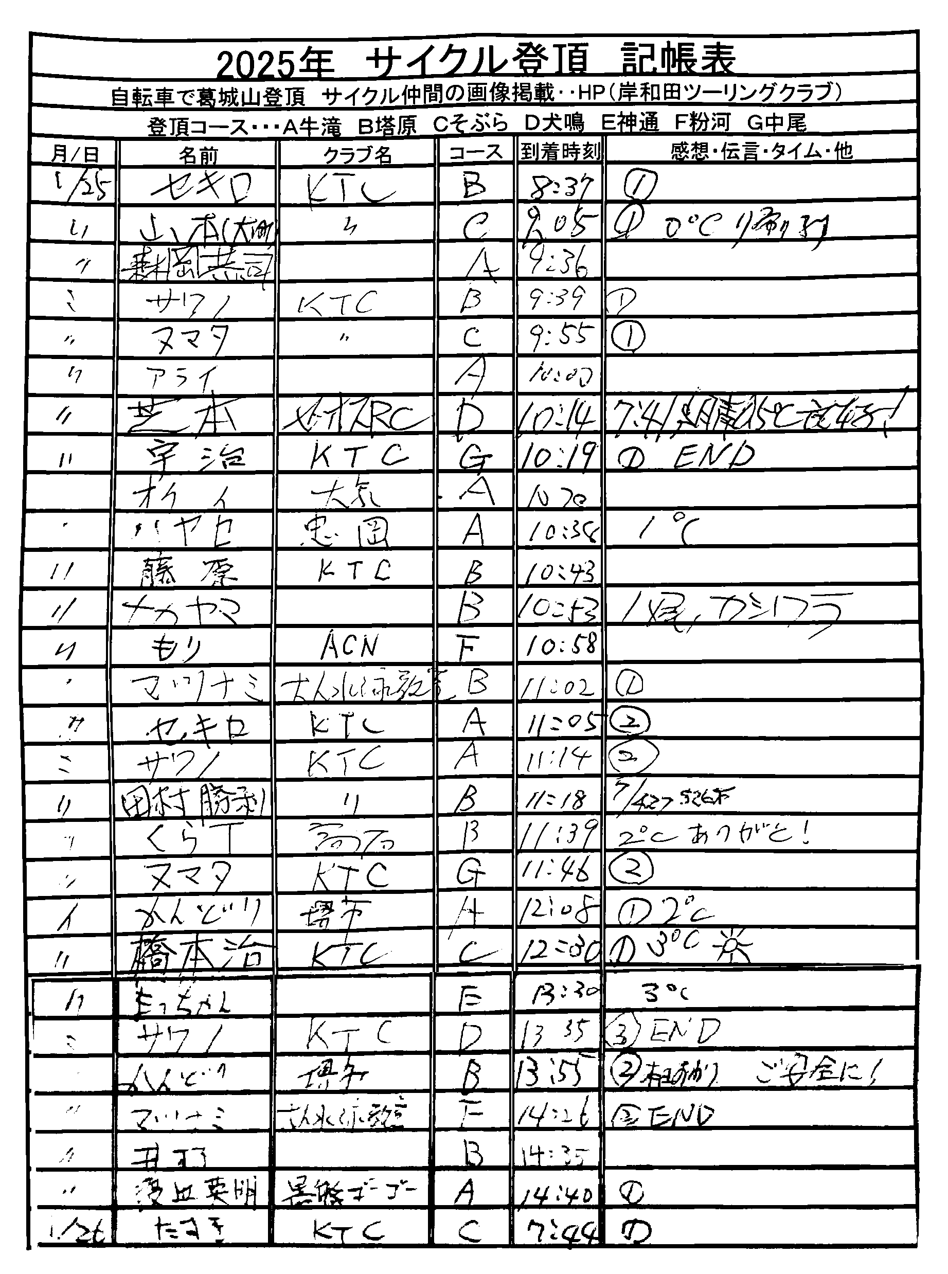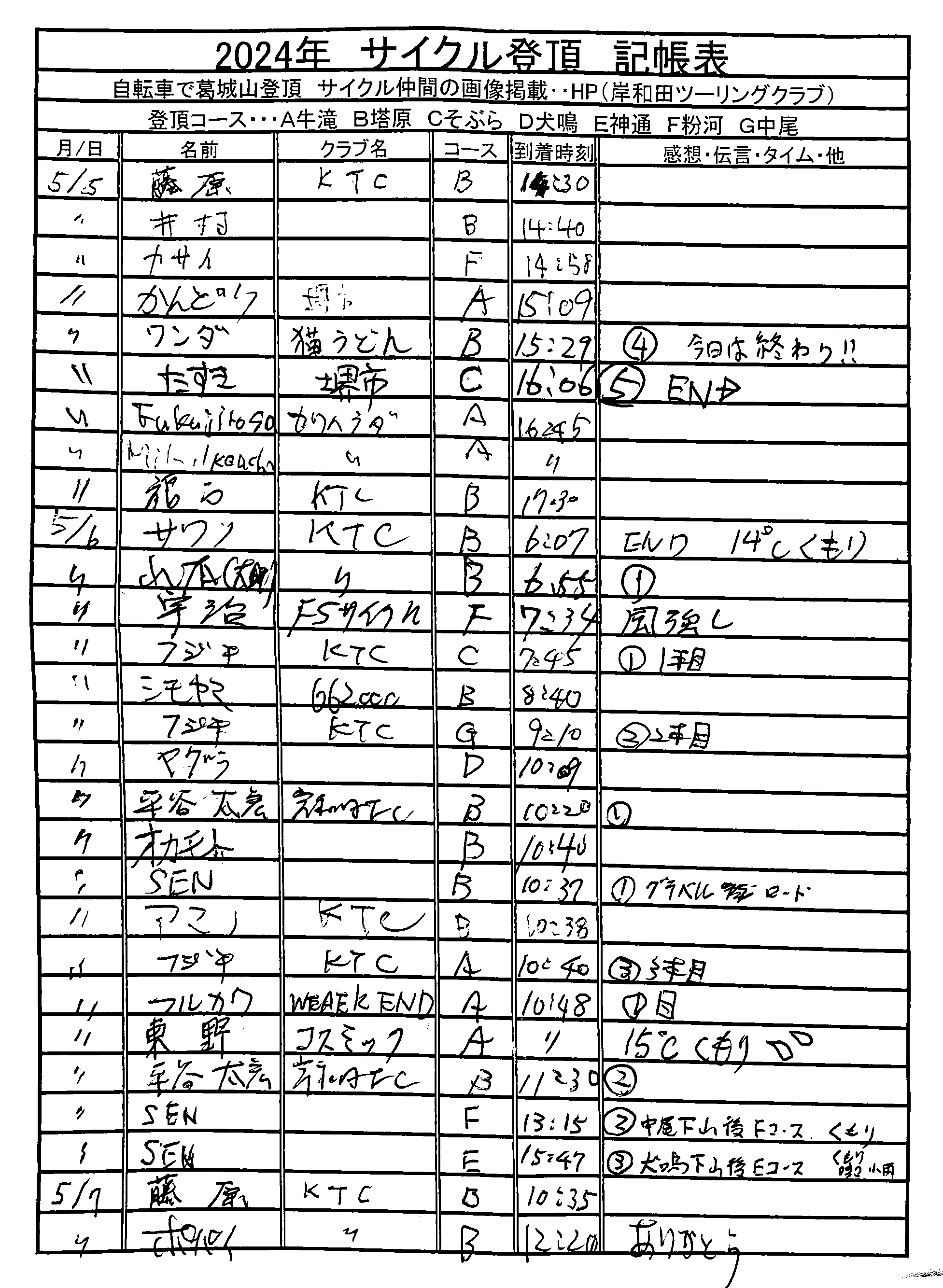■ 記帳表と回数表 ■ 岸和田ツーリングクラブの記帳表・回数表から引用させていただいてます。 2026年02月の記帳表 01/29〜02/01 01〜03 2026年01月の記帳表 12/31〜01/01 01〜04 04〜06 06〜08 08〜10 10〜13 13〜15 15〜17 17〜18 19〜21 21〜26 27〜29 29〜02/01 2025年12月の記帳表 11/30〜12/01 02〜03 03〜06 06〜07 07〜08 08〜10 10〜11 12〜13 13〜16 16〜18 18〜20 20〜20 20〜23 24〜28 28〜29 29〜31 31〜01/01 2025年11月の記帳表 10/30〜10/01 01〜02 02〜03 03〜04 05〜07 07〜08 08〜10 10〜11 11〜12 12〜14 14〜15 15〜16 16〜16 16〜17 17〜19 19〜21 19〜21 21〜22 22〜23 23〜24 24〜26 26〜28 28〜30 30〜30 30〜12/01 2025年10月の記帳表 09/30〜10/01 01〜02 02〜05 05〜06 06〜07 07〜08 08〜10 10〜11 11〜12 12〜13 13〜14 14〜15 15〜17 17〜18 18〜19 19〜21 21〜23 23〜25 25〜25 26〜27 27〜29 29〜30 30〜11/01 2025年09月の記帳表 08/31〜09/01 01〜02 02〜03 03〜06 06〜07 07〜07 07〜09 09〜10 10〜12 12〜13 13〜14 14〜15 15〜16 16〜18 18〜19 19〜20 20〜21 21〜22 22〜23 23〜24 24〜26 26〜27 27〜28 28〜28 28〜30 30〜10/01 2025年08月の記帳表 07/30〜08/01 01〜02 02〜03 03〜03 03〜03 03〜05 05〜06 06〜08 08〜08 09〜09 09〜12 12〜13 13〜14 14〜14 14〜15 15〜16 16〜17 17〜17 17〜18 18〜19 19〜20 20〜22 22〜23 23〜23 23〜24 24〜26 26〜27 27〜28 28〜29 29〜30 30〜31 31〜31 31〜09/01 2025年07月の記帳表 06/29〜07/01 01〜02 02〜03 03〜05 05〜05 05〜06 06〜06 06〜07 07〜09 09〜10 10〜12 12〜12 12〜13 13〜14 14〜16 16〜18 18〜19 19〜20 20〜20 20〜21 21〜21 22〜22 22〜23 24〜25 25〜26 26〜26 26〜27 27〜28 28〜29 29〜30 30〜08/01 2025年06月の記帳表 05/31〜06/01 01〜01 01〜02 02〜04 04〜05 05〜06 06〜07 07〜07 07〜08 08〜11 12〜13 13〜15 15〜16 16〜17 17〜18 18〜19 19〜20 20〜21 21〜22 22〜23 23〜25 26〜27 27〜28 28〜28 28〜29 28〜29 29〜29 29〜07/01 2025年05月の記帳表 04/29〜05/01 01〜01 01〜03 03〜03 03〜04 04〜04 04〜05 05〜05 05〜07 07〜08 08〜08 09〜10 10〜11 11〜11 11〜13 13〜14 14〜15 15〜16 16〜18 18〜18 18〜20 20〜21 21〜23 23〜23 23〜26 26〜27 27〜28 28〜30 30〜31 31〜06/01 2025年04月の記帳表 03/30〜04/01 01〜03 03〜04 04〜05 05〜06 06〜08 08〜09 09〜11 11〜12 12〜12 12〜14 14〜16 16〜17 17〜18 18〜19 19〜20 20〜20 20〜21 21〜23 24〜25 25〜26 26〜26 26〜26 26〜27 27〜27 27〜29 29〜29 29〜05/01 2025年03月の記帳表 02/28〜03/01 01〜06 06〜08 08〜09 09〜09 10〜12 12〜13 13〜14 14〜17 17〜21 21〜22 23〜23 23〜24 24〜25 25〜26 26〜29 29〜30 30〜30 30〜04/01 2025年02月の記帳表 01/30〜02/01 01〜04 04〜09 09〜13 13〜15 15〜15 15〜16 16〜18 19〜23 23〜28 28〜03/01 2025年01月の記帳表 12/31〜01/01 01〜02 02〜03 03〜04 04〜05 05〜05 07〜08 09〜13 13〜16 16〜18 18〜19 19〜21 21〜23 23〜25 25〜26 26〜26 26〜30 30〜02/01 2024年12月の記帳表 11/30〜12/01 01〜01 01〜02 02〜03 03〜04 05〜06 06〜07 07〜08 08〜09 09〜11 11〜12 12〜13 13〜15 15〜18 18〜20 20〜22 22〜23 23〜25 25〜27 27〜29 29〜31 31〜01/01 2024年11月の記帳表 01〜03 03〜04 04〜04 04〜05 05〜06 06〜08 08〜09 09〜10 10〜10 10〜12 12〜13 13〜14 14〜16 16〜17 17〜18 18〜19 19〜20 20〜21 22〜23 23〜24 24〜24 24〜25 26〜27 27〜30 30〜12/01 2024年10月の記帳表 09/29〜10/01 01〜02 02〜02 03〜05 05〜06 06〜06 06〜09 09〜10 10〜11 11〜12 12〜13 13〜13 13〜14 14〜15 15〜16 17〜17 17〜18 19〜20 20〜20 20〜22 22〜24 24〜25 25〜26 26〜27 27〜27 27〜29 29〜31 31〜31 2024年09月の記帳表 08/30〜09/01 01〜01 02〜03 03〜04 04〜05 05〜07 07〜07 07〜08 08〜09 09〜11 11〜12 12〜13 13〜14 14〜16 16〜16 16〜18 18〜20 20〜20 21〜21 21〜23 23〜23 23〜24 24〜25 25〜25 26〜27 27〜28 28〜28 28〜29 29〜29 29〜10/01 2024年08月の記帳表 07/31〜08/01 01〜02 02〜03 03〜03 03〜04 04〜04 04〜06 06〜07 07〜08 08〜10 10〜10 10〜11 11〜11 11〜12 12〜13 13〜14 14〜14 15〜15 15〜16 16〜17 17〜18 18〜18 18〜19 19〜21 21〜22 22〜23 23〜24 24〜25 25〜26 26〜27 28〜30 30〜09/01 2024年07月の記帳表 06/29〜07/03 03〜03 04〜05 05〜06 06〜06 06〜07 07〜07 07〜08 09〜09 09〜13 13〜14 14〜14 14〜15 15〜17 17〜18 18〜19 19〜20 20〜21 21〜21 21〜22 22〜24 24〜25 25〜26 26〜27 27〜28 28〜28 28〜29 29〜31 31〜08/01 2024年06月の記帳表 05/30〜06/01 01〜01 01〜02 02〜02 02〜03 03〜04 04〜05 05〜06 06〜07 07〜08 08〜08 08〜09 09〜11 11〜12 12〜12 12〜14 14〜15 15〜15 15〜16 16〜16 16〜17 17〜17 17〜19 19〜20 20〜22 22〜22 22〜25 25〜26 26〜29 29〜29 29〜29 29〜07/03 2024年05月の記帳表 04/29〜05/02 02〜02 02〜02 02〜03 03〜04 04〜04 04〜04 04〜05 05〜05 05〜07 07〜09 09〜10 10〜10 10〜11 11〜11 11〜11 11〜11 11〜12 12〜14 14〜15 15〜15 15〜17 17〜18 18〜18 18〜18 18〜20 20〜22 22〜22 22〜24 24〜25 25〜25 25〜26 26〜26 26〜26 26〜29 29〜30 30〜06/01 2024年04月の記帳表 03/31〜04/02 02〜05 05〜06 06〜06 06〜07 07〜07 07〜10 10〜11 11〜12 12〜13 13〜13 13〜14 14〜14 14〜16 16〜17 17〜17 17〜18 18〜19 19〜20 20〜20 21〜24 24〜25 25〜27 27〜28 28〜28 28〜29 29〜29 29〜05/02 2024年03月の記帳表 02/28〜03/01 01〜03 03〜03 03〜04 04〜07 07〜09 09〜10 10〜13 13〜14 14〜16 16〜16 16〜17 17〜18 19〜21 21〜22 22〜27 27〜28 28〜30 30〜30 31〜31 31〜 2024年02月の記帳表 01/31〜02/03 03〜03 03〜06 06〜07 08〜09 09〜10 10〜11 11〜11 11〜12 13〜14 14〜14 14〜16 16〜17 17〜18 18〜18 18〜20 20〜24 24〜26 26〜28 28〜03/01 2024年01月の記帳表 01〜02 02〜03 03〜05 05〜06 06〜07 07〜07 08〜09 09〜12 12〜13 14〜14 14〜17 17〜20 21〜23 23〜27 28〜29 29〜31 31〜02/03 2023