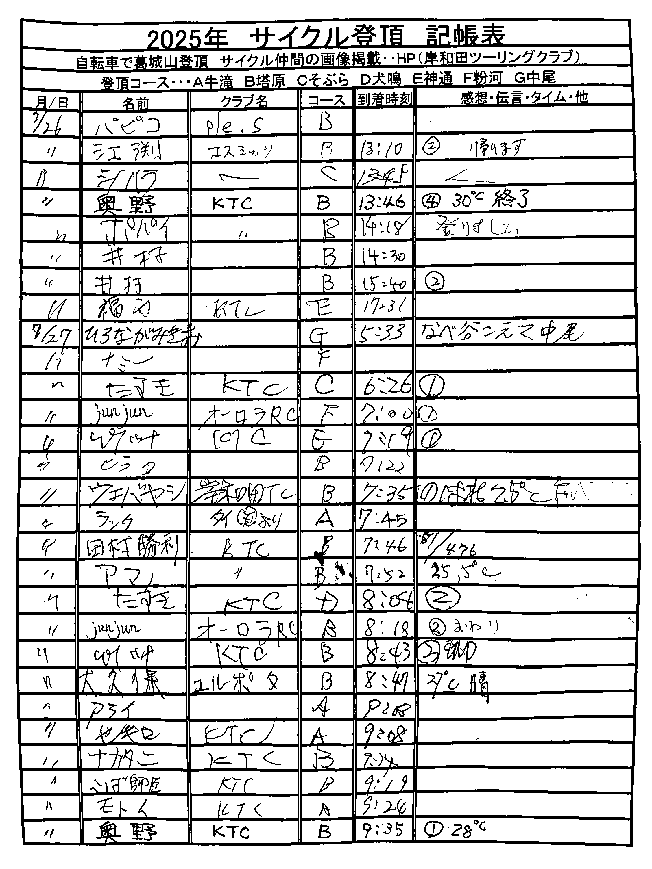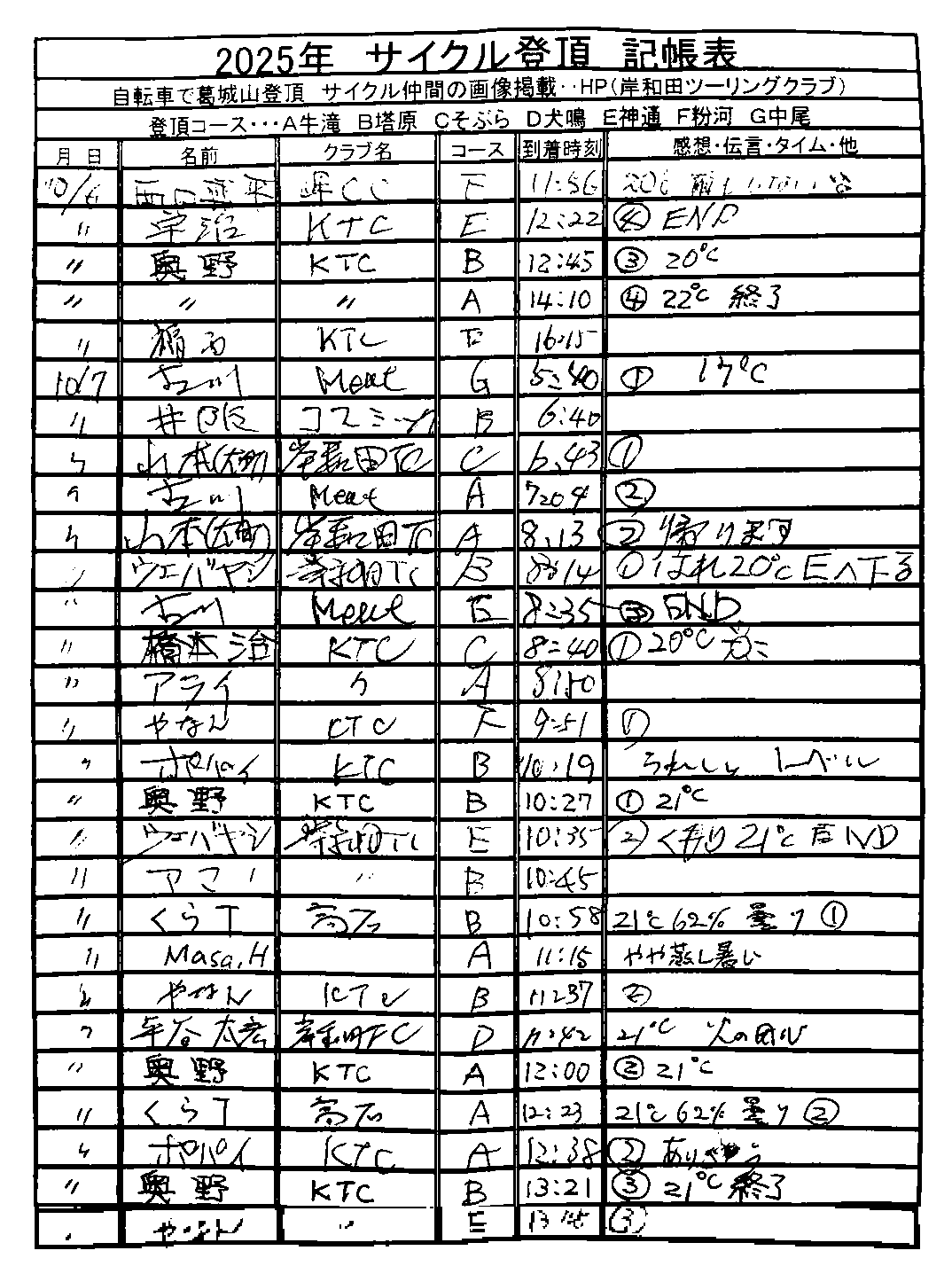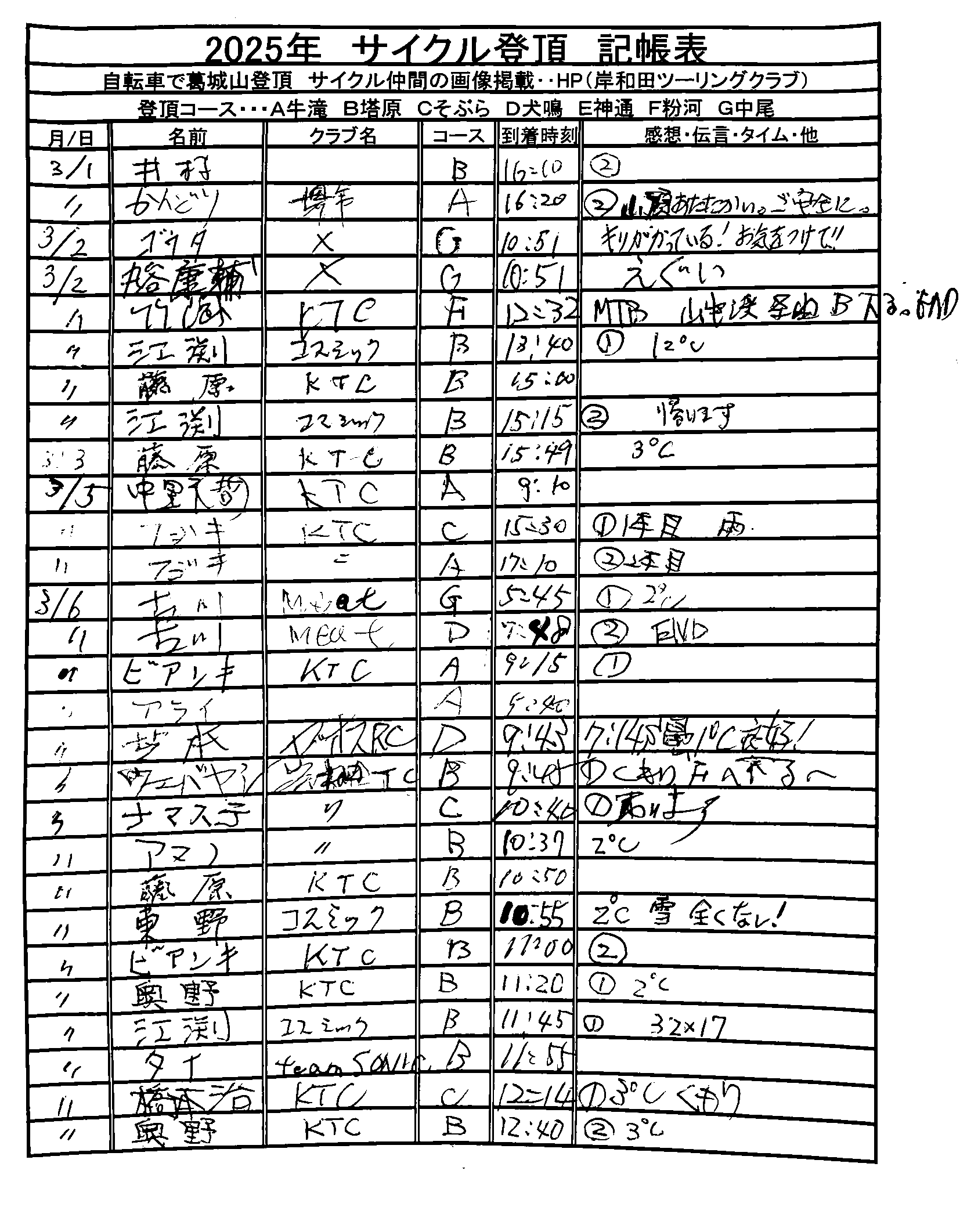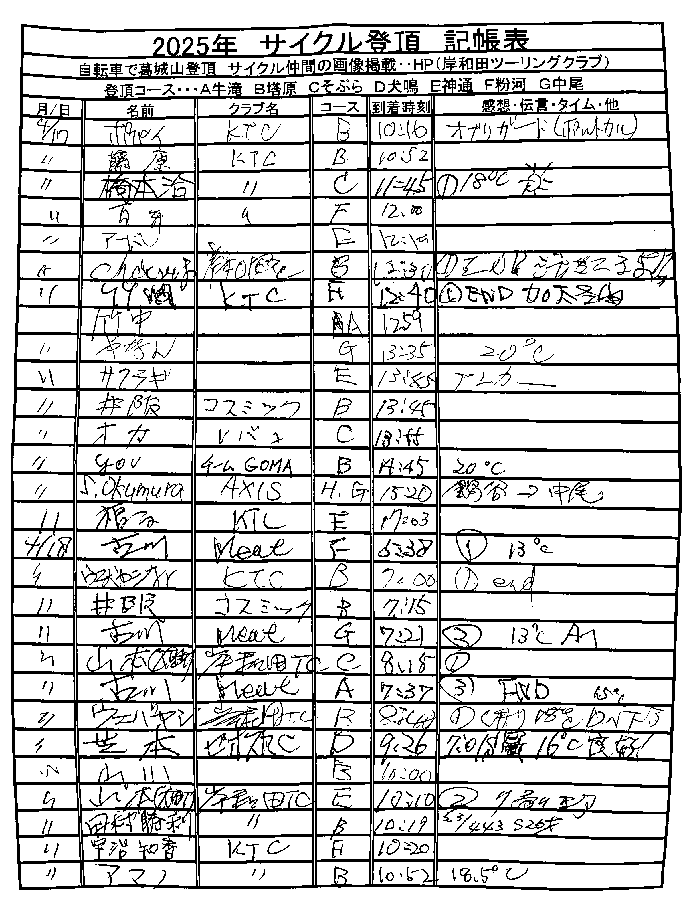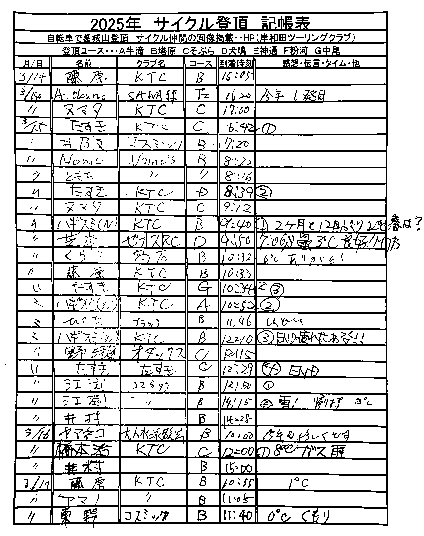 ■ 記帳表と回数表 ■ 岸和田ツーリングクラブの記帳表・回数表から引用させていただいてます。 2026年02月の記帳表 01/29〜02/01 01〜03 2026年01月の記帳表 12/31〜01/01 01〜04 04〜06 06〜08 08〜10 10〜13 13〜15 15〜17 17〜18 19〜21 21〜26 27〜29 29〜02/01 2025年12月の記帳表 11/30〜12/01 02〜03 03〜06 06〜07 07〜08 08〜10 10〜11 12〜13 13〜16 16〜18 18〜20 20〜20 20〜23 24〜28 28〜29 29〜31 31〜01/01 2025年11月の記帳表 10/30〜10/01 01〜02 02〜03 03〜04 05〜07 07〜08 08〜10 10〜11 11〜12 12〜14 14〜15 15〜16 16〜16 16〜17 17〜19 19〜21 19〜21 21〜22 22〜23 23〜24 24〜26 26〜28 28〜30 30〜30 30〜12/01 2025年10月の記帳表 09/30〜10/01 01〜02 02〜05 05〜06 06〜07 07〜08 08〜10 10〜11 11〜12 12〜13 13〜14 14〜15 15〜17 17〜18 18〜19 19〜21 21〜23 23〜25 25〜25 26〜27 27〜29 29〜30 30〜11/01 2025年09月の記帳表 08/31〜09/01 01〜02 02〜03 03〜06 06〜07 07〜07 07〜09 09〜10 10〜12 12〜13 13〜14 14〜15 15〜16 16〜18 18〜19 19〜20 20〜21 21〜22 22〜23 23〜24 24〜26 26〜27 27〜28 28〜28 28〜30 30〜10/01 2025年08月の記帳表 07/30〜08/01 01〜02 02〜03 03〜03 03〜03 03〜05 05〜06 06〜08 08〜08 09〜09 09〜12 12〜13 13〜14 14〜14 14〜15 15〜16 16〜17 17〜17 17〜18 18〜19 19〜20 20〜22 22〜23 23〜23 23〜24 24〜26 26〜27 27〜28 28〜29 29〜30 30〜31 31〜31 31〜09/01 2025年07月の記帳表 06/29〜07/01 01〜02 02〜03 03〜05 05〜05 05〜06 06〜06 06〜07 07〜09 09〜10 10〜12 12〜12 12〜13 13〜14 14〜16 16〜18 18〜19 19〜20 20〜20 20〜21 21〜21 22〜22 22〜23 24〜25 25〜26 26〜26 26〜27 27〜28 28〜29 29〜30 30〜08/01 2025年06月の記帳表 05/31〜06/01 01〜01 01〜02 02〜04 04〜05 05〜06 06〜07 07〜07 07〜08 08〜11 12〜13 13〜15 15〜16 16〜17 17〜18 18〜19 19〜20 20〜21 21〜22 22〜23 23〜25 26〜27 27〜28 28〜28 28〜29 28〜29 29〜29 29〜07/01 2025年05月の記帳表 04/29〜05/01 01〜01 01〜03 03〜03 03〜04 04〜04 04〜05 05〜05 05〜07 07〜08 08〜08 09〜10 10〜11 11〜11 11〜13 13〜14 14〜15 15〜16 16〜18 18〜18 18〜20 20〜21 21〜23 23〜23 23〜26 26〜27 27〜28 28〜30 30〜31 31〜06/01 2025年04月の記帳表 03/30〜04/01 01〜03 03〜04 04〜05 05〜06 06〜08 08〜09 09〜11 11〜12 12〜12 12〜14 14〜16 16〜17 17〜18 18〜19 19〜20 20〜20 20〜21 21〜23 24〜25 25〜26 26〜26 26〜26 26〜27 27〜27 27〜29 29〜29 29〜05/01 2025年03月の記帳表 02/28〜03/01 01〜06 06〜08 08〜09 09〜09 10〜12 12〜13 13〜14 14〜17 17〜21 21〜22 23〜23 23〜24 24〜25 25〜26 26〜29 29〜30 30〜30 30〜04/01 2025年02月の記帳表 01/30〜02/01 01〜04 04〜09 09〜13 13〜15 15〜15 15〜16 16〜18 19〜23 23〜28 28〜03/01 2025年01月の記帳表 12/31〜01/01 01〜02 02〜03 03〜04 04〜05 05〜05 07〜08 09〜13 13〜16 16〜18 18〜19 19〜21 21〜23 23〜25 25〜26 26〜26 26〜30 30〜02/01 2024年12月の記帳表 11/30〜12/01 01〜01 01〜02 02〜03 03〜04 05〜06 06〜07 07〜08 08〜09 09〜11 11〜12 12〜13 13〜15 15〜18 18〜20 20〜22 22〜23 23〜25 25〜27 27〜29 29〜31 31〜01/01 2024年11月の記帳表 01〜03 03〜04 04〜04 04〜05 05〜06 06〜08 08〜09 09〜10 10〜10 10〜12 12〜13 13〜14 14〜16 16〜17 17〜18 18〜19 19〜20 20〜21 22〜23 23〜24 24〜24 24〜25 26〜27 27〜30 30〜12/01 2024年10月の記帳表 09/29〜10/01 01〜02 02〜02 03〜05 05〜06 06〜06 06〜09 09〜10 10〜11 11〜12 12〜13 13〜13 13〜14 14〜15 15〜16 17〜17 17〜18 19〜20 20〜20 20〜22 22〜24 24〜25 25〜26 26〜27 27〜27 27〜29 29〜31 31〜31 2024年09月の記帳表 08/30〜09/01 01〜01 02〜03 03〜04 04〜05 05〜07 07〜07 07〜08 08〜09 09〜11 11〜12 12〜13 13〜14 14〜16 16〜16 16〜18 18〜20 20〜20 21〜21 21〜23 23〜23 23〜24 24〜25 25〜25 26〜27 27〜28 28〜28 28〜29 29〜29 29〜10/01 2024年08月の記帳表 07/31〜08/01 01〜02 02〜03 03〜03 03〜04 04〜04 04〜06 06〜07 07〜08 08〜10 10〜10 10〜11 11〜11 11〜12 12〜13 13〜14 14〜14 15〜15 15〜16 16〜17 17〜18 18〜18 18〜19 19〜21 21〜22 22〜23 23〜24 24〜25 25〜26 26〜27 28〜30 30〜09/01 2024年07月の記帳表 06/29〜07/03 03〜03 04〜05 05〜06 06〜06 06〜07 07〜07 07〜08 09〜09 09〜13 13〜14 14〜14 14〜15 15〜17 17〜18 18〜19 19〜20 20〜21 21〜21 21〜22 22〜24 24〜25 25〜26 26〜27 27〜28 28〜28 28〜29 29〜31 31〜08/01 2024年06月の記帳表 05/30〜06/01 01〜01 01〜02 02〜02 02〜03 03〜04 04〜05 05〜06 06〜07 07〜08 08〜08 08〜09 09〜11 11〜12 12〜12 12〜14 14〜15 15〜15 15〜16 16〜16 16〜17 17〜17 17〜19 19〜20 20〜22 22〜22 22〜25 25〜26 26〜29 29〜29 29〜29 29〜07/03 2024年05月の記帳表 04/29〜05/02 02〜02 02〜02 02〜03 03〜04 04〜04 04〜04 04〜05 05〜05 05〜07 07〜09 09〜10 10〜10 10〜11 11〜11 11〜11 11〜11 11〜12 12〜14 14〜15 15〜15 15〜17 17〜18 18〜18 18〜18 18〜20 20〜22 22〜22 22〜24 24〜25 25〜25 25〜26 26〜26 26〜26 26〜29 29〜30 30〜06/01 2024年04月の記帳表 03/31〜04/02 02〜05 05〜06 06〜06 06〜07 07〜07 07〜10 10〜11 11〜12 12〜13 13〜13 13〜14 14〜14 14〜16 16〜17 17〜17 17〜18 18〜19 19〜20 20〜20 21〜24 24〜25 25〜27 27〜28 28〜28 28〜29 29〜29 29〜05/02 2024年03月の記帳表 02/28〜03/01 01〜03 03〜03 03〜04 04〜07 07〜09 09〜10 10〜13 13〜14 14〜16 16〜16 16〜17 17〜18 19〜21 21〜22 22〜27 27〜28 28〜30 30〜30 31〜31 31〜 2024年02月の記帳表 01/31〜02/03 03〜03 03〜06 06〜07 08〜09 09〜10 10〜11 11〜11 11〜12 13〜14 14〜14 14〜16 16〜17 17〜18 18〜18 18〜20 20〜24 24〜26 26〜28 28〜03/01 2024年01月の記帳表 01〜02 02〜03 03〜05 05〜06 06〜07 07〜07 08〜09 09〜12 12〜13 14〜14 14〜17 17〜20 21〜23 23〜27 28〜29 29〜31 31〜02/03 2023