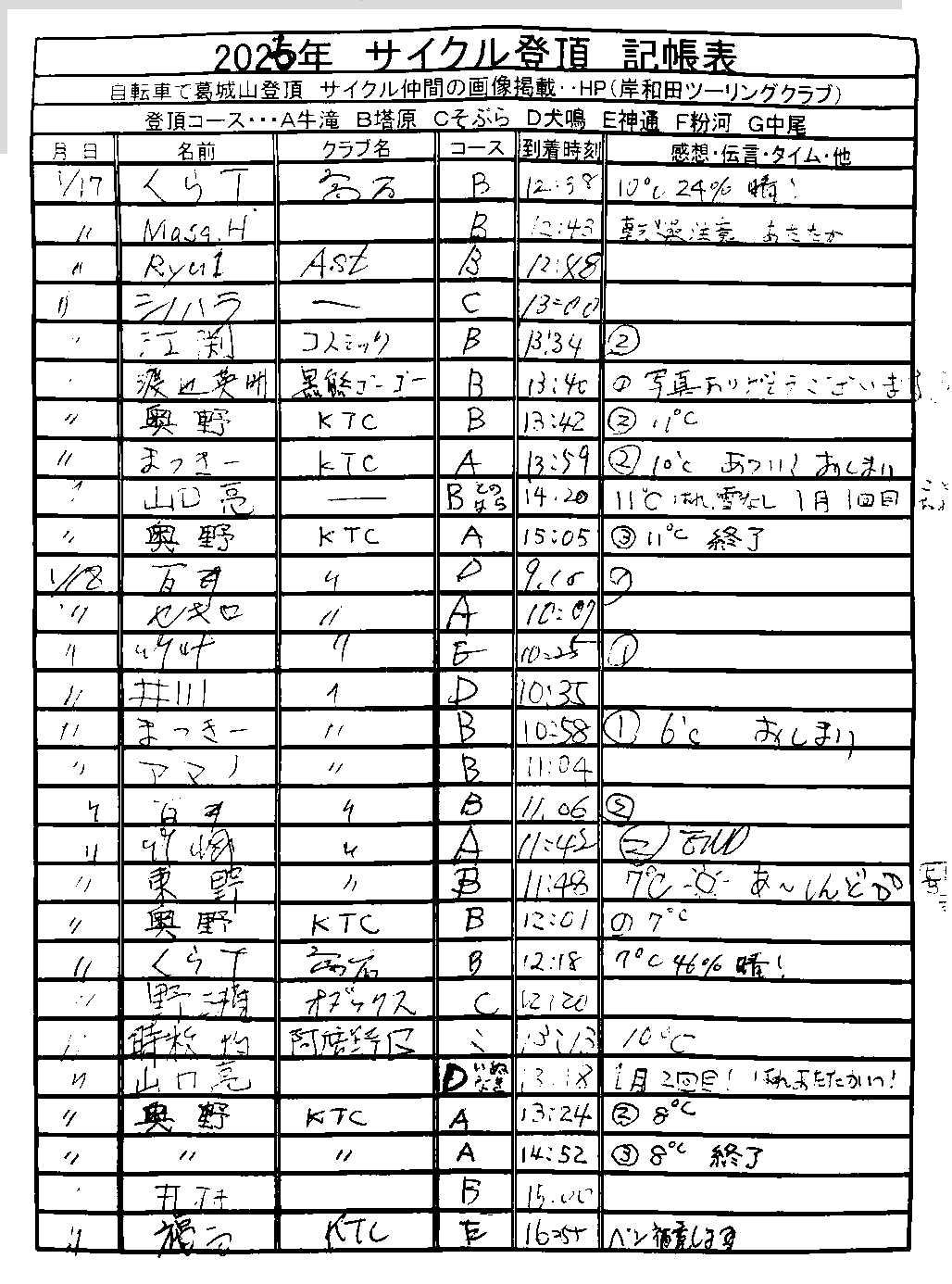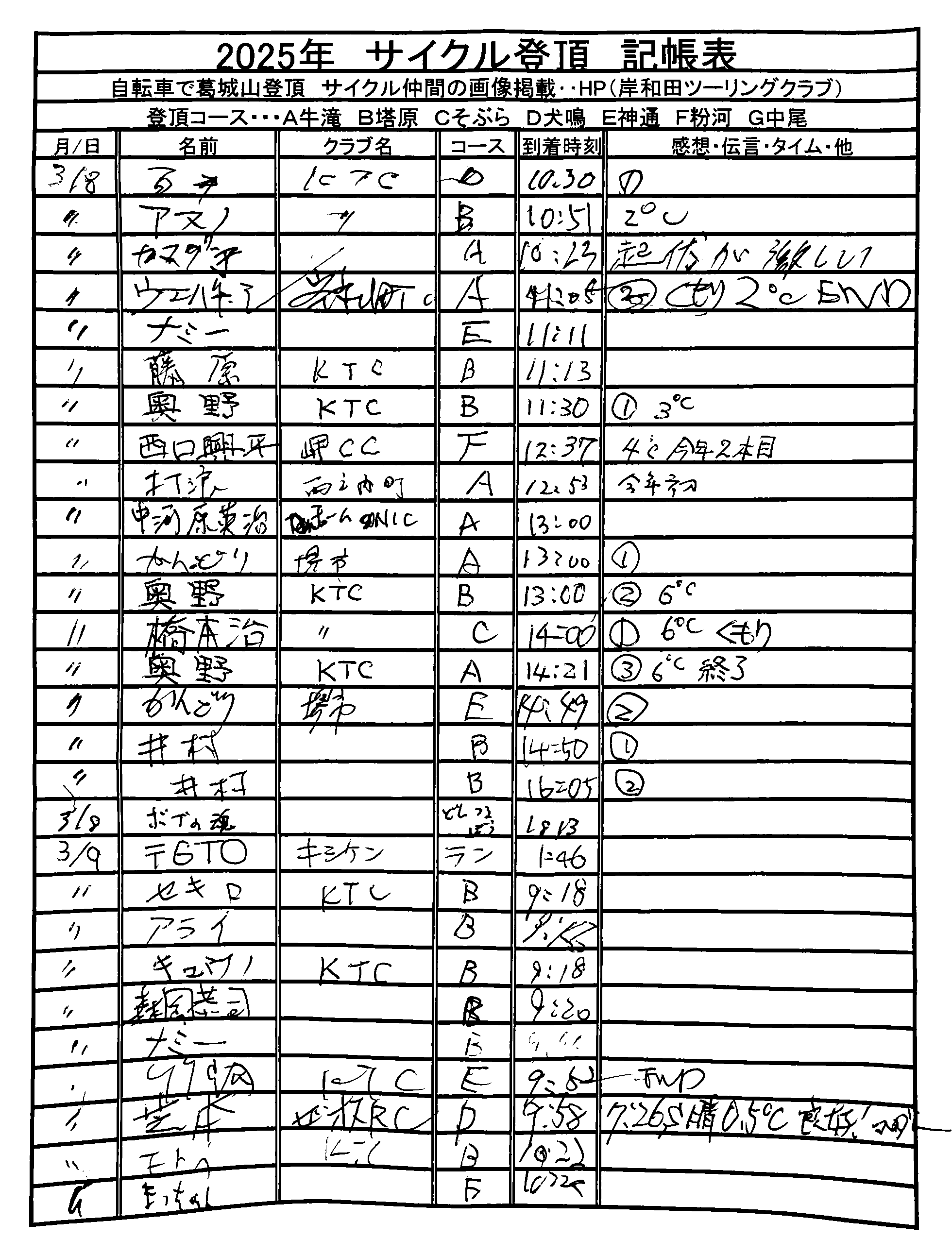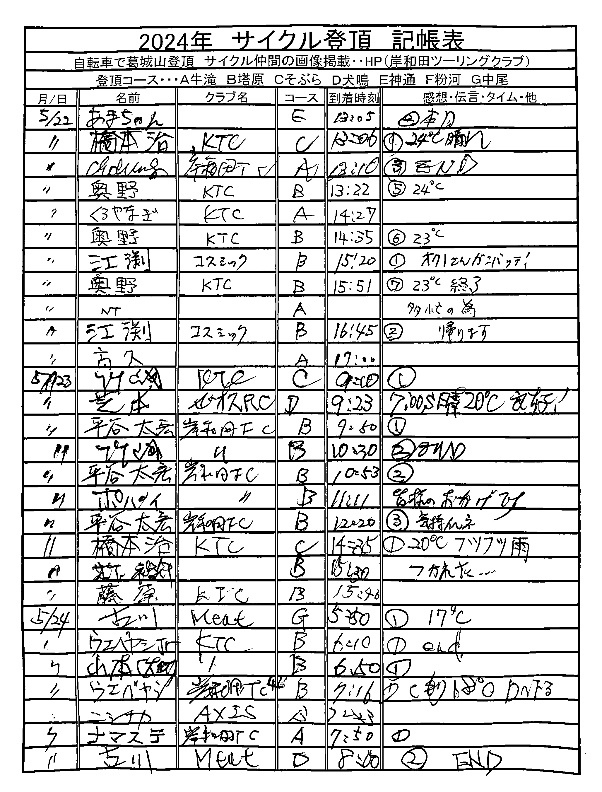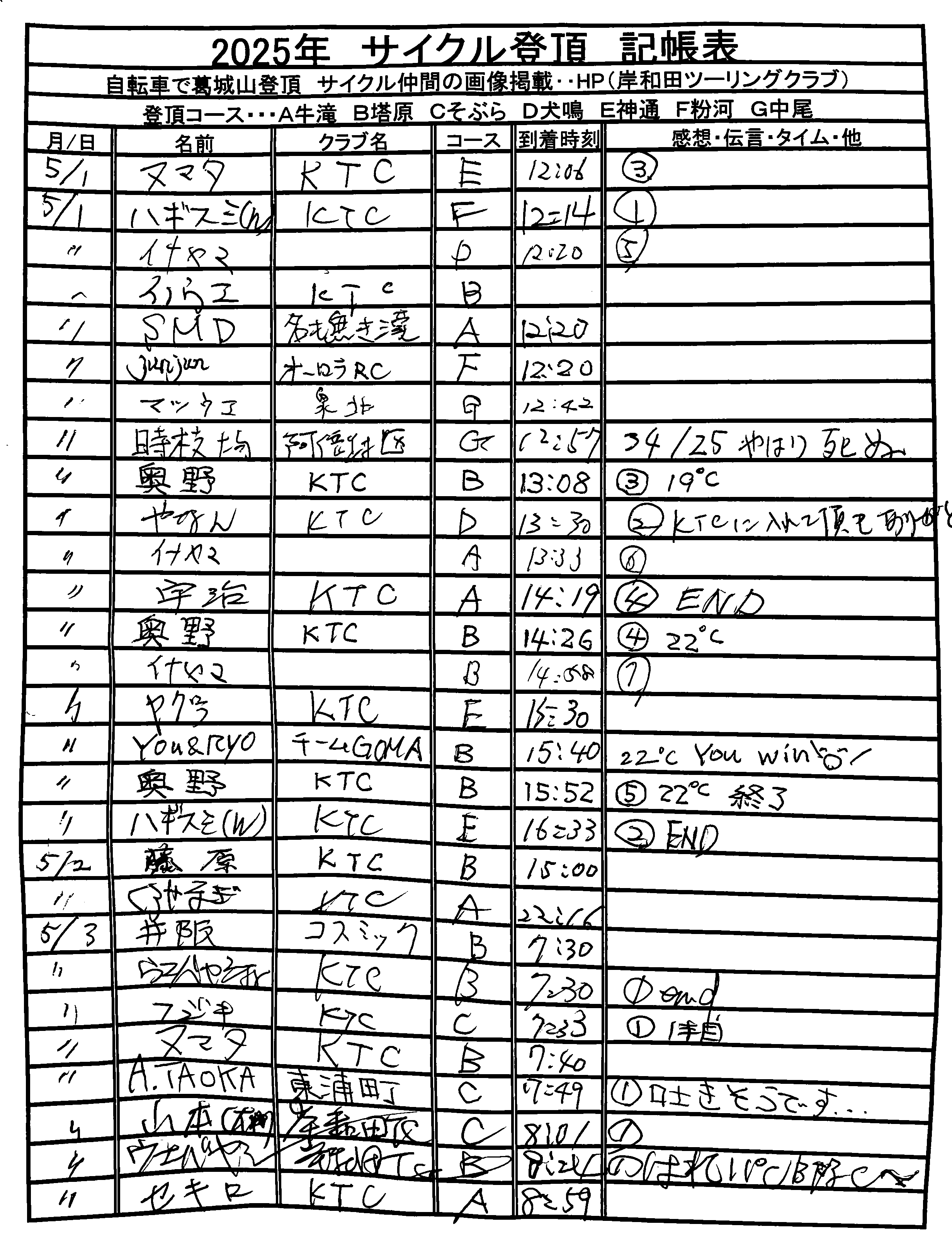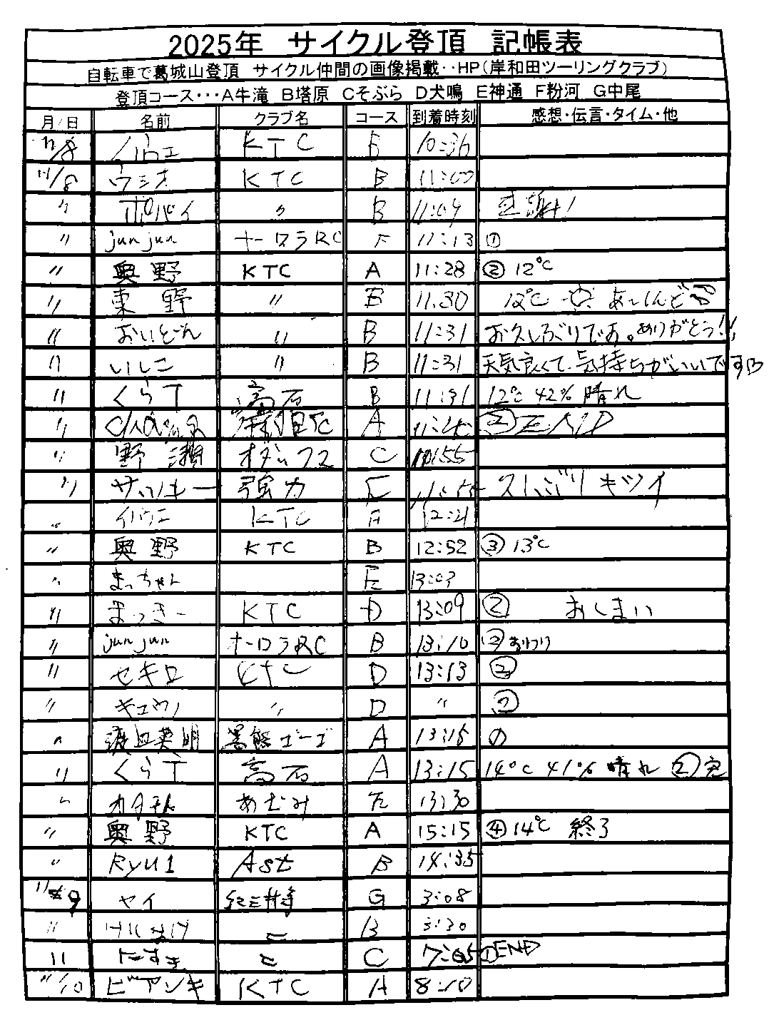 ■ 記帳表と回数表 ■ 岸和田ツーリングクラブの記帳表・回数表から引用させていただいてます。 2026年02月の記帳表 01/29〜02/01 01〜03 2026年01月の記帳表 12/31〜01/01 01〜04 04〜06 06〜08 08〜10 10〜13 13〜15 15〜17 17〜18 19〜21 21〜26 27〜29 29〜02/01 2025年12月の記帳表 11/30〜12/01 02〜03 03〜06 06〜07 07〜08 08〜10 10〜11 12〜13 13〜16 16〜18 18〜20 20〜20 20〜23 24〜28 28〜29 29〜31 31〜01/01 2025年11月の記帳表 10/30〜10/01 01〜02 02〜03 03〜04 05〜07 07〜08 08〜10 10〜11 11〜12 12〜14 14〜15 15〜16 16〜16 16〜17 17〜19 19〜21 19〜21 21〜22 22〜23 23〜24 24〜26 26〜28 28〜30 30〜30 30〜12/01 2025年10月の記帳表 09/30〜10/01 01〜02 02〜05 05〜06 06〜07 07〜08 08〜10 10〜11 11〜12 12〜13 13〜14 14〜15 15〜17 17〜18 18〜19 19〜21 21〜23 23〜25 25〜25 26〜27 27〜29 29〜30 30〜11/01 2025年09月の記帳表 08/31〜09/01 01〜02 02〜03 03〜06 06〜07 07〜07 07〜09 09〜10 10〜12 12〜13 13〜14 14〜15 15〜16 16〜18 18〜19 19〜20 20〜21 21〜22 22〜23 23〜24 24〜26 26〜27 27〜28 28〜28 28〜30 30〜10/01 2025年08月の記帳表 07/30〜08/01 01〜02 02〜03 03〜03 03〜03 03〜05 05〜06 06〜08 08〜08 09〜09 09〜12 12〜13 13〜14 14〜14 14〜15 15〜16 16〜17 17〜17 17〜18 18〜19 19〜20 20〜22 22〜23 23〜23 23〜24 24〜26 26〜27 27〜28 28〜29 29〜30 30〜31 31〜31 31〜09/01 2025年07月の記帳表 06/29〜07/01 01〜02 02〜03 03〜05 05〜05 05〜06 06〜06 06〜07 07〜09 09〜10 10〜12 12〜12 12〜13 13〜14 14〜16 16〜18 18〜19 19〜20 20〜20 20〜21 21〜21 22〜22 22〜23 24〜25 25〜26 26〜26 26〜27 27〜28 28〜29 29〜30 30〜08/01 2025年06月の記帳表 05/31〜06/01 01〜01 01〜02 02〜04 04〜05 05〜06 06〜07 07〜07 07〜08 08〜11 12〜13 13〜15 15〜16 16〜17 17〜18 18〜19 19〜20 20〜21 21〜22 22〜23 23〜25 26〜27 27〜28 28〜28 28〜29 28〜29 29〜29 29〜07/01 2025年05月の記帳表 04/29〜05/01 01〜01 01〜03 03〜03 03〜04 04〜04 04〜05 05〜05 05〜07 07〜08 08〜08 09〜10 10〜11 11〜11 11〜13 13〜14 14〜15 15〜16 16〜18 18〜18 18〜20 20〜21 21〜23 23〜23 23〜26 26〜27 27〜28 28〜30 30〜31 31〜06/01 2025年04月の記帳表 03/30〜04/01 01〜03 03〜04 04〜05 05〜06 06〜08 08〜09 09〜11 11〜12 12〜12 12〜14 14〜16 16〜17 17〜18 18〜19 19〜20 20〜20 20〜21 21〜23 24〜25 25〜26 26〜26 26〜26 26〜27 27〜27 27〜29 29〜29 29〜05/01 2025年03月の記帳表 02/28〜03/01 01〜06 06〜08 08〜09 09〜09 10〜12 12〜13 13〜14 14〜17 17〜21 21〜22 23〜23 23〜24 24〜25 25〜26 26〜29 29〜30 30〜30 30〜04/01 2025年02月の記帳表 01/30〜02/01 01〜04 04〜09 09〜13 13〜15 15〜15 15〜16 16〜18 19〜23 23〜28 28〜03/01 2025年01月の記帳表 12/31〜01/01 01〜02 02〜03 03〜04 04〜05 05〜05 07〜08 09〜13 13〜16 16〜18 18〜19 19〜21 21〜23 23〜25 25〜26 26〜26 26〜30 30〜02/01 2024年12月の記帳表 11/30〜12/01 01〜01 01〜02 02〜03 03〜04 05〜06 06〜07 07〜08 08〜09 09〜11 11〜12 12〜13 13〜15 15〜18 18〜20 20〜22 22〜23 23〜25 25〜27 27〜29 29〜31 31〜01/01 2024年11月の記帳表 01〜03 03〜04 04〜04 04〜05 05〜06 06〜08 08〜09 09〜10 10〜10 10〜12 12〜13 13〜14 14〜16 16〜17 17〜18 18〜19 19〜20 20〜21 22〜23 23〜24 24〜24 24〜25 26〜27 27〜30 30〜12/01 2024年10月の記帳表 09/29〜10/01 01〜02 02〜02 03〜05 05〜06 06〜06 06〜09 09〜10 10〜11 11〜12 12〜13 13〜13 13〜14 14〜15 15〜16 17〜17 17〜18 19〜20 20〜20 20〜22 22〜24 24〜25 25〜26 26〜27 27〜27 27〜29 29〜31 31〜31 2024年09月の記帳表 08/30〜09/01 01〜01 02〜03 03〜04 04〜05 05〜07 07〜07 07〜08 08〜09 09〜11 11〜12 12〜13 13〜14 14〜16 16〜16 16〜18 18〜20 20〜20 21〜21 21〜23 23〜23 23〜24 24〜25 25〜25 26〜27 27〜28 28〜28 28〜29 29〜29 29〜10/01 2024年08月の記帳表 07/31〜08/01 01〜02 02〜03 03〜03 03〜04 04〜04 04〜06 06〜07 07〜08 08〜10 10〜10 10〜11 11〜11 11〜12 12〜13 13〜14 14〜14 15〜15 15〜16 16〜17 17〜18 18〜18 18〜19 19〜21 21〜22 22〜23 23〜24 24〜25 25〜26 26〜27 28〜30 30〜09/01 2024年07月の記帳表 06/29〜07/03 03〜03 04〜05 05〜06 06〜06 06〜07 07〜07 07〜08 09〜09 09〜13 13〜14 14〜14 14〜15 15〜17 17〜18 18〜19 19〜20 20〜21 21〜21 21〜22 22〜24 24〜25 25〜26 26〜27 27〜28 28〜28 28〜29 29〜31 31〜08/01 2024年06月の記帳表 05/30〜06/01 01〜01 01〜02 02〜02 02〜03 03〜04 04〜05 05〜06 06〜07 07〜08 08〜08 08〜09 09〜11 11〜12 12〜12 12〜14 14〜15 15〜15 15〜16 16〜16 16〜17 17〜17 17〜19 19〜20 20〜22 22〜22 22〜25 25〜26 26〜29 29〜29 29〜29 29〜07/03 2024年05月の記帳表 04/29〜05/02 02〜02 02〜02 02〜03 03〜04 04〜04 04〜04 04〜05 05〜05 05〜07 07〜09 09〜10 10〜10 10〜11 11〜11 11〜11 11〜11 11〜12 12〜14 14〜15 15〜15 15〜17 17〜18 18〜18 18〜18 18〜20 20〜22 22〜22 22〜24 24〜25 25〜25 25〜26 26〜26 26〜26 26〜29 29〜30 30〜06/01 2024年04月の記帳表 03/31〜04/02 02〜05 05〜06 06〜06 06〜07 07〜07 07〜10 10〜11 11〜12 12〜13 13〜13 13〜14 14〜14 14〜16 16〜17 17〜17 17〜18 18〜19 19〜20 20〜20 21〜24 24〜25 25〜27 27〜28 28〜28 28〜29 29〜29 29〜05/02 2024年03月の記帳表 02/28〜03/01 01〜03 03〜03 03〜04 04〜07 07〜09 09〜10 10〜13 13〜14 14〜16 16〜16 16〜17 17〜18 19〜21 21〜22 22〜27 27〜28 28〜30 30〜30 31〜31 31〜 2024年02月の記帳表 01/31〜02/03 03〜03 03〜06 06〜07 08〜09 09〜10 10〜11 11〜11 11〜12 13〜14 14〜14 14〜16 16〜17 17〜18 18〜18 18〜20 20〜24 24〜26 26〜28 28〜03/01 2024年01月の記帳表 01〜02 02〜03 03〜05 05〜06 06〜07 07〜07 08〜09 09〜12 12〜13 14〜14 14〜17 17〜20 21〜23 23〜27 28〜29 29〜31 31〜02/03 2023