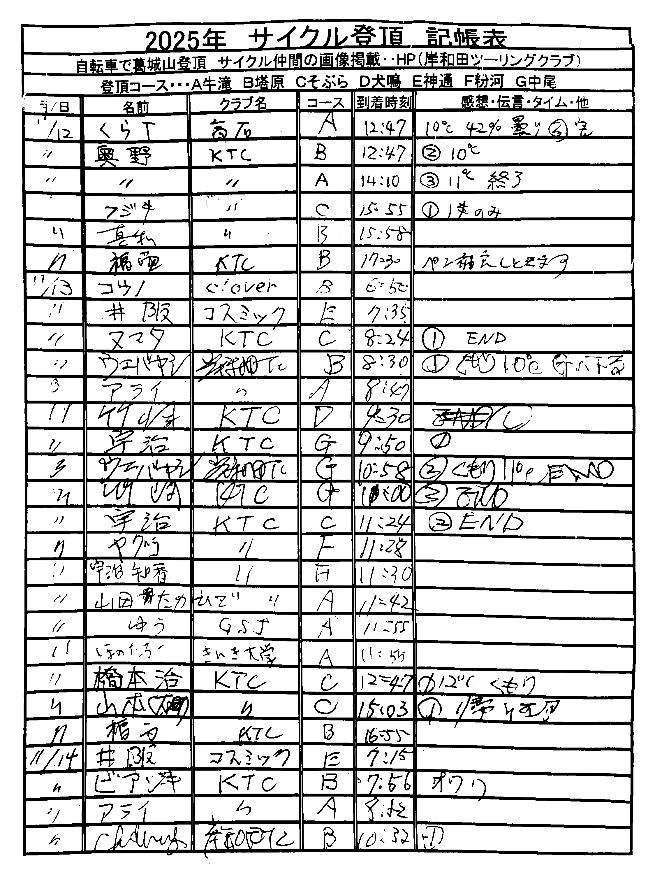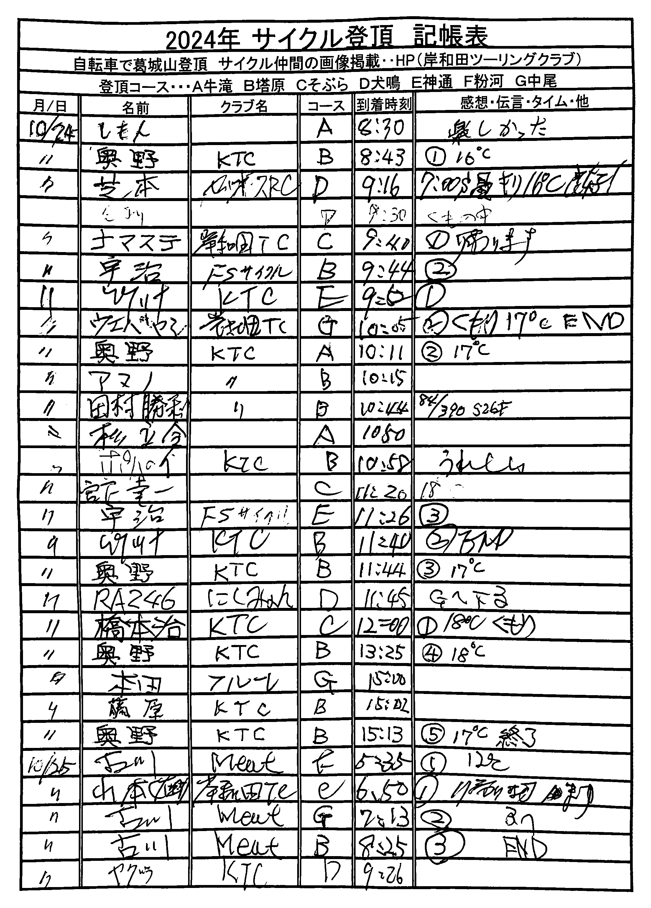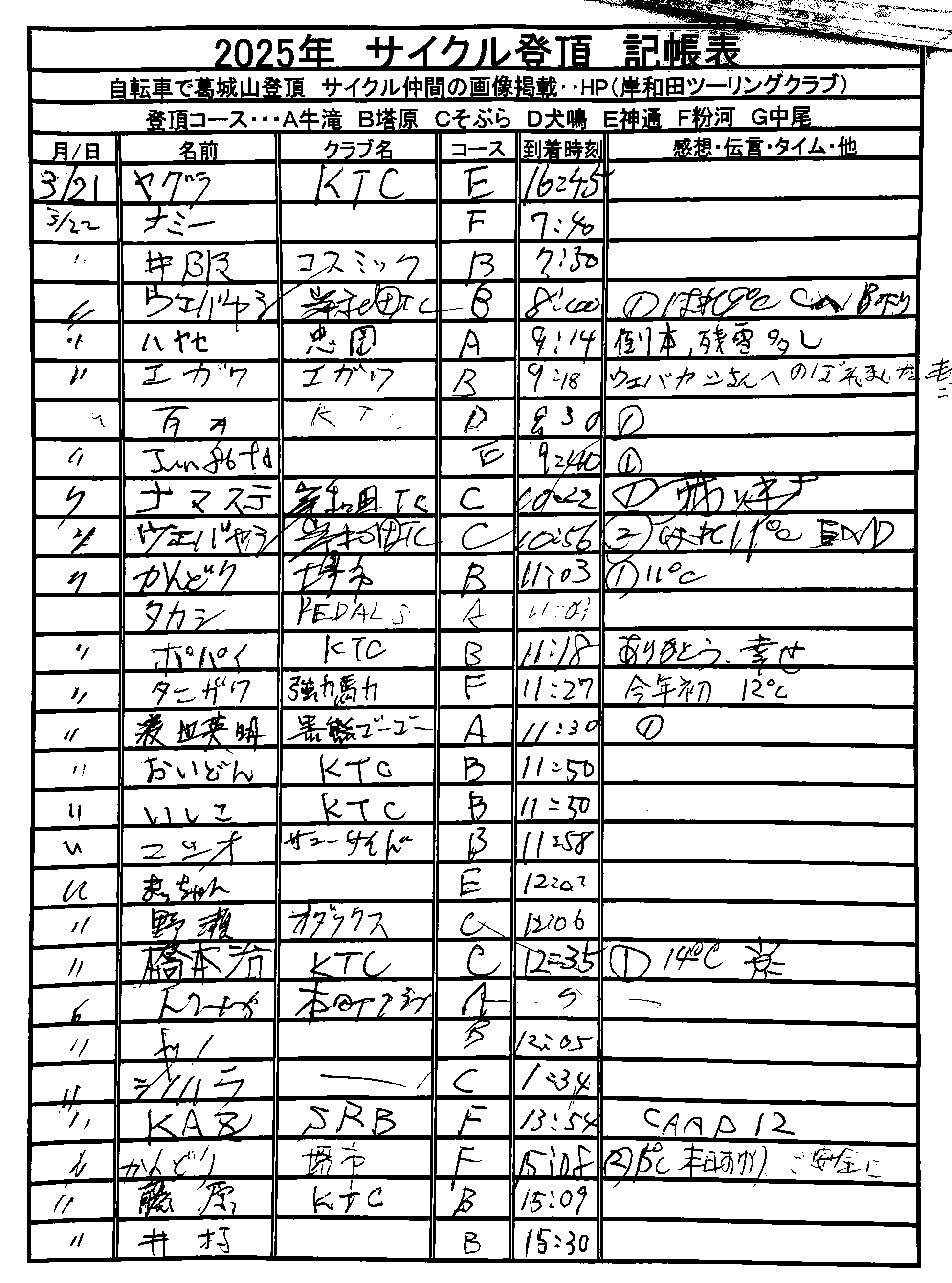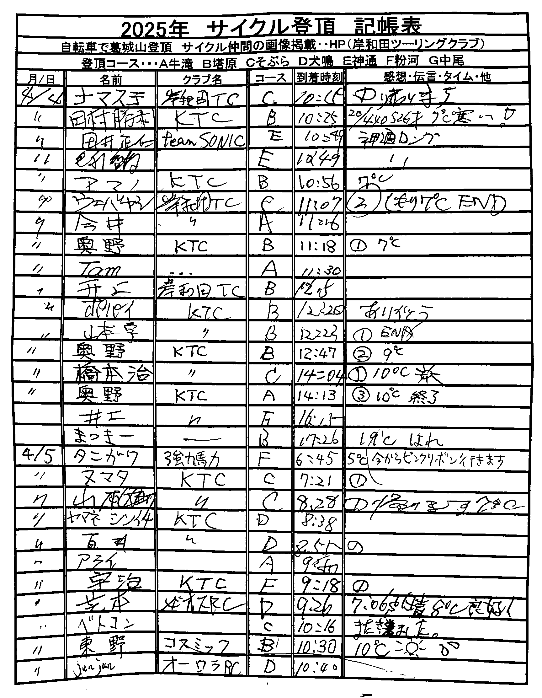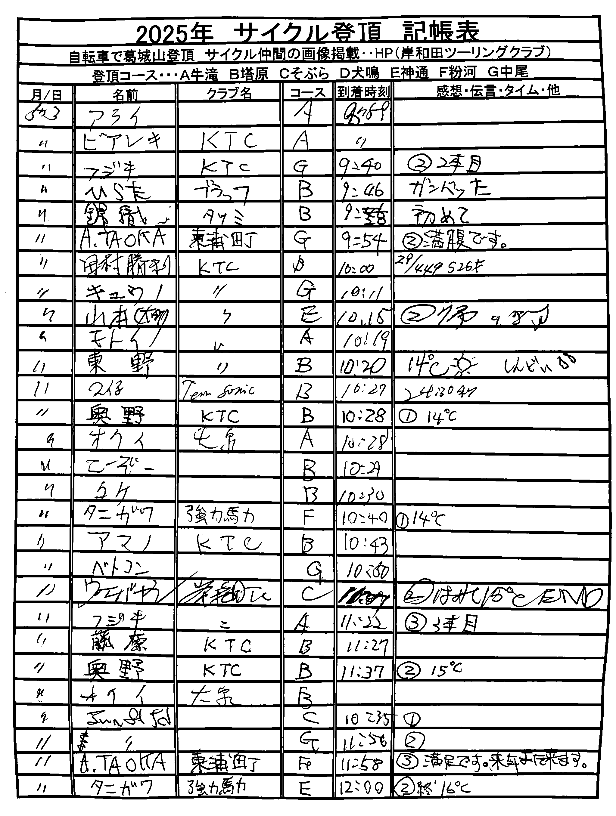 ■ 記帳表と回数表 ■ 岸和田ツーリングクラブの記帳表・回数表から引用させていただいてます。 2026年02月の記帳表 01/29〜02/01 01〜03 2026年01月の記帳表 12/31〜01/01 01〜04 04〜06 06〜08 08〜10 10〜13 13〜15 15〜17 17〜18 19〜21 21〜26 27〜29 29〜02/01 2025年12月の記帳表 11/30〜12/01 02〜03 03〜06 06〜07 07〜08 08〜10 10〜11 12〜13 13〜16 16〜18 18〜20 20〜20 20〜23 24〜28 28〜29 29〜31 31〜01/01 2025年11月の記帳表 10/30〜10/01 01〜02 02〜03 03〜04 05〜07 07〜08 08〜10 10〜11 11〜12 12〜14 14〜15 15〜16 16〜16 16〜17 17〜19 19〜21 19〜21 21〜22 22〜23 23〜24 24〜26 26〜28 28〜30 30〜30 30〜12/01 2025年10月の記帳表 09/30〜10/01 01〜02 02〜05 05〜06 06〜07 07〜08 08〜10 10〜11 11〜12 12〜13 13〜14 14〜15 15〜17 17〜18 18〜19 19〜21 21〜23 23〜25 25〜25 26〜27 27〜29 29〜30 30〜11/01 2025年09月の記帳表 08/31〜09/01 01〜02 02〜03 03〜06 06〜07 07〜07 07〜09 09〜10 10〜12 12〜13 13〜14 14〜15 15〜16 16〜18 18〜19 19〜20 20〜21 21〜22 22〜23 23〜24 24〜26 26〜27 27〜28 28〜28 28〜30 30〜10/01 2025年08月の記帳表 07/30〜08/01 01〜02 02〜03 03〜03 03〜03 03〜05 05〜06 06〜08 08〜08 09〜09 09〜12 12〜13 13〜14 14〜14 14〜15 15〜16 16〜17 17〜17 17〜18 18〜19 19〜20 20〜22 22〜23 23〜23 23〜24 24〜26 26〜27 27〜28 28〜29 29〜30 30〜31 31〜31 31〜09/01 2025年07月の記帳表 06/29〜07/01 01〜02 02〜03 03〜05 05〜05 05〜06 06〜06 06〜07 07〜09 09〜10 10〜12 12〜12 12〜13 13〜14 14〜16 16〜18 18〜19 19〜20 20〜20 20〜21 21〜21 22〜22 22〜23 24〜25 25〜26 26〜26 26〜27 27〜28 28〜29 29〜30 30〜08/01 2025年06月の記帳表 05/31〜06/01 01〜01 01〜02 02〜04 04〜05 05〜06 06〜07 07〜07 07〜08 08〜11 12〜13 13〜15 15〜16 16〜17 17〜18 18〜19 19〜20 20〜21 21〜22 22〜23 23〜25 26〜27 27〜28 28〜28 28〜29 28〜29 29〜29 29〜07/01 2025年05月の記帳表 04/29〜05/01 01〜01 01〜03 03〜03 03〜04 04〜04 04〜05 05〜05 05〜07 07〜08 08〜08 09〜10 10〜11 11〜11 11〜13 13〜14 14〜15 15〜16 16〜18 18〜18 18〜20 20〜21 21〜23 23〜23 23〜26 26〜27 27〜28 28〜30 30〜31 31〜06/01 2025年04月の記帳表 03/30〜04/01 01〜03 03〜04 04〜05 05〜06 06〜08 08〜09 09〜11 11〜12 12〜12 12〜14 14〜16 16〜17 17〜18 18〜19 19〜20 20〜20 20〜21 21〜23 24〜25 25〜26 26〜26 26〜26 26〜27 27〜27 27〜29 29〜29 29〜05/01 2025年03月の記帳表 02/28〜03/01 01〜06 06〜08 08〜09 09〜09 10〜12 12〜13 13〜14 14〜17 17〜21 21〜22 23〜23 23〜24 24〜25 25〜26 26〜29 29〜30 30〜30 30〜04/01 2025年02月の記帳表 01/30〜02/01 01〜04 04〜09 09〜13 13〜15 15〜15 15〜16 16〜18 19〜23 23〜28 28〜03/01 2025年01月の記帳表 12/31〜01/01 01〜02 02〜03 03〜04 04〜05 05〜05 07〜08 09〜13 13〜16 16〜18 18〜19 19〜21 21〜23 23〜25 25〜26 26〜26 26〜30 30〜02/01 2024年12月の記帳表 11/30〜12/01 01〜01 01〜02 02〜03 03〜04 05〜06 06〜07 07〜08 08〜09 09〜11 11〜12 12〜13 13〜15 15〜18 18〜20 20〜22 22〜23 23〜25 25〜27 27〜29 29〜31 31〜01/01 2024年11月の記帳表 01〜03 03〜04 04〜04 04〜05 05〜06 06〜08 08〜09 09〜10 10〜10 10〜12 12〜13 13〜14 14〜16 16〜17 17〜18 18〜19 19〜20 20〜21 22〜23 23〜24 24〜24 24〜25 26〜27 27〜30 30〜12/01 2024年10月の記帳表 09/29〜10/01 01〜02 02〜02 03〜05 05〜06 06〜06 06〜09 09〜10 10〜11 11〜12 12〜13 13〜13 13〜14 14〜15 15〜16 17〜17 17〜18 19〜20 20〜20 20〜22 22〜24 24〜25 25〜26 26〜27 27〜27 27〜29 29〜31 31〜31 2024年09月の記帳表 08/30〜09/01 01〜01 02〜03 03〜04 04〜05 05〜07 07〜07 07〜08 08〜09 09〜11 11〜12 12〜13 13〜14 14〜16 16〜16 16〜18 18〜20 20〜20 21〜21 21〜23 23〜23 23〜24 24〜25 25〜25 26〜27 27〜28 28〜28 28〜29 29〜29 29〜10/01 2024年08月の記帳表 07/31〜08/01 01〜02 02〜03 03〜03 03〜04 04〜04 04〜06 06〜07 07〜08 08〜10 10〜10 10〜11 11〜11 11〜12 12〜13 13〜14 14〜14 15〜15 15〜16 16〜17 17〜18 18〜18 18〜19 19〜21 21〜22 22〜23 23〜24 24〜25 25〜26 26〜27 28〜30 30〜09/01 2024年07月の記帳表 06/29〜07/03 03〜03 04〜05 05〜06 06〜06 06〜07 07〜07 07〜08 09〜09 09〜13 13〜14 14〜14 14〜15 15〜17 17〜18 18〜19 19〜20 20〜21 21〜21 21〜22 22〜24 24〜25 25〜26 26〜27 27〜28 28〜28 28〜29 29〜31 31〜08/01 2024年06月の記帳表 05/30〜06/01 01〜01 01〜02 02〜02 02〜03 03〜04 04〜05 05〜06 06〜07 07〜08 08〜08 08〜09 09〜11 11〜12 12〜12 12〜14 14〜15 15〜15 15〜16 16〜16 16〜17 17〜17 17〜19 19〜20 20〜22 22〜22 22〜25 25〜26 26〜29 29〜29 29〜29 29〜07/03 2024年05月の記帳表 04/29〜05/02 02〜02 02〜02 02〜03 03〜04 04〜04 04〜04 04〜05 05〜05 05〜07 07〜09 09〜10 10〜10 10〜11 11〜11 11〜11 11〜11 11〜12 12〜14 14〜15 15〜15 15〜17 17〜18 18〜18 18〜18 18〜20 20〜22 22〜22 22〜24 24〜25 25〜25 25〜26 26〜26 26〜26 26〜29 29〜30 30〜06/01 2024年04月の記帳表 03/31〜04/02 02〜05 05〜06 06〜06 06〜07 07〜07 07〜10 10〜11 11〜12 12〜13 13〜13 13〜14 14〜14 14〜16 16〜17 17〜17 17〜18 18〜19 19〜20 20〜20 21〜24 24〜25 25〜27 27〜28 28〜28 28〜29 29〜29 29〜05/02 2024年03月の記帳表 02/28〜03/01 01〜03 03〜03 03〜04 04〜07 07〜09 09〜10 10〜13 13〜14 14〜16 16〜16 16〜17 17〜18 19〜21 21〜22 22〜27 27〜28 28〜30 30〜30 31〜31 31〜 2024年02月の記帳表 01/31〜02/03 03〜03 03〜06 06〜07 08〜09 09〜10 10〜11 11〜11 11〜12 13〜14 14〜14 14〜16 16〜17 17〜18 18〜18 18〜20 20〜24 24〜26 26〜28 28〜03/01 2024年01月の記帳表 01〜02 02〜03 03〜05 05〜06 06〜07 07〜07 08〜09 09〜12 12〜13 14〜14 14〜17 17〜20 21〜23 23〜27 28〜29 29〜31 31〜02/03 2023