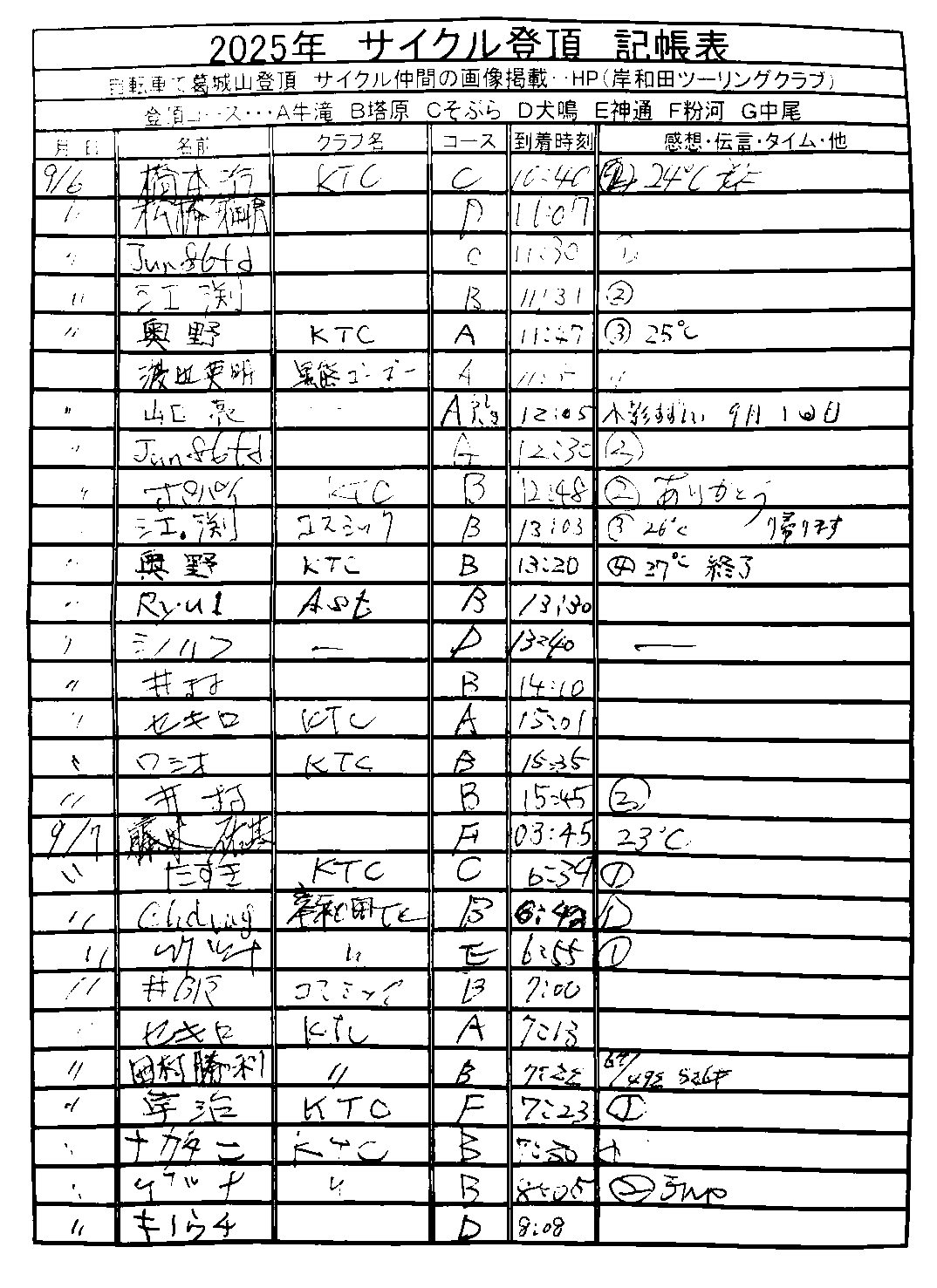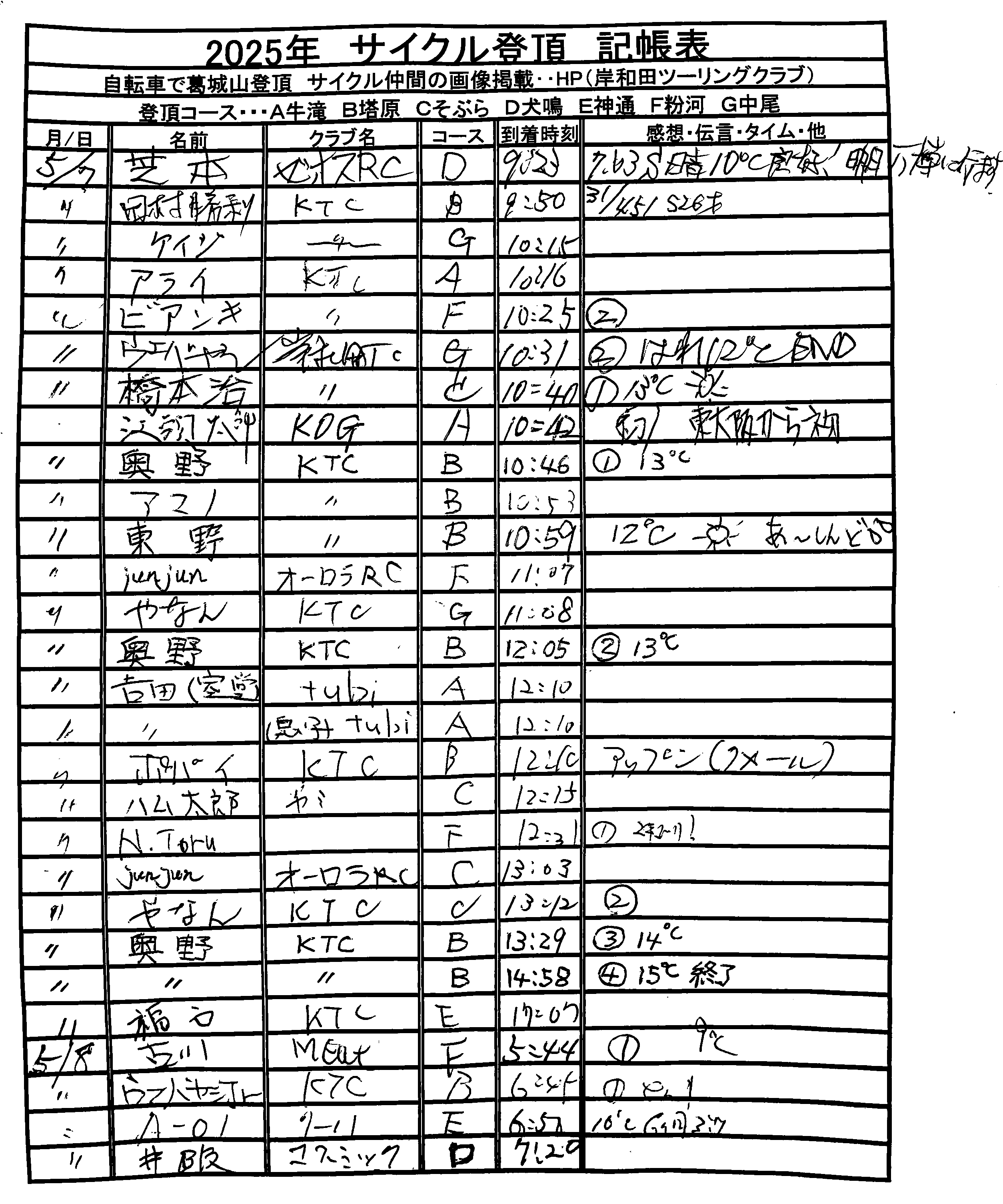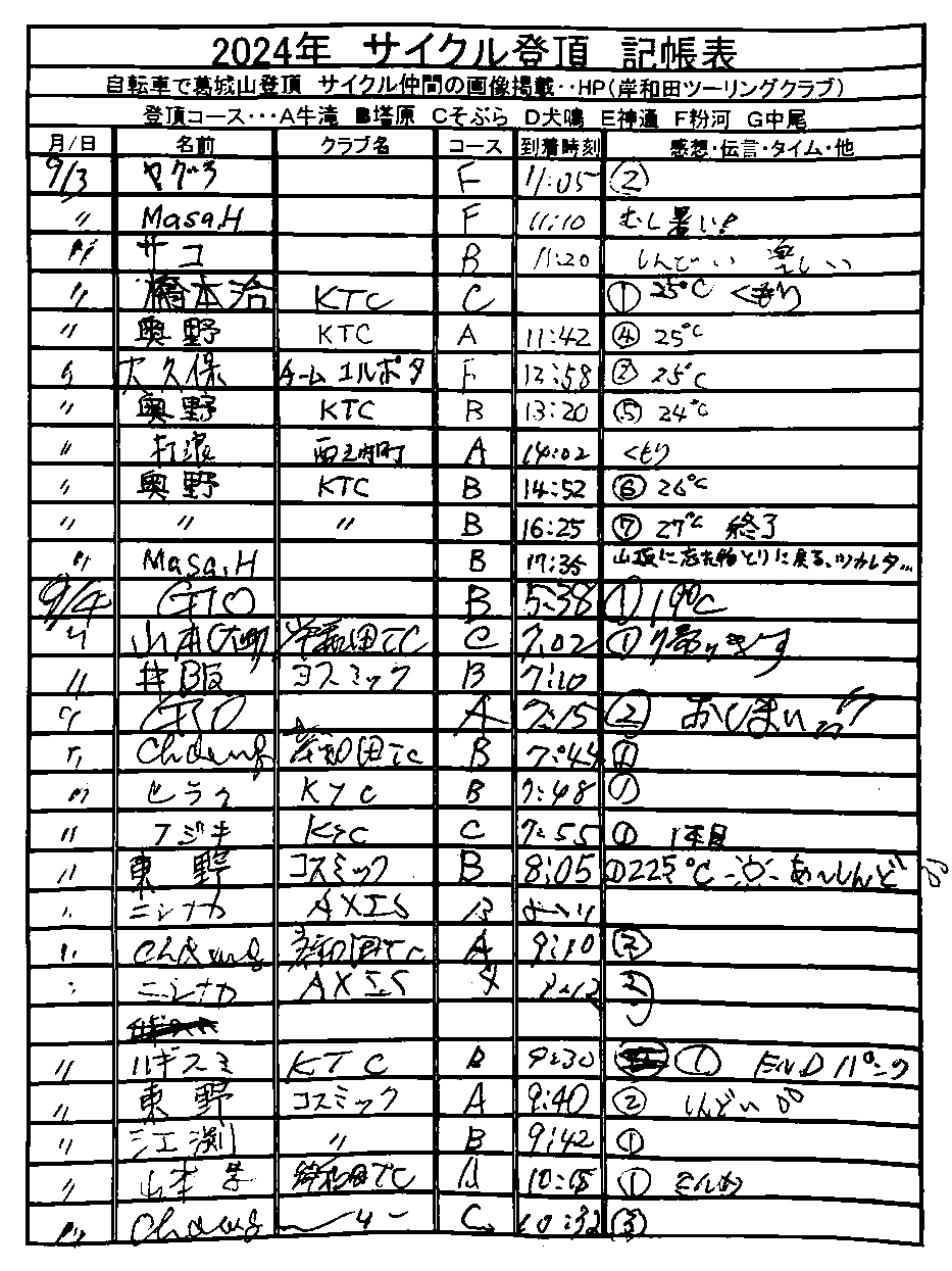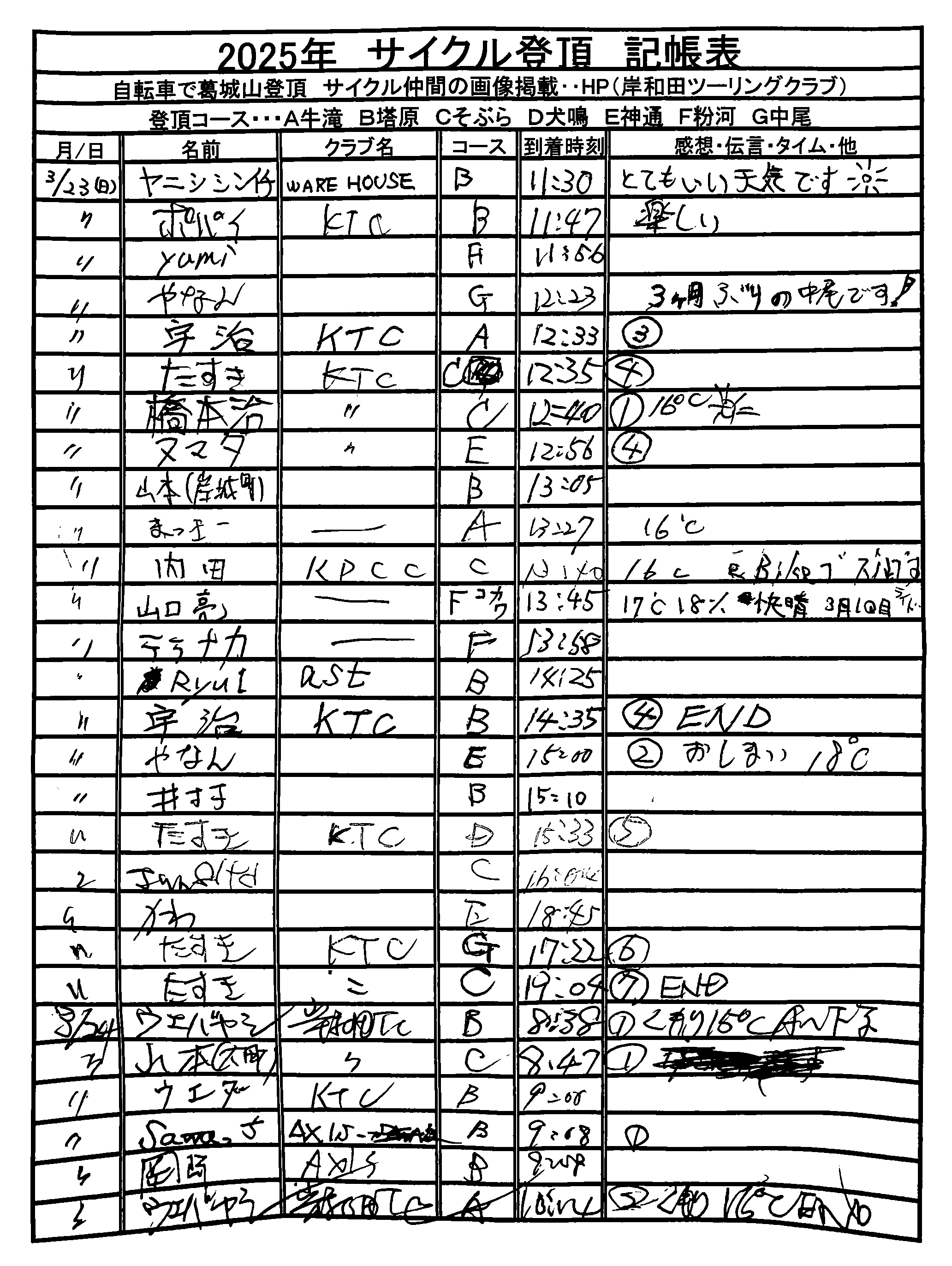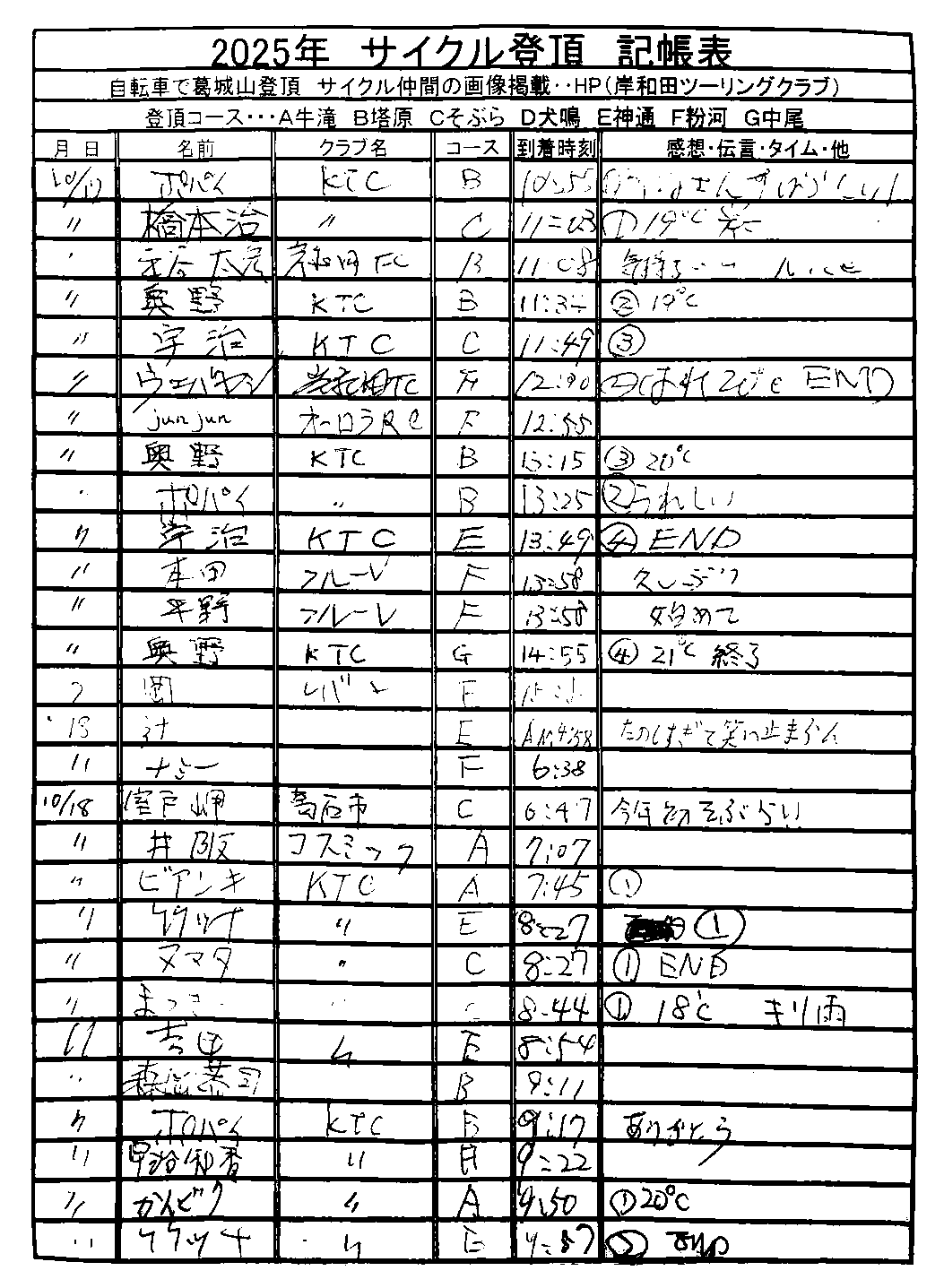 ■ 記帳表と回数表 ■ 岸和田ツーリングクラブの記帳表・回数表から引用させていただいてます。 2026年02月の記帳表 01/29〜02/01 01〜03 2026年01月の記帳表 12/31〜01/01 01〜04 04〜06 06〜08 08〜10 10〜13 13〜15 15〜17 17〜18 19〜21 21〜26 27〜29 29〜02/01 2025年12月の記帳表 11/30〜12/01 02〜03 03〜06 06〜07 07〜08 08〜10 10〜11 12〜13 13〜16 16〜18 18〜20 20〜20 20〜23 24〜28 28〜29 29〜31 31〜01/01 2025年11月の記帳表 10/30〜10/01 01〜02 02〜03 03〜04 05〜07 07〜08 08〜10 10〜11 11〜12 12〜14 14〜15 15〜16 16〜16 16〜17 17〜19 19〜21 19〜21 21〜22 22〜23 23〜24 24〜26 26〜28 28〜30 30〜30 30〜12/01 2025年10月の記帳表 09/30〜10/01 01〜02 02〜05 05〜06 06〜07 07〜08 08〜10 10〜11 11〜12 12〜13 13〜14 14〜15 15〜17 17〜18 18〜19 19〜21 21〜23 23〜25 25〜25 26〜27 27〜29 29〜30 30〜11/01 2025年09月の記帳表 08/31〜09/01 01〜02 02〜03 03〜06 06〜07 07〜07 07〜09 09〜10 10〜12 12〜13 13〜14 14〜15 15〜16 16〜18 18〜19 19〜20 20〜21 21〜22 22〜23 23〜24 24〜26 26〜27 27〜28 28〜28 28〜30 30〜10/01 2025年08月の記帳表 07/30〜08/01 01〜02 02〜03 03〜03 03〜03 03〜05 05〜06 06〜08 08〜08 09〜09 09〜12 12〜13 13〜14 14〜14 14〜15 15〜16 16〜17 17〜17 17〜18 18〜19 19〜20 20〜22 22〜23 23〜23 23〜24 24〜26 26〜27 27〜28 28〜29 29〜30 30〜31 31〜31 31〜09/01 2025年07月の記帳表 06/29〜07/01 01〜02 02〜03 03〜05 05〜05 05〜06 06〜06 06〜07 07〜09 09〜10 10〜12 12〜12 12〜13 13〜14 14〜16 16〜18 18〜19 19〜20 20〜20 20〜21 21〜21 22〜22 22〜23 24〜25 25〜26 26〜26 26〜27 27〜28 28〜29 29〜30 30〜08/01 2025年06月の記帳表 05/31〜06/01 01〜01 01〜02 02〜04 04〜05 05〜06 06〜07 07〜07 07〜08 08〜11 12〜13 13〜15 15〜16 16〜17 17〜18 18〜19 19〜20 20〜21 21〜22 22〜23 23〜25 26〜27 27〜28 28〜28 28〜29 28〜29 29〜29 29〜07/01 2025年05月の記帳表 04/29〜05/01 01〜01 01〜03 03〜03 03〜04 04〜04 04〜05 05〜05 05〜07 07〜08 08〜08 09〜10 10〜11 11〜11 11〜13 13〜14 14〜15 15〜16 16〜18 18〜18 18〜20 20〜21 21〜23 23〜23 23〜26 26〜27 27〜28 28〜30 30〜31 31〜06/01 2025年04月の記帳表 03/30〜04/01 01〜03 03〜04 04〜05 05〜06 06〜08 08〜09 09〜11 11〜12 12〜12 12〜14 14〜16 16〜17 17〜18 18〜19 19〜20 20〜20 20〜21 21〜23 24〜25 25〜26 26〜26 26〜26 26〜27 27〜27 27〜29 29〜29 29〜05/01 2025年03月の記帳表 02/28〜03/01 01〜06 06〜08 08〜09 09〜09 10〜12 12〜13 13〜14 14〜17 17〜21 21〜22 23〜23 23〜24 24〜25 25〜26 26〜29 29〜30 30〜30 30〜04/01 2025年02月の記帳表 01/30〜02/01 01〜04 04〜09 09〜13 13〜15 15〜15 15〜16 16〜18 19〜23 23〜28 28〜03/01 2025年01月の記帳表 12/31〜01/01 01〜02 02〜03 03〜04 04〜05 05〜05 07〜08 09〜13 13〜16 16〜18 18〜19 19〜21 21〜23 23〜25 25〜26 26〜26 26〜30 30〜02/01 2024年12月の記帳表 11/30〜12/01 01〜01 01〜02 02〜03 03〜04 05〜06 06〜07 07〜08 08〜09 09〜11 11〜12 12〜13 13〜15 15〜18 18〜20 20〜22 22〜23 23〜25 25〜27 27〜29 29〜31 31〜01/01 2024年11月の記帳表 01〜03 03〜04 04〜04 04〜05 05〜06 06〜08 08〜09 09〜10 10〜10 10〜12 12〜13 13〜14 14〜16 16〜17 17〜18 18〜19 19〜20 20〜21 22〜23 23〜24 24〜24 24〜25 26〜27 27〜30 30〜12/01 2024年10月の記帳表 09/29〜10/01 01〜02 02〜02 03〜05 05〜06 06〜06 06〜09 09〜10 10〜11 11〜12 12〜13 13〜13 13〜14 14〜15 15〜16 17〜17 17〜18 19〜20 20〜20 20〜22 22〜24 24〜25 25〜26 26〜27 27〜27 27〜29 29〜31 31〜31 2024年09月の記帳表 08/30〜09/01 01〜01 02〜03 03〜04 04〜05 05〜07 07〜07 07〜08 08〜09 09〜11 11〜12 12〜13 13〜14 14〜16 16〜16 16〜18 18〜20 20〜20 21〜21 21〜23 23〜23 23〜24 24〜25 25〜25 26〜27 27〜28 28〜28 28〜29 29〜29 29〜10/01 2024年08月の記帳表 07/31〜08/01 01〜02 02〜03 03〜03 03〜04 04〜04 04〜06 06〜07 07〜08 08〜10 10〜10 10〜11 11〜11 11〜12 12〜13 13〜14 14〜14 15〜15 15〜16 16〜17 17〜18 18〜18 18〜19 19〜21 21〜22 22〜23 23〜24 24〜25 25〜26 26〜27 28〜30 30〜09/01 2024年07月の記帳表 06/29〜07/03 03〜03 04〜05 05〜06 06〜06 06〜07 07〜07 07〜08 09〜09 09〜13 13〜14 14〜14 14〜15 15〜17 17〜18 18〜19 19〜20 20〜21 21〜21 21〜22 22〜24 24〜25 25〜26 26〜27 27〜28 28〜28 28〜29 29〜31 31〜08/01 2024年06月の記帳表 05/30〜06/01 01〜01 01〜02 02〜02 02〜03 03〜04 04〜05 05〜06 06〜07 07〜08 08〜08 08〜09 09〜11 11〜12 12〜12 12〜14 14〜15 15〜15 15〜16 16〜16 16〜17 17〜17 17〜19 19〜20 20〜22 22〜22 22〜25 25〜26 26〜29 29〜29 29〜29 29〜07/03 2024年05月の記帳表 04/29〜05/02 02〜02 02〜02 02〜03 03〜04 04〜04 04〜04 04〜05 05〜05 05〜07 07〜09 09〜10 10〜10 10〜11 11〜11 11〜11 11〜11 11〜12 12〜14 14〜15 15〜15 15〜17 17〜18 18〜18 18〜18 18〜20 20〜22 22〜22 22〜24 24〜25 25〜25 25〜26 26〜26 26〜26 26〜29 29〜30 30〜06/01 2024年04月の記帳表 03/31〜04/02 02〜05 05〜06 06〜06 06〜07 07〜07 07〜10 10〜11 11〜12 12〜13 13〜13 13〜14 14〜14 14〜16 16〜17 17〜17 17〜18 18〜19 19〜20 20〜20 21〜24 24〜25 25〜27 27〜28 28〜28 28〜29 29〜29 29〜05/02 2024年03月の記帳表 02/28〜03/01 01〜03 03〜03 03〜04 04〜07 07〜09 09〜10 10〜13 13〜14 14〜16 16〜16 16〜17 17〜18 19〜21 21〜22 22〜27 27〜28 28〜30 30〜30 31〜31 31〜 2024年02月の記帳表 01/31〜02/03 03〜03 03〜06 06〜07 08〜09 09〜10 10〜11 11〜11 11〜12 13〜14 14〜14 14〜16 16〜17 17〜18 18〜18 18〜20 20〜24 24〜26 26〜28 28〜03/01 2024年01月の記帳表 01〜02 02〜03 03〜05 05〜06 06〜07 07〜07 08〜09 09〜12 12〜13 14〜14 14〜17 17〜20 21〜23 23〜27 28〜29 29〜31 31〜02/03 2023