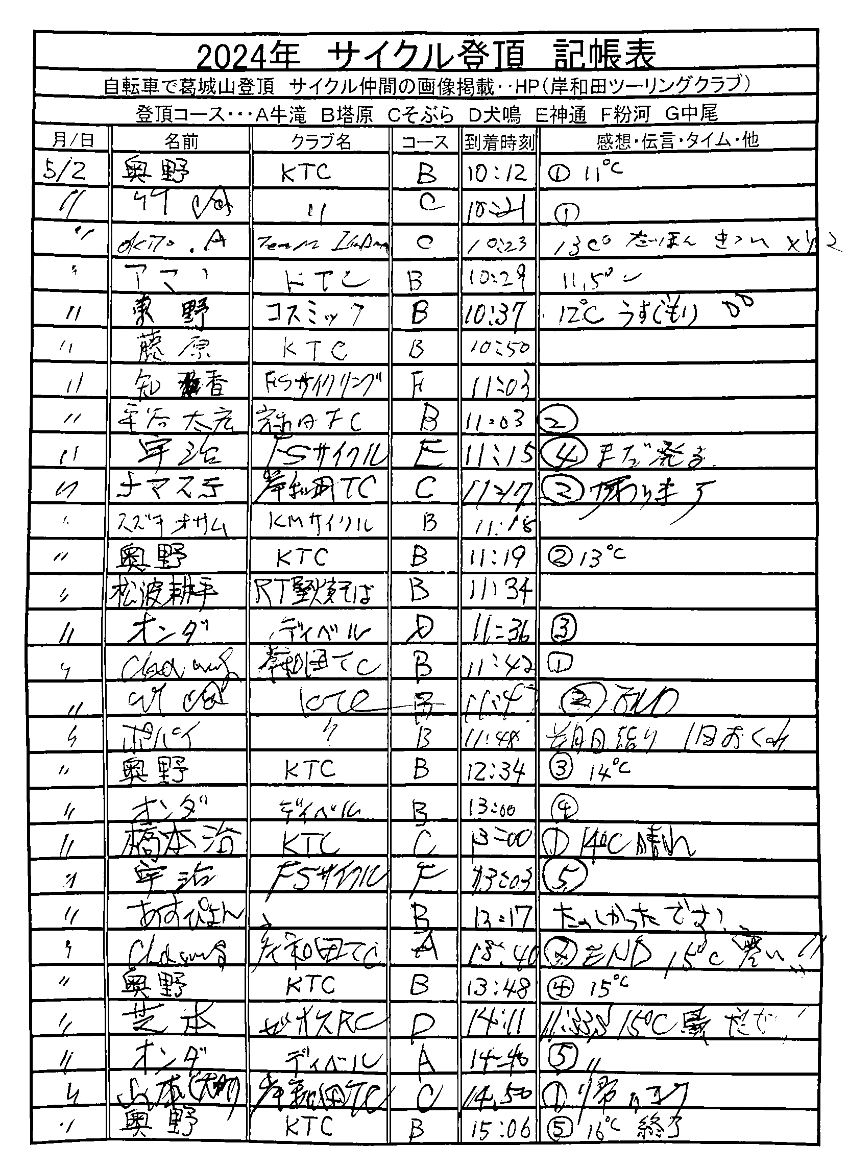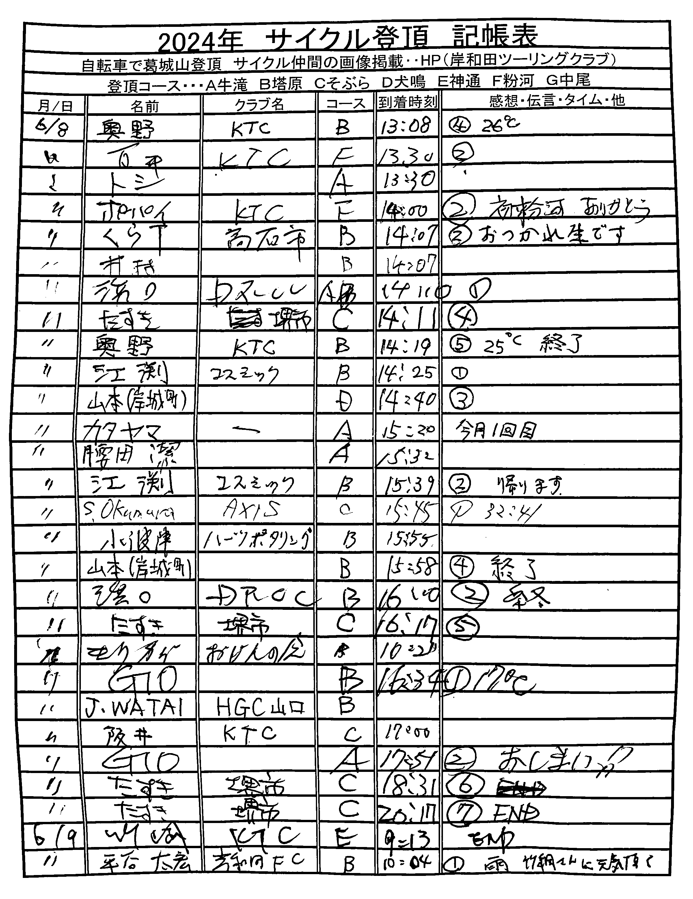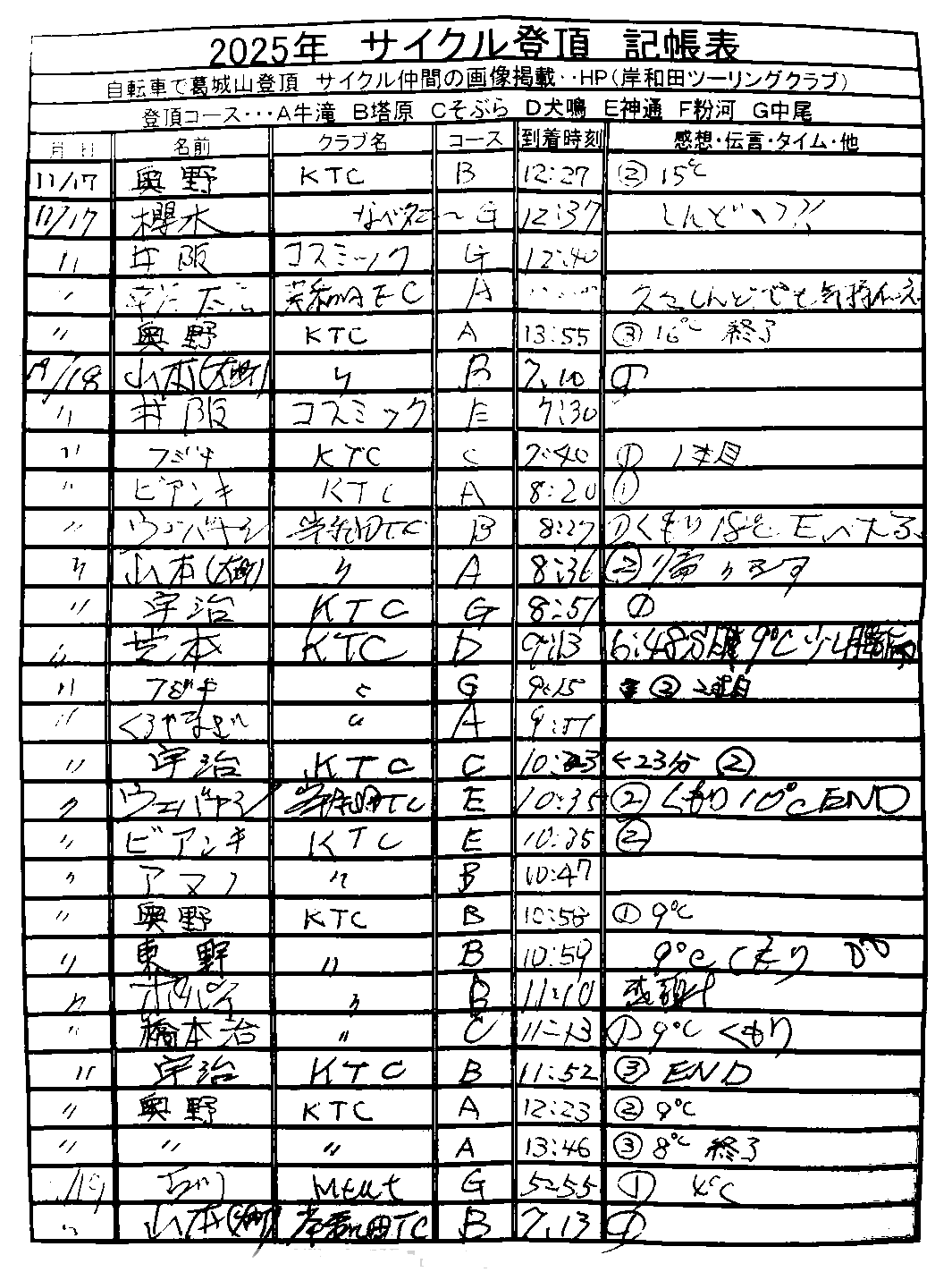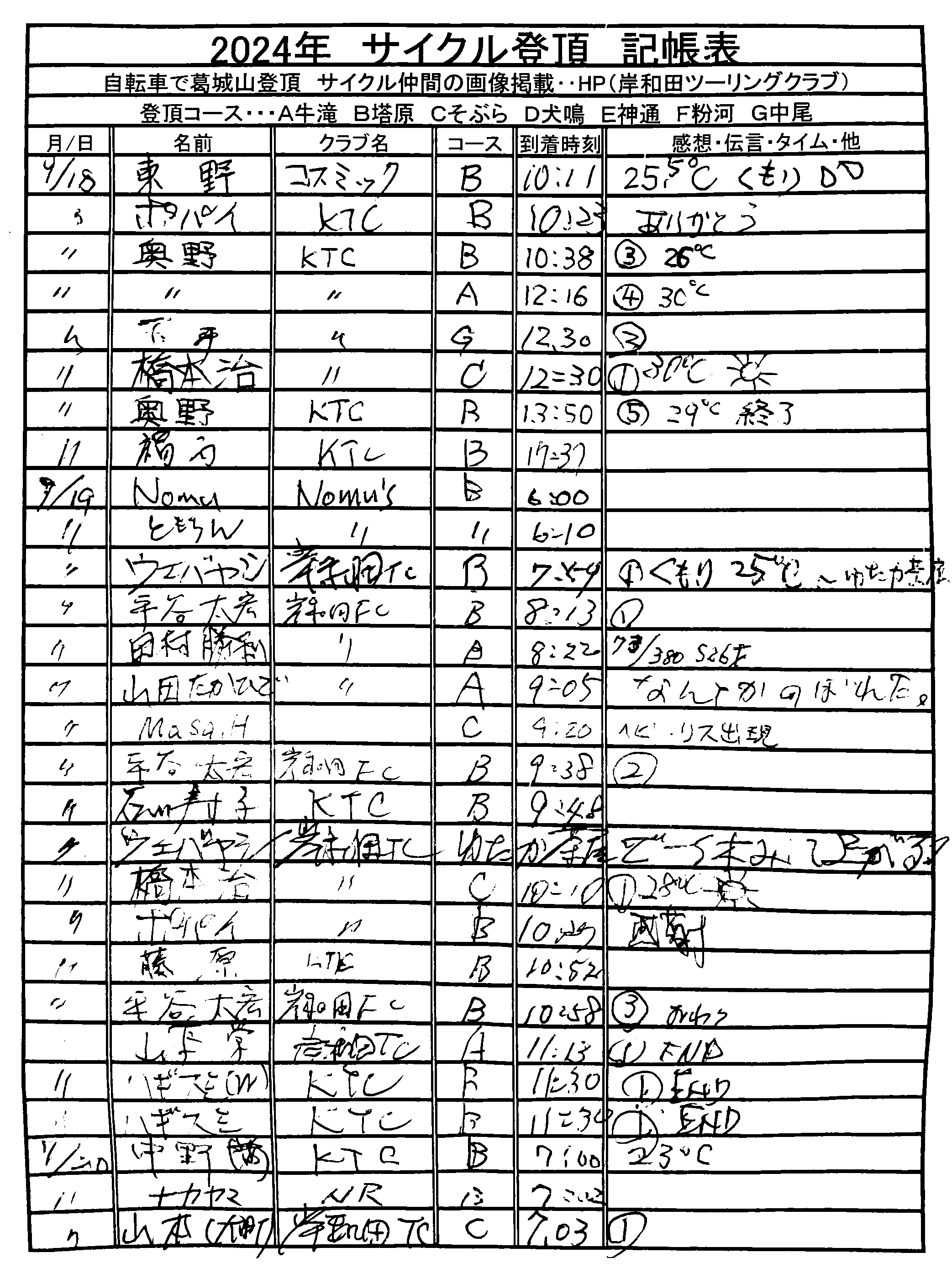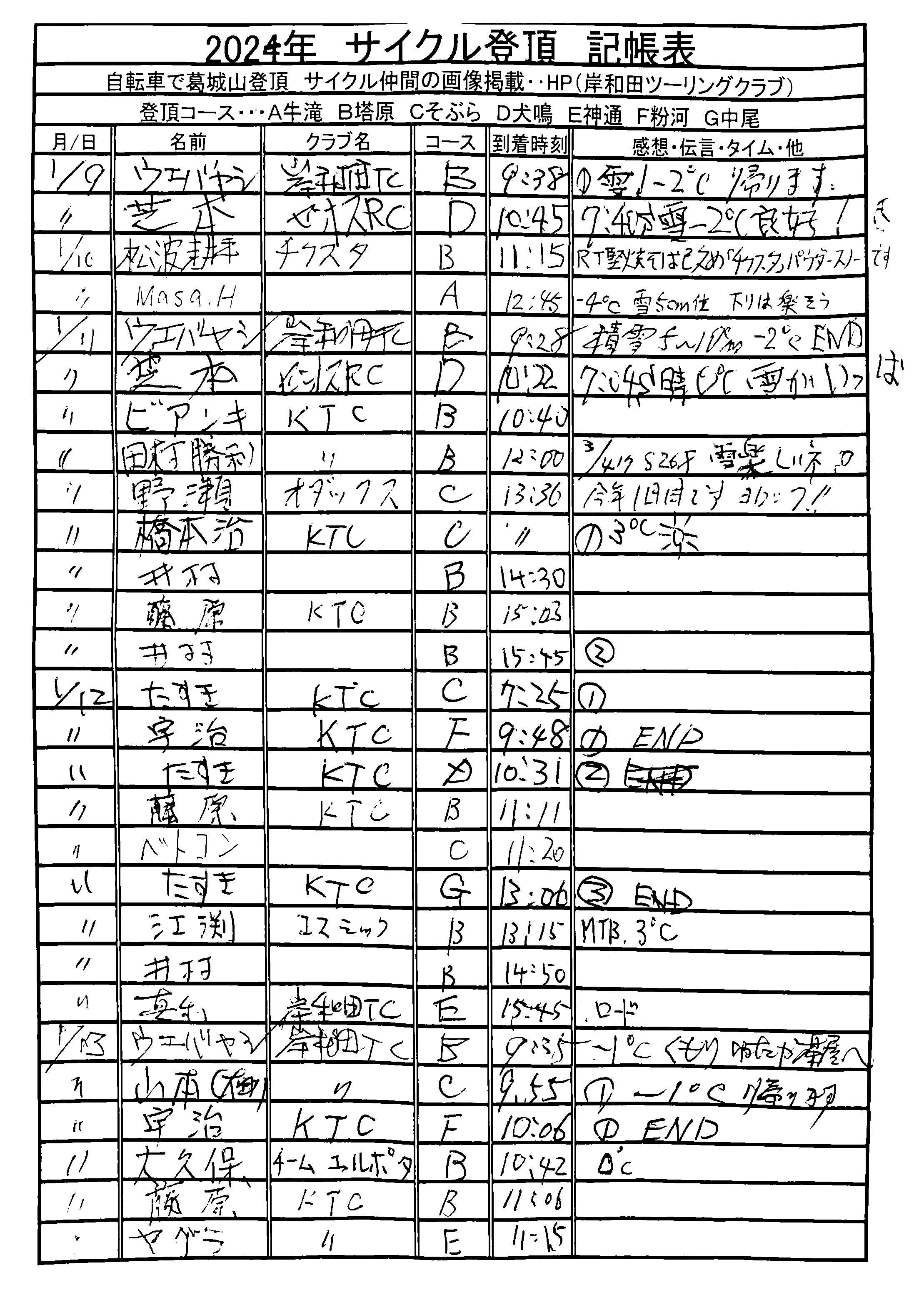 ■ 記帳表と回数表 ■ 岸和田ツーリングクラブの記帳表・回数表から引用させていただいてます。 2026年02月の記帳表 01/29〜02/01 01〜03 2026年01月の記帳表 12/31〜01/01 01〜04 04〜06 06〜08 08〜10 10〜13 13〜15 15〜17 17〜18 19〜21 21〜26 27〜29 29〜02/01 2025年12月の記帳表 11/30〜12/01 02〜03 03〜06 06〜07 07〜08 08〜10 10〜11 12〜13 13〜16 16〜18 18〜20 20〜20 20〜23 24〜28 28〜29 29〜31 31〜01/01 2025年11月の記帳表 10/30〜10/01 01〜02 02〜03 03〜04 05〜07 07〜08 08〜10 10〜11 11〜12 12〜14 14〜15 15〜16 16〜16 16〜17 17〜19 19〜21 19〜21 21〜22 22〜23 23〜24 24〜26 26〜28 28〜30 30〜30 30〜12/01 2025年10月の記帳表 09/30〜10/01 01〜02 02〜05 05〜06 06〜07 07〜08 08〜10 10〜11 11〜12 12〜13 13〜14 14〜15 15〜17 17〜18 18〜19 19〜21 21〜23 23〜25 25〜25 26〜27 27〜29 29〜30 30〜11/01 2025年09月の記帳表 08/31〜09/01 01〜02 02〜03 03〜06 06〜07 07〜07 07〜09 09〜10 10〜12 12〜13 13〜14 14〜15 15〜16 16〜18 18〜19 19〜20 20〜21 21〜22 22〜23 23〜24 24〜26 26〜27 27〜28 28〜28 28〜30 30〜10/01 2025年08月の記帳表 07/30〜08/01 01〜02 02〜03 03〜03 03〜03 03〜05 05〜06 06〜08 08〜08 09〜09 09〜12 12〜13 13〜14 14〜14 14〜15 15〜16 16〜17 17〜17 17〜18 18〜19 19〜20 20〜22 22〜23 23〜23 23〜24 24〜26 26〜27 27〜28 28〜29 29〜30 30〜31 31〜31 31〜09/01 2025年07月の記帳表 06/29〜07/01 01〜02 02〜03 03〜05 05〜05 05〜06 06〜06 06〜07 07〜09 09〜10 10〜12 12〜12 12〜13 13〜14 14〜16 16〜18 18〜19 19〜20 20〜20 20〜21 21〜21 22〜22 22〜23 24〜25 25〜26 26〜26 26〜27 27〜28 28〜29 29〜30 30〜08/01 2025年06月の記帳表 05/31〜06/01 01〜01 01〜02 02〜04 04〜05 05〜06 06〜07 07〜07 07〜08 08〜11 12〜13 13〜15 15〜16 16〜17 17〜18 18〜19 19〜20 20〜21 21〜22 22〜23 23〜25 26〜27 27〜28 28〜28 28〜29 28〜29 29〜29 29〜07/01 2025年05月の記帳表 04/29〜05/01 01〜01 01〜03 03〜03 03〜04 04〜04 04〜05 05〜05 05〜07 07〜08 08〜08 09〜10 10〜11 11〜11 11〜13 13〜14 14〜15 15〜16 16〜18 18〜18 18〜20 20〜21 21〜23 23〜23 23〜26 26〜27 27〜28 28〜30 30〜31 31〜06/01 2025年04月の記帳表 03/30〜04/01 01〜03 03〜04 04〜05 05〜06 06〜08 08〜09 09〜11 11〜12 12〜12 12〜14 14〜16 16〜17 17〜18 18〜19 19〜20 20〜20 20〜21 21〜23 24〜25 25〜26 26〜26 26〜26 26〜27 27〜27 27〜29 29〜29 29〜05/01 2025年03月の記帳表 02/28〜03/01 01〜06 06〜08 08〜09 09〜09 10〜12 12〜13 13〜14 14〜17 17〜21 21〜22 23〜23 23〜24 24〜25 25〜26 26〜29 29〜30 30〜30 30〜04/01 2025年02月の記帳表 01/30〜02/01 01〜04 04〜09 09〜13 13〜15 15〜15 15〜16 16〜18 19〜23 23〜28 28〜03/01 2025年01月の記帳表 12/31〜01/01 01〜02 02〜03 03〜04 04〜05 05〜05 07〜08 09〜13 13〜16 16〜18 18〜19 19〜21 21〜23 23〜25 25〜26 26〜26 26〜30 30〜02/01 2024年12月の記帳表 11/30〜12/01 01〜01 01〜02 02〜03 03〜04 05〜06 06〜07 07〜08 08〜09 09〜11 11〜12 12〜13 13〜15 15〜18 18〜20 20〜22 22〜23 23〜25 25〜27 27〜29 29〜31 31〜01/01 2024年11月の記帳表 01〜03 03〜04 04〜04 04〜05 05〜06 06〜08 08〜09 09〜10 10〜10 10〜12 12〜13 13〜14 14〜16 16〜17 17〜18 18〜19 19〜20 20〜21 22〜23 23〜24 24〜24 24〜25 26〜27 27〜30 30〜12/01 2024年10月の記帳表 09/29〜10/01 01〜02 02〜02 03〜05 05〜06 06〜06 06〜09 09〜10 10〜11 11〜12 12〜13 13〜13 13〜14 14〜15 15〜16 17〜17 17〜18 19〜20 20〜20 20〜22 22〜24 24〜25 25〜26 26〜27 27〜27 27〜29 29〜31 31〜31 2024年09月の記帳表 08/30〜09/01 01〜01 02〜03 03〜04 04〜05 05〜07 07〜07 07〜08 08〜09 09〜11 11〜12 12〜13 13〜14 14〜16 16〜16 16〜18 18〜20 20〜20 21〜21 21〜23 23〜23 23〜24 24〜25 25〜25 26〜27 27〜28 28〜28 28〜29 29〜29 29〜10/01 2024年08月の記帳表 07/31〜08/01 01〜02 02〜03 03〜03 03〜04 04〜04 04〜06 06〜07 07〜08 08〜10 10〜10 10〜11 11〜11 11〜12 12〜13 13〜14 14〜14 15〜15 15〜16 16〜17 17〜18 18〜18 18〜19 19〜21 21〜22 22〜23 23〜24 24〜25 25〜26 26〜27 28〜30 30〜09/01 2024年07月の記帳表 06/29〜07/03 03〜03 04〜05 05〜06 06〜06 06〜07 07〜07 07〜08 09〜09 09〜13 13〜14 14〜14 14〜15 15〜17 17〜18 18〜19 19〜20 20〜21 21〜21 21〜22 22〜24 24〜25 25〜26 26〜27 27〜28 28〜28 28〜29 29〜31 31〜08/01 2024年06月の記帳表 05/30〜06/01 01〜01 01〜02 02〜02 02〜03 03〜04 04〜05 05〜06 06〜07 07〜08 08〜08 08〜09 09〜11 11〜12 12〜12 12〜14 14〜15 15〜15 15〜16 16〜16 16〜17 17〜17 17〜19 19〜20 20〜22 22〜22 22〜25 25〜26 26〜29 29〜29 29〜29 29〜07/03 2024年05月の記帳表 04/29〜05/02 02〜02 02〜02 02〜03 03〜04 04〜04 04〜04 04〜05 05〜05 05〜07 07〜09 09〜10 10〜10 10〜11 11〜11 11〜11 11〜11 11〜12 12〜14 14〜15 15〜15 15〜17 17〜18 18〜18 18〜18 18〜20 20〜22 22〜22 22〜24 24〜25 25〜25 25〜26 26〜26 26〜26 26〜29 29〜30 30〜06/01 2024年04月の記帳表 03/31〜04/02 02〜05 05〜06 06〜06 06〜07 07〜07 07〜10 10〜11 11〜12 12〜13 13〜13 13〜14 14〜14 14〜16 16〜17 17〜17 17〜18 18〜19 19〜20 20〜20 21〜24 24〜25 25〜27 27〜28 28〜28 28〜29 29〜29 29〜05/02 2024年03月の記帳表 02/28〜03/01 01〜03 03〜03 03〜04 04〜07 07〜09 09〜10 10〜13 13〜14 14〜16 16〜16 16〜17 17〜18 19〜21 21〜22 22〜27 27〜28 28〜30 30〜30 31〜31 31〜 2024年02月の記帳表 01/31〜02/03 03〜03 03〜06 06〜07 08〜09 09〜10 10〜11 11〜11 11〜12 13〜14 14〜14 14〜16 16〜17 17〜18 18〜18 18〜20 20〜24 24〜26 26〜28 28〜03/01 2024年01月の記帳表 01〜02 02〜03 03〜05 05〜06 06〜07 07〜07 08〜09 09〜12 12〜13 14〜14 14〜17 17〜20 21〜23 23〜27 28〜29 29〜31 31〜02/03 2023