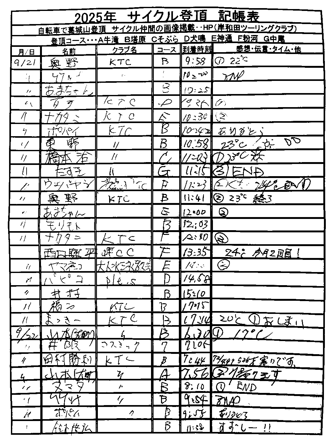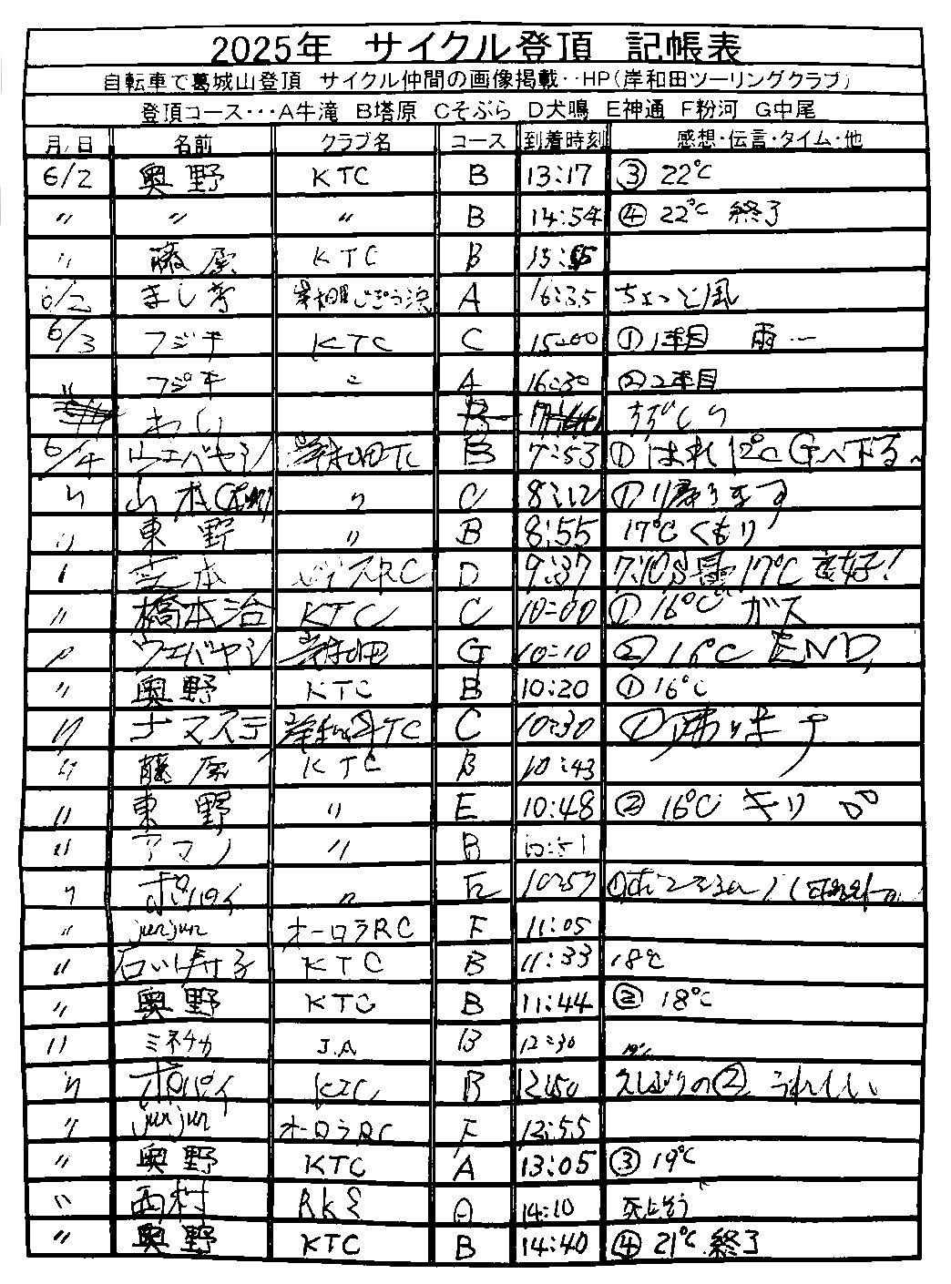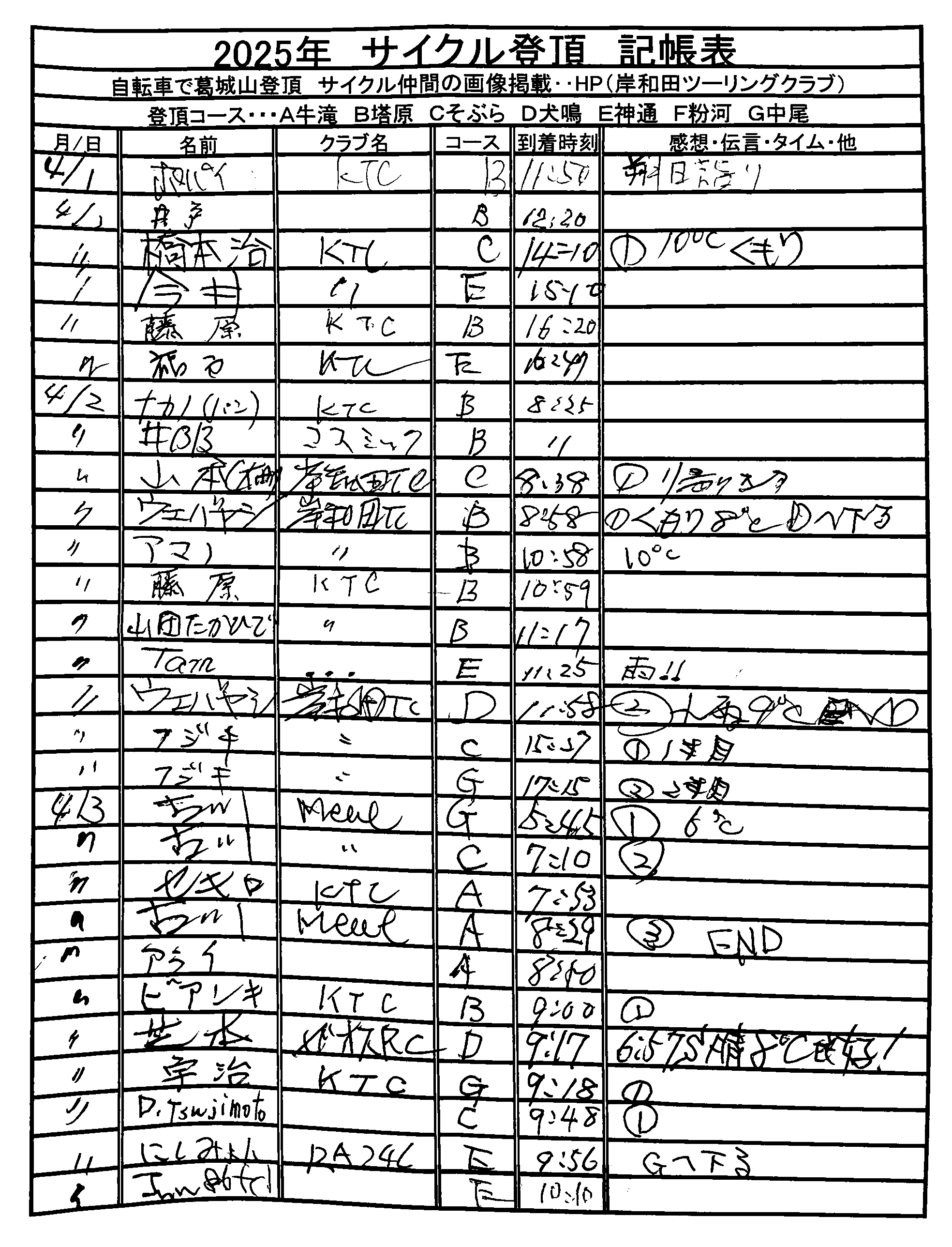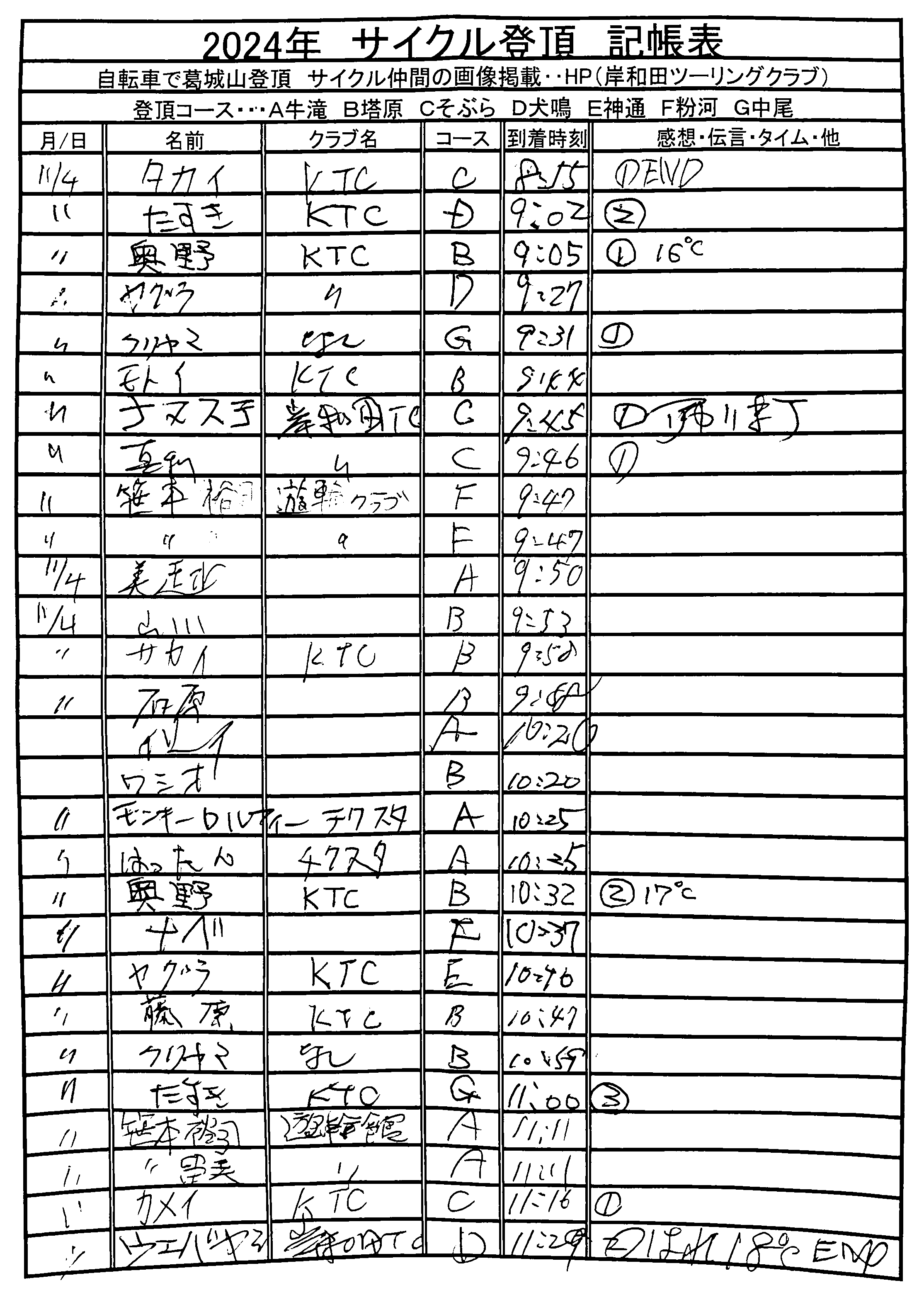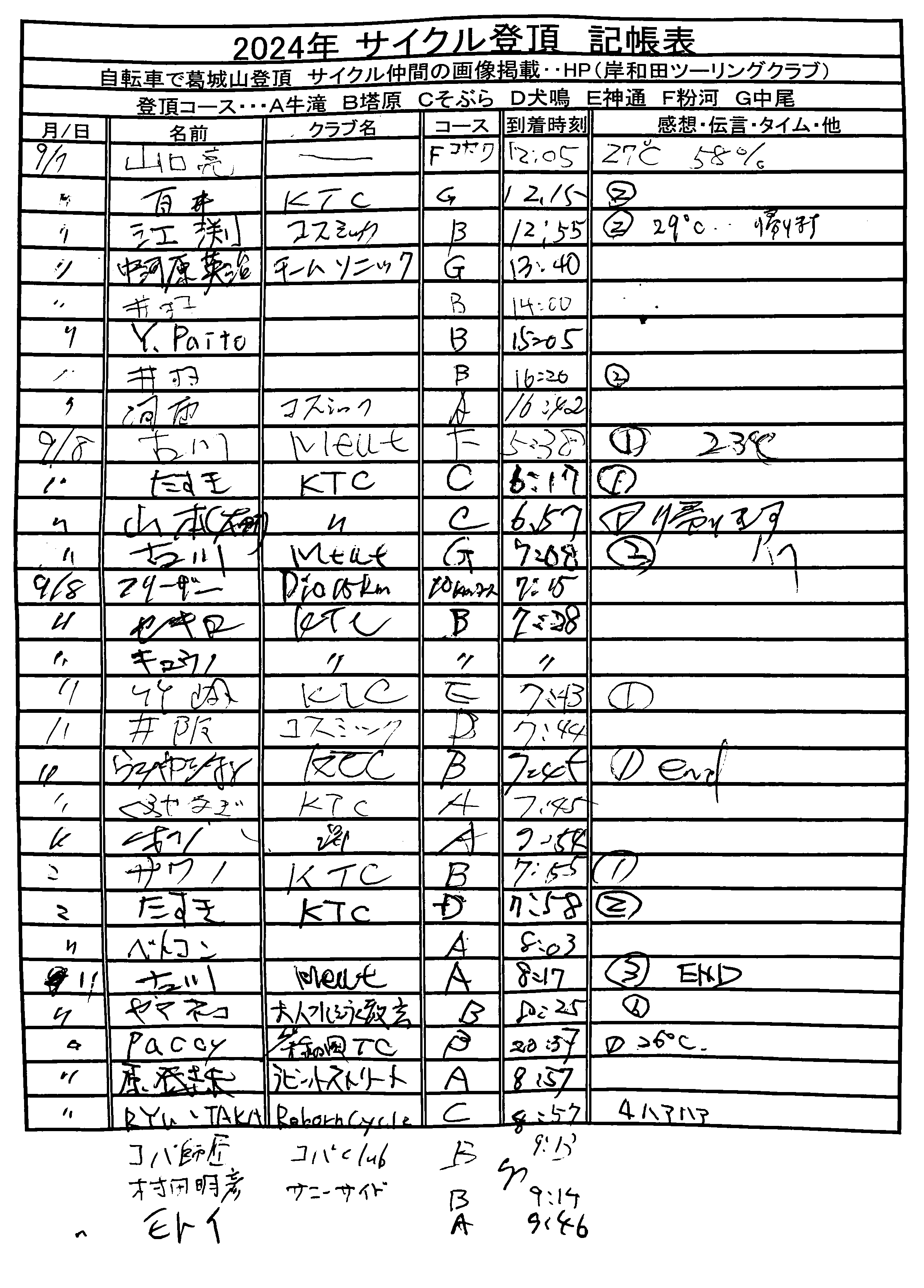 ■ 記帳表と回数表 ■ 岸和田ツーリングクラブの記帳表・回数表から引用させていただいてます。 2026年02月の記帳表 01/29〜02/01 01〜03 2026年01月の記帳表 12/31〜01/01 01〜04 04〜06 06〜08 08〜10 10〜13 13〜15 15〜17 17〜18 19〜21 21〜26 27〜29 29〜02/01 2025年12月の記帳表 11/30〜12/01 02〜03 03〜06 06〜07 07〜08 08〜10 10〜11 12〜13 13〜16 16〜18 18〜20 20〜20 20〜23 24〜28 28〜29 29〜31 31〜01/01 2025年11月の記帳表 10/30〜10/01 01〜02 02〜03 03〜04 05〜07 07〜08 08〜10 10〜11 11〜12 12〜14 14〜15 15〜16 16〜16 16〜17 17〜19 19〜21 19〜21 21〜22 22〜23 23〜24 24〜26 26〜28 28〜30 30〜30 30〜12/01 2025年10月の記帳表 09/30〜10/01 01〜02 02〜05 05〜06 06〜07 07〜08 08〜10 10〜11 11〜12 12〜13 13〜14 14〜15 15〜17 17〜18 18〜19 19〜21 21〜23 23〜25 25〜25 26〜27 27〜29 29〜30 30〜11/01 2025年09月の記帳表 08/31〜09/01 01〜02 02〜03 03〜06 06〜07 07〜07 07〜09 09〜10 10〜12 12〜13 13〜14 14〜15 15〜16 16〜18 18〜19 19〜20 20〜21 21〜22 22〜23 23〜24 24〜26 26〜27 27〜28 28〜28 28〜30 30〜10/01 2025年08月の記帳表 07/30〜08/01 01〜02 02〜03 03〜03 03〜03 03〜05 05〜06 06〜08 08〜08 09〜09 09〜12 12〜13 13〜14 14〜14 14〜15 15〜16 16〜17 17〜17 17〜18 18〜19 19〜20 20〜22 22〜23 23〜23 23〜24 24〜26 26〜27 27〜28 28〜29 29〜30 30〜31 31〜31 31〜09/01 2025年07月の記帳表 06/29〜07/01 01〜02 02〜03 03〜05 05〜05 05〜06 06〜06 06〜07 07〜09 09〜10 10〜12 12〜12 12〜13 13〜14 14〜16 16〜18 18〜19 19〜20 20〜20 20〜21 21〜21 22〜22 22〜23 24〜25 25〜26 26〜26 26〜27 27〜28 28〜29 29〜30 30〜08/01 2025年06月の記帳表 05/31〜06/01 01〜01 01〜02 02〜04 04〜05 05〜06 06〜07 07〜07 07〜08 08〜11 12〜13 13〜15 15〜16 16〜17 17〜18 18〜19 19〜20 20〜21 21〜22 22〜23 23〜25 26〜27 27〜28 28〜28 28〜29 28〜29 29〜29 29〜07/01 2025年05月の記帳表 04/29〜05/01 01〜01 01〜03 03〜03 03〜04 04〜04 04〜05 05〜05 05〜07 07〜08 08〜08 09〜10 10〜11 11〜11 11〜13 13〜14 14〜15 15〜16 16〜18 18〜18 18〜20 20〜21 21〜23 23〜23 23〜26 26〜27 27〜28 28〜30 30〜31 31〜06/01 2025年04月の記帳表 03/30〜04/01 01〜03 03〜04 04〜05 05〜06 06〜08 08〜09 09〜11 11〜12 12〜12 12〜14 14〜16 16〜17 17〜18 18〜19 19〜20 20〜20 20〜21 21〜23 24〜25 25〜26 26〜26 26〜26 26〜27 27〜27 27〜29 29〜29 29〜05/01 2025年03月の記帳表 02/28〜03/01 01〜06 06〜08 08〜09 09〜09 10〜12 12〜13 13〜14 14〜17 17〜21 21〜22 23〜23 23〜24 24〜25 25〜26 26〜29 29〜30 30〜30 30〜04/01 2025年02月の記帳表 01/30〜02/01 01〜04 04〜09 09〜13 13〜15 15〜15 15〜16 16〜18 19〜23 23〜28 28〜03/01 2025年01月の記帳表 12/31〜01/01 01〜02 02〜03 03〜04 04〜05 05〜05 07〜08 09〜13 13〜16 16〜18 18〜19 19〜21 21〜23 23〜25 25〜26 26〜26 26〜30 30〜02/01 2024年12月の記帳表 11/30〜12/01 01〜01 01〜02 02〜03 03〜04 05〜06 06〜07 07〜08 08〜09 09〜11 11〜12 12〜13 13〜15 15〜18 18〜20 20〜22 22〜23 23〜25 25〜27 27〜29 29〜31 31〜01/01 2024年11月の記帳表 01〜03 03〜04 04〜04 04〜05 05〜06 06〜08 08〜09 09〜10 10〜10 10〜12 12〜13 13〜14 14〜16 16〜17 17〜18 18〜19 19〜20 20〜21 22〜23 23〜24 24〜24 24〜25 26〜27 27〜30 30〜12/01 2024年10月の記帳表 09/29〜10/01 01〜02 02〜02 03〜05 05〜06 06〜06 06〜09 09〜10 10〜11 11〜12 12〜13 13〜13 13〜14 14〜15 15〜16 17〜17 17〜18 19〜20 20〜20 20〜22 22〜24 24〜25 25〜26 26〜27 27〜27 27〜29 29〜31 31〜31 2024年09月の記帳表 08/30〜09/01 01〜01 02〜03 03〜04 04〜05 05〜07 07〜07 07〜08 08〜09 09〜11 11〜12 12〜13 13〜14 14〜16 16〜16 16〜18 18〜20 20〜20 21〜21 21〜23 23〜23 23〜24 24〜25 25〜25 26〜27 27〜28 28〜28 28〜29 29〜29 29〜10/01 2024年08月の記帳表 07/31〜08/01 01〜02 02〜03 03〜03 03〜04 04〜04 04〜06 06〜07 07〜08 08〜10 10〜10 10〜11 11〜11 11〜12 12〜13 13〜14 14〜14 15〜15 15〜16 16〜17 17〜18 18〜18 18〜19 19〜21 21〜22 22〜23 23〜24 24〜25 25〜26 26〜27 28〜30 30〜09/01 2024年07月の記帳表 06/29〜07/03 03〜03 04〜05 05〜06 06〜06 06〜07 07〜07 07〜08 09〜09 09〜13 13〜14 14〜14 14〜15 15〜17 17〜18 18〜19 19〜20 20〜21 21〜21 21〜22 22〜24 24〜25 25〜26 26〜27 27〜28 28〜28 28〜29 29〜31 31〜08/01 2024年06月の記帳表 05/30〜06/01 01〜01 01〜02 02〜02 02〜03 03〜04 04〜05 05〜06 06〜07 07〜08 08〜08 08〜09 09〜11 11〜12 12〜12 12〜14 14〜15 15〜15 15〜16 16〜16 16〜17 17〜17 17〜19 19〜20 20〜22 22〜22 22〜25 25〜26 26〜29 29〜29 29〜29 29〜07/03 2024年05月の記帳表 04/29〜05/02 02〜02 02〜02 02〜03 03〜04 04〜04 04〜04 04〜05 05〜05 05〜07 07〜09 09〜10 10〜10 10〜11 11〜11 11〜11 11〜11 11〜12 12〜14 14〜15 15〜15 15〜17 17〜18 18〜18 18〜18 18〜20 20〜22 22〜22 22〜24 24〜25 25〜25 25〜26 26〜26 26〜26 26〜29 29〜30 30〜06/01 2024年04月の記帳表 03/31〜04/02 02〜05 05〜06 06〜06 06〜07 07〜07 07〜10 10〜11 11〜12 12〜13 13〜13 13〜14 14〜14 14〜16 16〜17 17〜17 17〜18 18〜19 19〜20 20〜20 21〜24 24〜25 25〜27 27〜28 28〜28 28〜29 29〜29 29〜05/02 2024年03月の記帳表 02/28〜03/01 01〜03 03〜03 03〜04 04〜07 07〜09 09〜10 10〜13 13〜14 14〜16 16〜16 16〜17 17〜18 19〜21 21〜22 22〜27 27〜28 28〜30 30〜30 31〜31 31〜 2024年02月の記帳表 01/31〜02/03 03〜03 03〜06 06〜07 08〜09 09〜10 10〜11 11〜11 11〜12 13〜14 14〜14 14〜16 16〜17 17〜18 18〜18 18〜20 20〜24 24〜26 26〜28 28〜03/01 2024年01月の記帳表 01〜02 02〜03 03〜05 05〜06 06〜07 07〜07 08〜09 09〜12 12〜13 14〜14 14〜17 17〜20 21〜23 23〜27 28〜29 29〜31 31〜02/03 2023