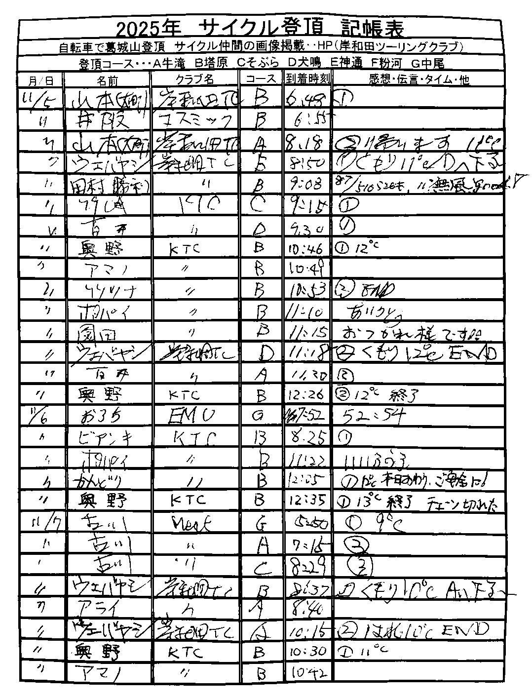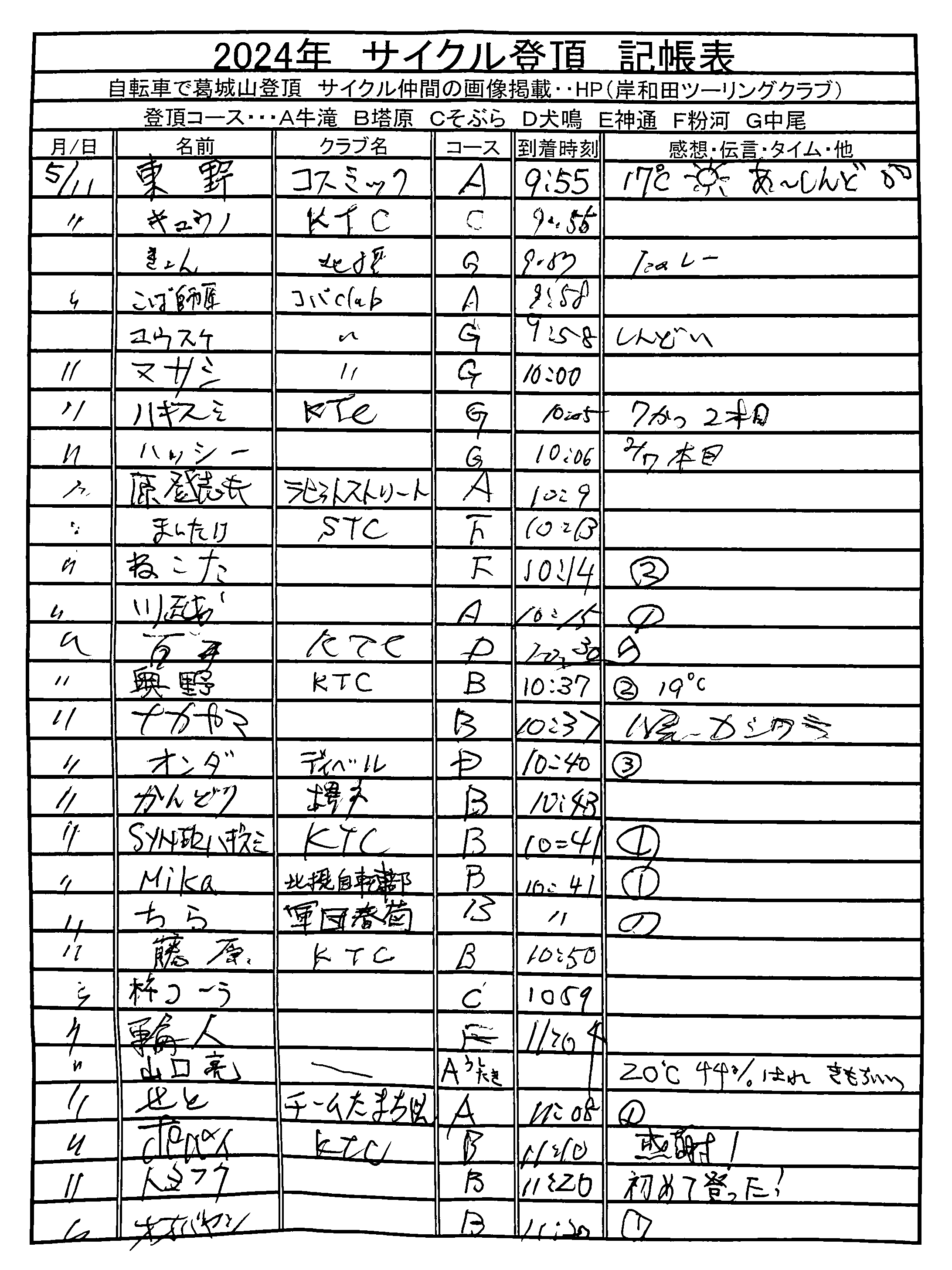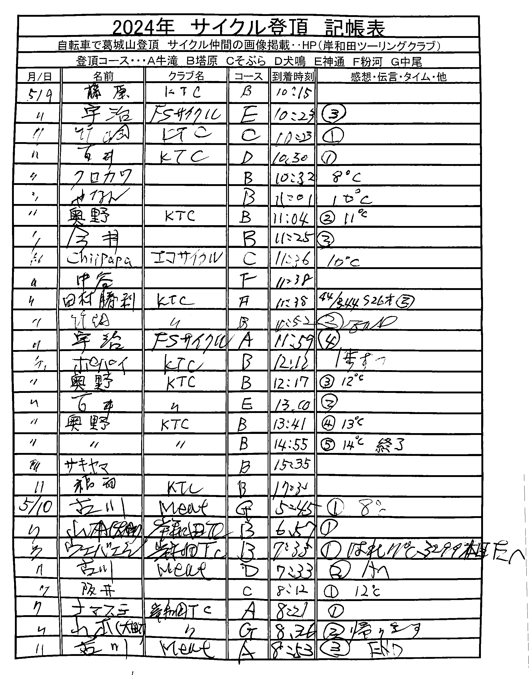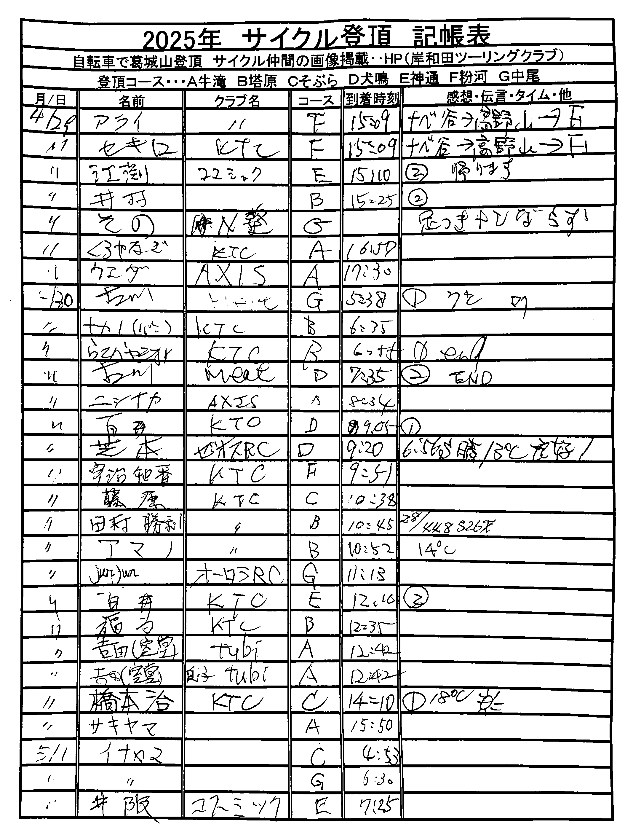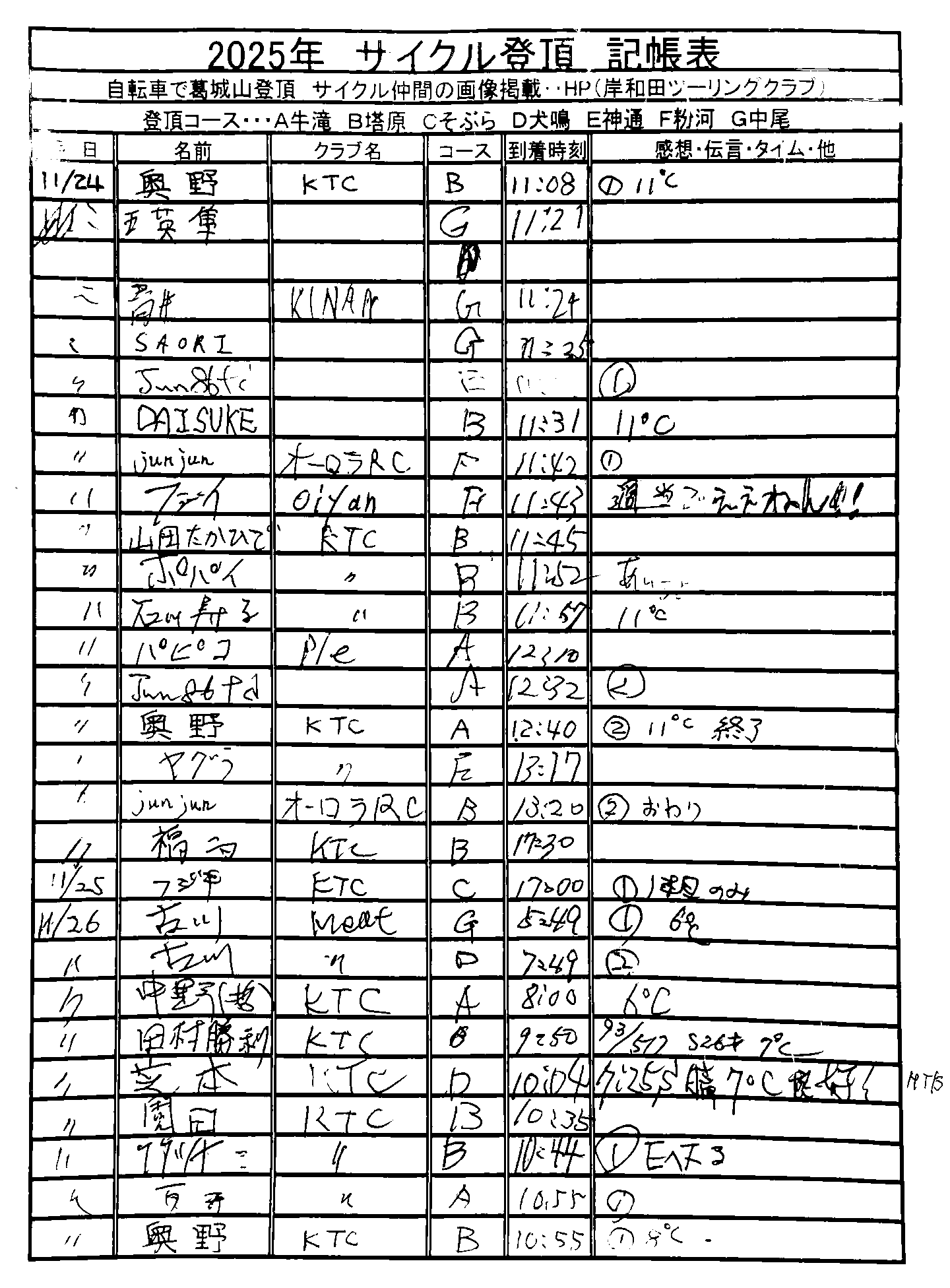 ■ 記帳表と回数表 ■ 岸和田ツーリングクラブの記帳表・回数表から引用させていただいてます。 2026年02月の記帳表 01/29〜02/01 01〜03 2026年01月の記帳表 12/31〜01/01 01〜04 04〜06 06〜08 08〜10 10〜13 13〜15 15〜17 17〜18 19〜21 21〜26 27〜29 29〜02/01 2025年12月の記帳表 11/30〜12/01 02〜03 03〜06 06〜07 07〜08 08〜10 10〜11 12〜13 13〜16 16〜18 18〜20 20〜20 20〜23 24〜28 28〜29 29〜31 31〜01/01 2025年11月の記帳表 10/30〜10/01 01〜02 02〜03 03〜04 05〜07 07〜08 08〜10 10〜11 11〜12 12〜14 14〜15 15〜16 16〜16 16〜17 17〜19 19〜21 19〜21 21〜22 22〜23 23〜24 24〜26 26〜28 28〜30 30〜30 30〜12/01 2025年10月の記帳表 09/30〜10/01 01〜02 02〜05 05〜06 06〜07 07〜08 08〜10 10〜11 11〜12 12〜13 13〜14 14〜15 15〜17 17〜18 18〜19 19〜21 21〜23 23〜25 25〜25 26〜27 27〜29 29〜30 30〜11/01 2025年09月の記帳表 08/31〜09/01 01〜02 02〜03 03〜06 06〜07 07〜07 07〜09 09〜10 10〜12 12〜13 13〜14 14〜15 15〜16 16〜18 18〜19 19〜20 20〜21 21〜22 22〜23 23〜24 24〜26 26〜27 27〜28 28〜28 28〜30 30〜10/01 2025年08月の記帳表 07/30〜08/01 01〜02 02〜03 03〜03 03〜03 03〜05 05〜06 06〜08 08〜08 09〜09 09〜12 12〜13 13〜14 14〜14 14〜15 15〜16 16〜17 17〜17 17〜18 18〜19 19〜20 20〜22 22〜23 23〜23 23〜24 24〜26 26〜27 27〜28 28〜29 29〜30 30〜31 31〜31 31〜09/01 2025年07月の記帳表 06/29〜07/01 01〜02 02〜03 03〜05 05〜05 05〜06 06〜06 06〜07 07〜09 09〜10 10〜12 12〜12 12〜13 13〜14 14〜16 16〜18 18〜19 19〜20 20〜20 20〜21 21〜21 22〜22 22〜23 24〜25 25〜26 26〜26 26〜27 27〜28 28〜29 29〜30 30〜08/01 2025年06月の記帳表 05/31〜06/01 01〜01 01〜02 02〜04 04〜05 05〜06 06〜07 07〜07 07〜08 08〜11 12〜13 13〜15 15〜16 16〜17 17〜18 18〜19 19〜20 20〜21 21〜22 22〜23 23〜25 26〜27 27〜28 28〜28 28〜29 28〜29 29〜29 29〜07/01 2025年05月の記帳表 04/29〜05/01 01〜01 01〜03 03〜03 03〜04 04〜04 04〜05 05〜05 05〜07 07〜08 08〜08 09〜10 10〜11 11〜11 11〜13 13〜14 14〜15 15〜16 16〜18 18〜18 18〜20 20〜21 21〜23 23〜23 23〜26 26〜27 27〜28 28〜30 30〜31 31〜06/01 2025年04月の記帳表 03/30〜04/01 01〜03 03〜04 04〜05 05〜06 06〜08 08〜09 09〜11 11〜12 12〜12 12〜14 14〜16 16〜17 17〜18 18〜19 19〜20 20〜20 20〜21 21〜23 24〜25 25〜26 26〜26 26〜26 26〜27 27〜27 27〜29 29〜29 29〜05/01 2025年03月の記帳表 02/28〜03/01 01〜06 06〜08 08〜09 09〜09 10〜12 12〜13 13〜14 14〜17 17〜21 21〜22 23〜23 23〜24 24〜25 25〜26 26〜29 29〜30 30〜30 30〜04/01 2025年02月の記帳表 01/30〜02/01 01〜04 04〜09 09〜13 13〜15 15〜15 15〜16 16〜18 19〜23 23〜28 28〜03/01 2025年01月の記帳表 12/31〜01/01 01〜02 02〜03 03〜04 04〜05 05〜05 07〜08 09〜13 13〜16 16〜18 18〜19 19〜21 21〜23 23〜25 25〜26 26〜26 26〜30 30〜02/01 2024年12月の記帳表 11/30〜12/01 01〜01 01〜02 02〜03 03〜04 05〜06 06〜07 07〜08 08〜09 09〜11 11〜12 12〜13 13〜15 15〜18 18〜20 20〜22 22〜23 23〜25 25〜27 27〜29 29〜31 31〜01/01 2024年11月の記帳表 01〜03 03〜04 04〜04 04〜05 05〜06 06〜08 08〜09 09〜10 10〜10 10〜12 12〜13 13〜14 14〜16 16〜17 17〜18 18〜19 19〜20 20〜21 22〜23 23〜24 24〜24 24〜25 26〜27 27〜30 30〜12/01 2024年10月の記帳表 09/29〜10/01 01〜02 02〜02 03〜05 05〜06 06〜06 06〜09 09〜10 10〜11 11〜12 12〜13 13〜13 13〜14 14〜15 15〜16 17〜17 17〜18 19〜20 20〜20 20〜22 22〜24 24〜25 25〜26 26〜27 27〜27 27〜29 29〜31 31〜31 2024年09月の記帳表 08/30〜09/01 01〜01 02〜03 03〜04 04〜05 05〜07 07〜07 07〜08 08〜09 09〜11 11〜12 12〜13 13〜14 14〜16 16〜16 16〜18 18〜20 20〜20 21〜21 21〜23 23〜23 23〜24 24〜25 25〜25 26〜27 27〜28 28〜28 28〜29 29〜29 29〜10/01 2024年08月の記帳表 07/31〜08/01 01〜02 02〜03 03〜03 03〜04 04〜04 04〜06 06〜07 07〜08 08〜10 10〜10 10〜11 11〜11 11〜12 12〜13 13〜14 14〜14 15〜15 15〜16 16〜17 17〜18 18〜18 18〜19 19〜21 21〜22 22〜23 23〜24 24〜25 25〜26 26〜27 28〜30 30〜09/01 2024年07月の記帳表 06/29〜07/03 03〜03 04〜05 05〜06 06〜06 06〜07 07〜07 07〜08 09〜09 09〜13 13〜14 14〜14 14〜15 15〜17 17〜18 18〜19 19〜20 20〜21 21〜21 21〜22 22〜24 24〜25 25〜26 26〜27 27〜28 28〜28 28〜29 29〜31 31〜08/01 2024年06月の記帳表 05/30〜06/01 01〜01 01〜02 02〜02 02〜03 03〜04 04〜05 05〜06 06〜07 07〜08 08〜08 08〜09 09〜11 11〜12 12〜12 12〜14 14〜15 15〜15 15〜16 16〜16 16〜17 17〜17 17〜19 19〜20 20〜22 22〜22 22〜25 25〜26 26〜29 29〜29 29〜29 29〜07/03 2024年05月の記帳表 04/29〜05/02 02〜02 02〜02 02〜03 03〜04 04〜04 04〜04 04〜05 05〜05 05〜07 07〜09 09〜10 10〜10 10〜11 11〜11 11〜11 11〜11 11〜12 12〜14 14〜15 15〜15 15〜17 17〜18 18〜18 18〜18 18〜20 20〜22 22〜22 22〜24 24〜25 25〜25 25〜26 26〜26 26〜26 26〜29 29〜30 30〜06/01 2024年04月の記帳表 03/31〜04/02 02〜05 05〜06 06〜06 06〜07 07〜07 07〜10 10〜11 11〜12 12〜13 13〜13 13〜14 14〜14 14〜16 16〜17 17〜17 17〜18 18〜19 19〜20 20〜20 21〜24 24〜25 25〜27 27〜28 28〜28 28〜29 29〜29 29〜05/02 2024年03月の記帳表 02/28〜03/01 01〜03 03〜03 03〜04 04〜07 07〜09 09〜10 10〜13 13〜14 14〜16 16〜16 16〜17 17〜18 19〜21 21〜22 22〜27 27〜28 28〜30 30〜30 31〜31 31〜 2024年02月の記帳表 01/31〜02/03 03〜03 03〜06 06〜07 08〜09 09〜10 10〜11 11〜11 11〜12 13〜14 14〜14 14〜16 16〜17 17〜18 18〜18 18〜20 20〜24 24〜26 26〜28 28〜03/01 2024年01月の記帳表 01〜02 02〜03 03〜05 05〜06 06〜07 07〜07 08〜09 09〜12 12〜13 14〜14 14〜17 17〜20 21〜23 23〜27 28〜29 29〜31 31〜02/03 2023