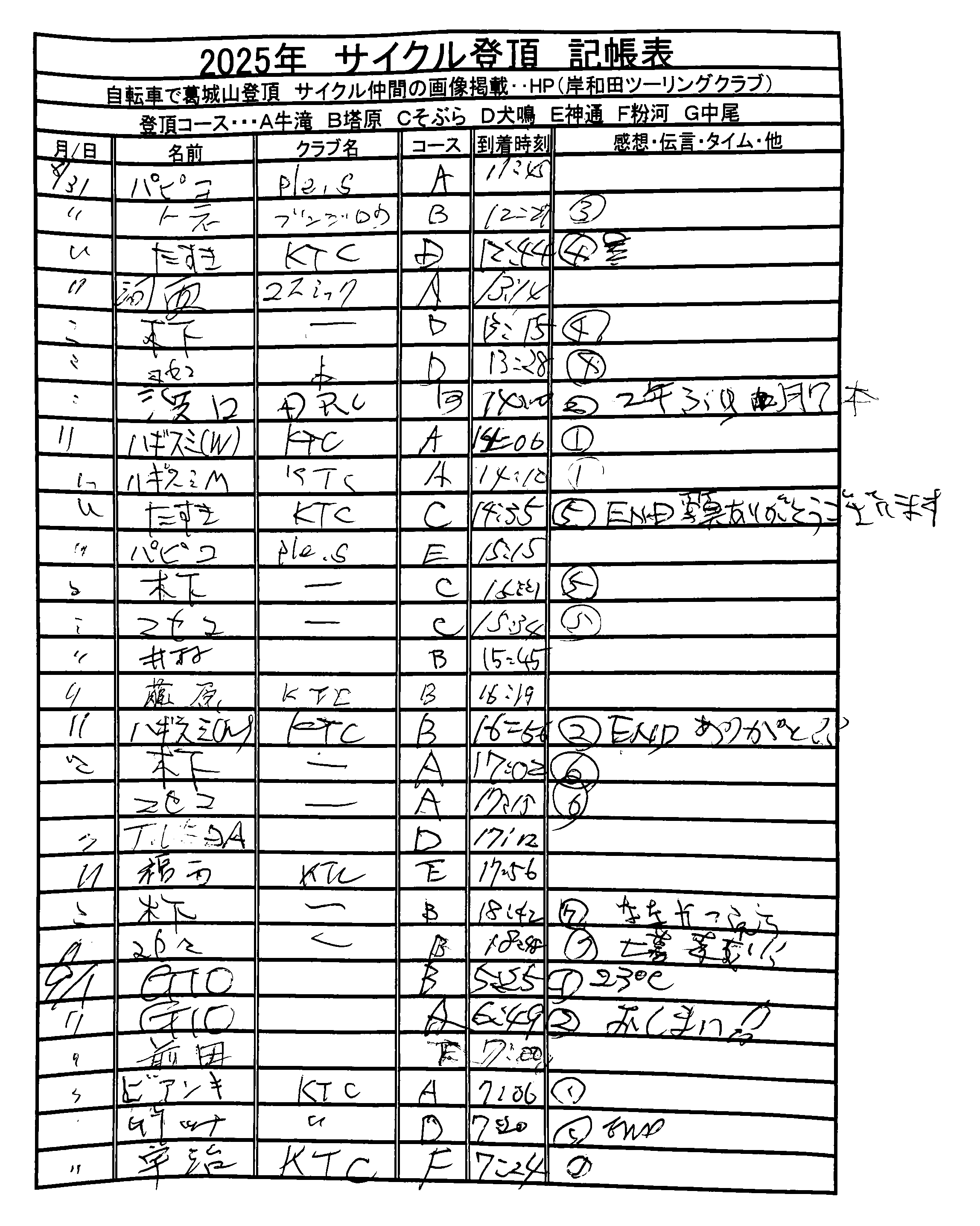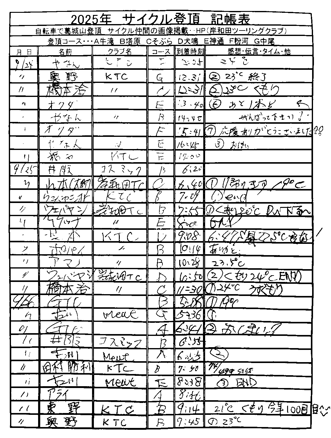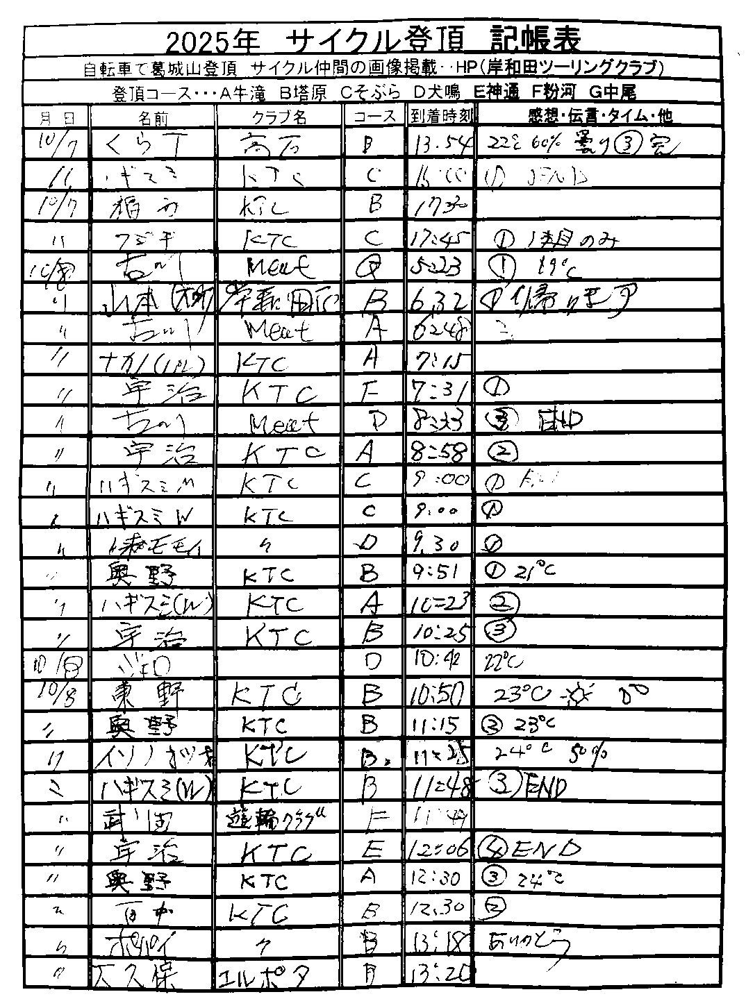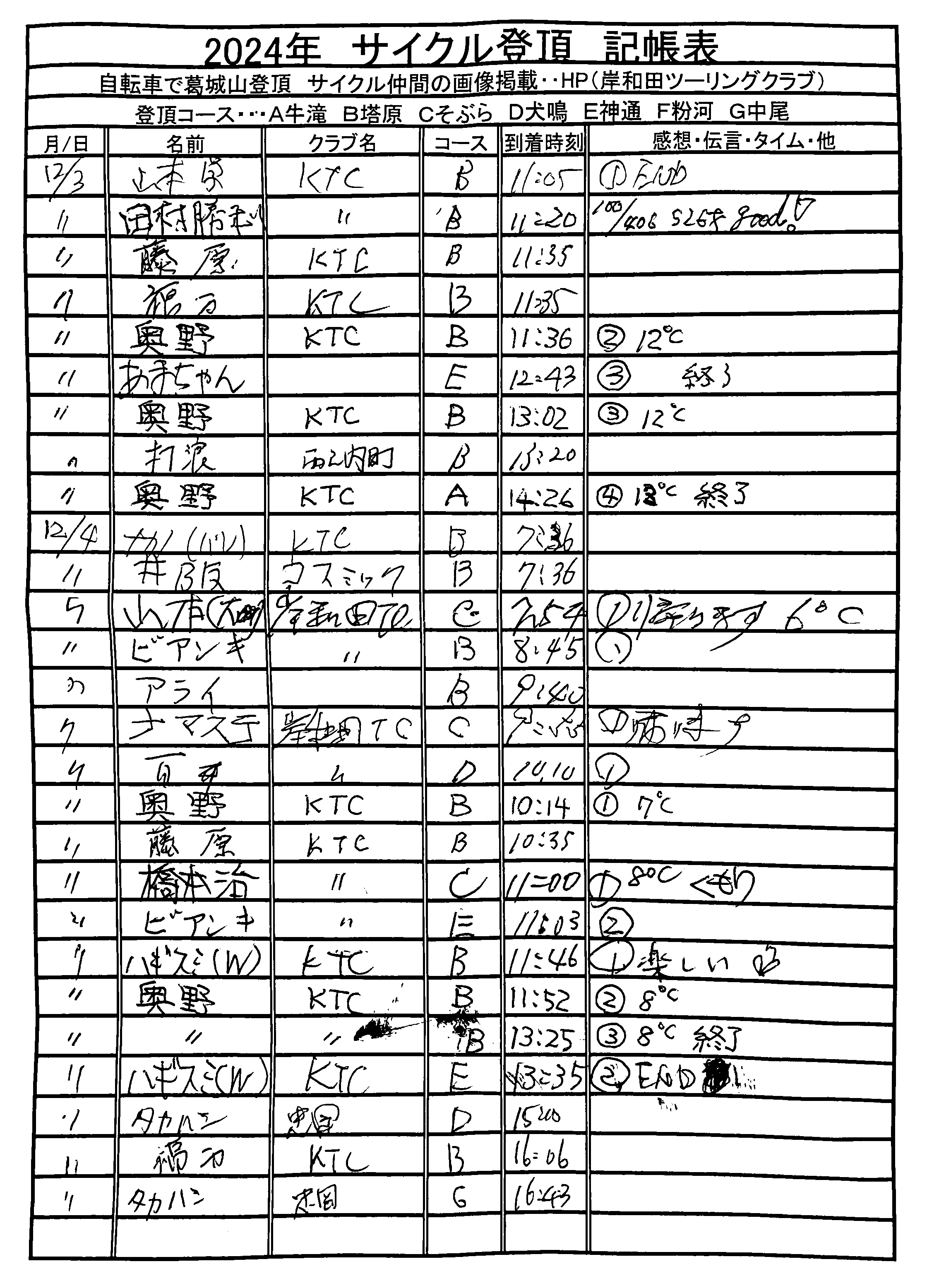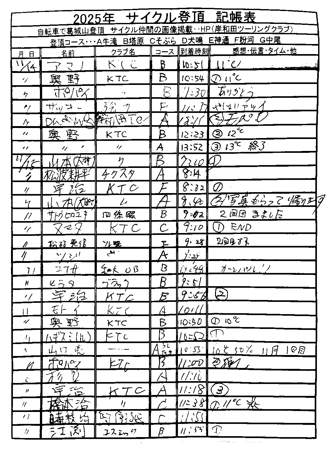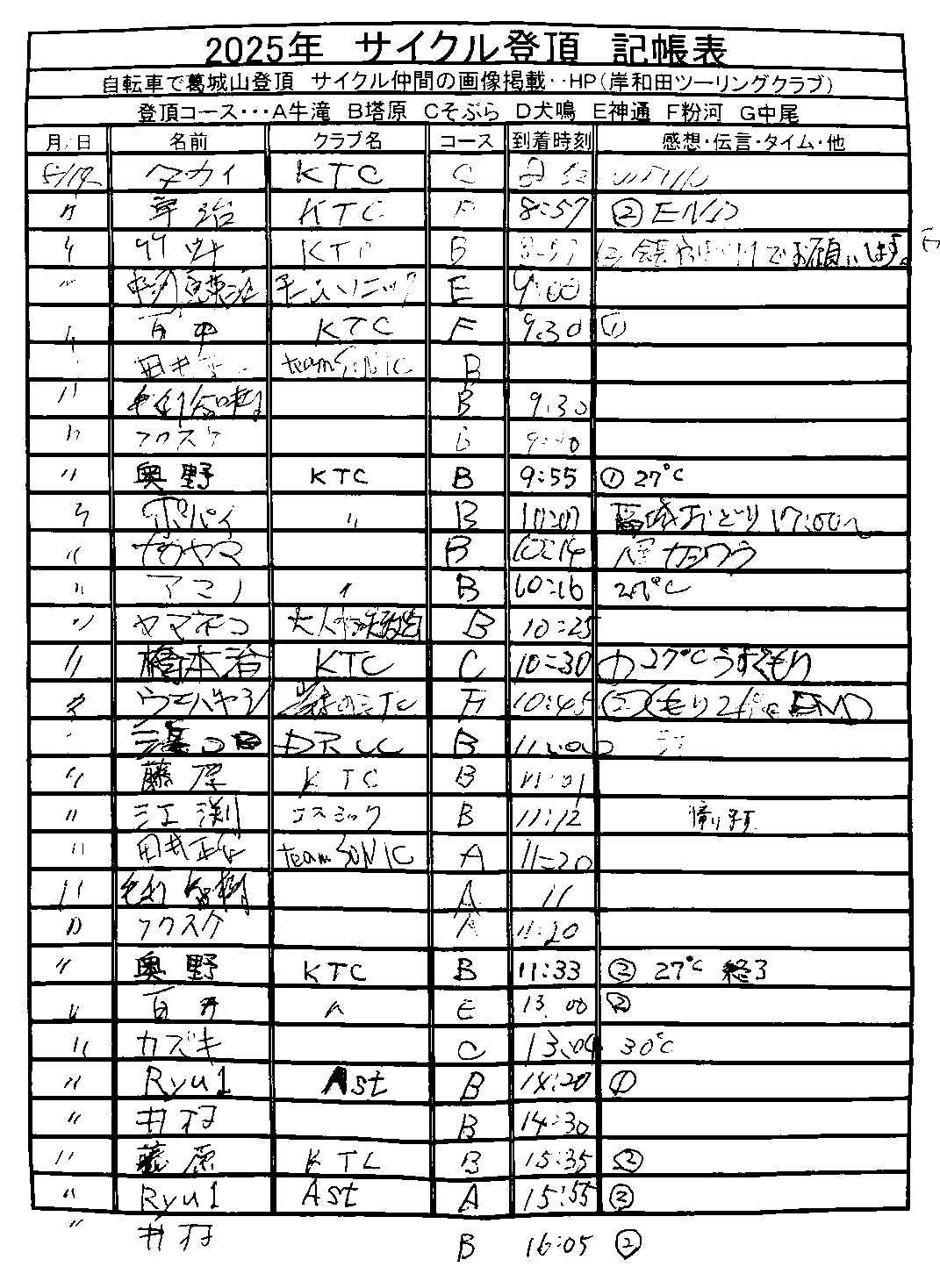 ■ 記帳表と回数表 ■ 岸和田ツーリングクラブの記帳表・回数表から引用させていただいてます。 2026年02月の記帳表 01/29〜02/01 01〜03 2026年01月の記帳表 12/31〜01/01 01〜04 04〜06 06〜08 08〜10 10〜13 13〜15 15〜17 17〜18 19〜21 21〜26 27〜29 29〜02/01 2025年12月の記帳表 11/30〜12/01 02〜03 03〜06 06〜07 07〜08 08〜10 10〜11 12〜13 13〜16 16〜18 18〜20 20〜20 20〜23 24〜28 28〜29 29〜31 31〜01/01 2025年11月の記帳表 10/30〜10/01 01〜02 02〜03 03〜04 05〜07 07〜08 08〜10 10〜11 11〜12 12〜14 14〜15 15〜16 16〜16 16〜17 17〜19 19〜21 19〜21 21〜22 22〜23 23〜24 24〜26 26〜28 28〜30 30〜30 30〜12/01 2025年10月の記帳表 09/30〜10/01 01〜02 02〜05 05〜06 06〜07 07〜08 08〜10 10〜11 11〜12 12〜13 13〜14 14〜15 15〜17 17〜18 18〜19 19〜21 21〜23 23〜25 25〜25 26〜27 27〜29 29〜30 30〜11/01 2025年09月の記帳表 08/31〜09/01 01〜02 02〜03 03〜06 06〜07 07〜07 07〜09 09〜10 10〜12 12〜13 13〜14 14〜15 15〜16 16〜18 18〜19 19〜20 20〜21 21〜22 22〜23 23〜24 24〜26 26〜27 27〜28 28〜28 28〜30 30〜10/01 2025年08月の記帳表 07/30〜08/01 01〜02 02〜03 03〜03 03〜03 03〜05 05〜06 06〜08 08〜08 09〜09 09〜12 12〜13 13〜14 14〜14 14〜15 15〜16 16〜17 17〜17 17〜18 18〜19 19〜20 20〜22 22〜23 23〜23 23〜24 24〜26 26〜27 27〜28 28〜29 29〜30 30〜31 31〜31 31〜09/01 2025年07月の記帳表 06/29〜07/01 01〜02 02〜03 03〜05 05〜05 05〜06 06〜06 06〜07 07〜09 09〜10 10〜12 12〜12 12〜13 13〜14 14〜16 16〜18 18〜19 19〜20 20〜20 20〜21 21〜21 22〜22 22〜23 24〜25 25〜26 26〜26 26〜27 27〜28 28〜29 29〜30 30〜08/01 2025年06月の記帳表 05/31〜06/01 01〜01 01〜02 02〜04 04〜05 05〜06 06〜07 07〜07 07〜08 08〜11 12〜13 13〜15 15〜16 16〜17 17〜18 18〜19 19〜20 20〜21 21〜22 22〜23 23〜25 26〜27 27〜28 28〜28 28〜29 28〜29 29〜29 29〜07/01 2025年05月の記帳表 04/29〜05/01 01〜01 01〜03 03〜03 03〜04 04〜04 04〜05 05〜05 05〜07 07〜08 08〜08 09〜10 10〜11 11〜11 11〜13 13〜14 14〜15 15〜16 16〜18 18〜18 18〜20 20〜21 21〜23 23〜23 23〜26 26〜27 27〜28 28〜30 30〜31 31〜06/01 2025年04月の記帳表 03/30〜04/01 01〜03 03〜04 04〜05 05〜06 06〜08 08〜09 09〜11 11〜12 12〜12 12〜14 14〜16 16〜17 17〜18 18〜19 19〜20 20〜20 20〜21 21〜23 24〜25 25〜26 26〜26 26〜26 26〜27 27〜27 27〜29 29〜29 29〜05/01 2025年03月の記帳表 02/28〜03/01 01〜06 06〜08 08〜09 09〜09 10〜12 12〜13 13〜14 14〜17 17〜21 21〜22 23〜23 23〜24 24〜25 25〜26 26〜29 29〜30 30〜30 30〜04/01 2025年02月の記帳表 01/30〜02/01 01〜04 04〜09 09〜13 13〜15 15〜15 15〜16 16〜18 19〜23 23〜28 28〜03/01 2025年01月の記帳表 12/31〜01/01 01〜02 02〜03 03〜04 04〜05 05〜05 07〜08 09〜13 13〜16 16〜18 18〜19 19〜21 21〜23 23〜25 25〜26 26〜26 26〜30 30〜02/01 2024年12月の記帳表 11/30〜12/01 01〜01 01〜02 02〜03 03〜04 05〜06 06〜07 07〜08 08〜09 09〜11 11〜12 12〜13 13〜15 15〜18 18〜20 20〜22 22〜23 23〜25 25〜27 27〜29 29〜31 31〜01/01 2024年11月の記帳表 01〜03 03〜04 04〜04 04〜05 05〜06 06〜08 08〜09 09〜10 10〜10 10〜12 12〜13 13〜14 14〜16 16〜17 17〜18 18〜19 19〜20 20〜21 22〜23 23〜24 24〜24 24〜25 26〜27 27〜30 30〜12/01 2024年10月の記帳表 09/29〜10/01 01〜02 02〜02 03〜05 05〜06 06〜06 06〜09 09〜10 10〜11 11〜12 12〜13 13〜13 13〜14 14〜15 15〜16 17〜17 17〜18 19〜20 20〜20 20〜22 22〜24 24〜25 25〜26 26〜27 27〜27 27〜29 29〜31 31〜31 2024年09月の記帳表 08/30〜09/01 01〜01 02〜03 03〜04 04〜05 05〜07 07〜07 07〜08 08〜09 09〜11 11〜12 12〜13 13〜14 14〜16 16〜16 16〜18 18〜20 20〜20 21〜21 21〜23 23〜23 23〜24 24〜25 25〜25 26〜27 27〜28 28〜28 28〜29 29〜29 29〜10/01 2024年08月の記帳表 07/31〜08/01 01〜02 02〜03 03〜03 03〜04 04〜04 04〜06 06〜07 07〜08 08〜10 10〜10 10〜11 11〜11 11〜12 12〜13 13〜14 14〜14 15〜15 15〜16 16〜17 17〜18 18〜18 18〜19 19〜21 21〜22 22〜23 23〜24 24〜25 25〜26 26〜27 28〜30 30〜09/01 2024年07月の記帳表 06/29〜07/03 03〜03 04〜05 05〜06 06〜06 06〜07 07〜07 07〜08 09〜09 09〜13 13〜14 14〜14 14〜15 15〜17 17〜18 18〜19 19〜20 20〜21 21〜21 21〜22 22〜24 24〜25 25〜26 26〜27 27〜28 28〜28 28〜29 29〜31 31〜08/01 2024年06月の記帳表 05/30〜06/01 01〜01 01〜02 02〜02 02〜03 03〜04 04〜05 05〜06 06〜07 07〜08 08〜08 08〜09 09〜11 11〜12 12〜12 12〜14 14〜15 15〜15 15〜16 16〜16 16〜17 17〜17 17〜19 19〜20 20〜22 22〜22 22〜25 25〜26 26〜29 29〜29 29〜29 29〜07/03 2024年05月の記帳表 04/29〜05/02 02〜02 02〜02 02〜03 03〜04 04〜04 04〜04 04〜05 05〜05 05〜07 07〜09 09〜10 10〜10 10〜11 11〜11 11〜11 11〜11 11〜12 12〜14 14〜15 15〜15 15〜17 17〜18 18〜18 18〜18 18〜20 20〜22 22〜22 22〜24 24〜25 25〜25 25〜26 26〜26 26〜26 26〜29 29〜30 30〜06/01 2024年04月の記帳表 03/31〜04/02 02〜05 05〜06 06〜06 06〜07 07〜07 07〜10 10〜11 11〜12 12〜13 13〜13 13〜14 14〜14 14〜16 16〜17 17〜17 17〜18 18〜19 19〜20 20〜20 21〜24 24〜25 25〜27 27〜28 28〜28 28〜29 29〜29 29〜05/02 2024年03月の記帳表 02/28〜03/01 01〜03 03〜03 03〜04 04〜07 07〜09 09〜10 10〜13 13〜14 14〜16 16〜16 16〜17 17〜18 19〜21 21〜22 22〜27 27〜28 28〜30 30〜30 31〜31 31〜 2024年02月の記帳表 01/31〜02/03 03〜03 03〜06 06〜07 08〜09 09〜10 10〜11 11〜11 11〜12 13〜14 14〜14 14〜16 16〜17 17〜18 18〜18 18〜20 20〜24 24〜26 26〜28 28〜03/01 2024年01月の記帳表 01〜02 02〜03 03〜05 05〜06 06〜07 07〜07 08〜09 09〜12 12〜13 14〜14 14〜17 17〜20 21〜23 23〜27 28〜29 29〜31 31〜02/03 2023
