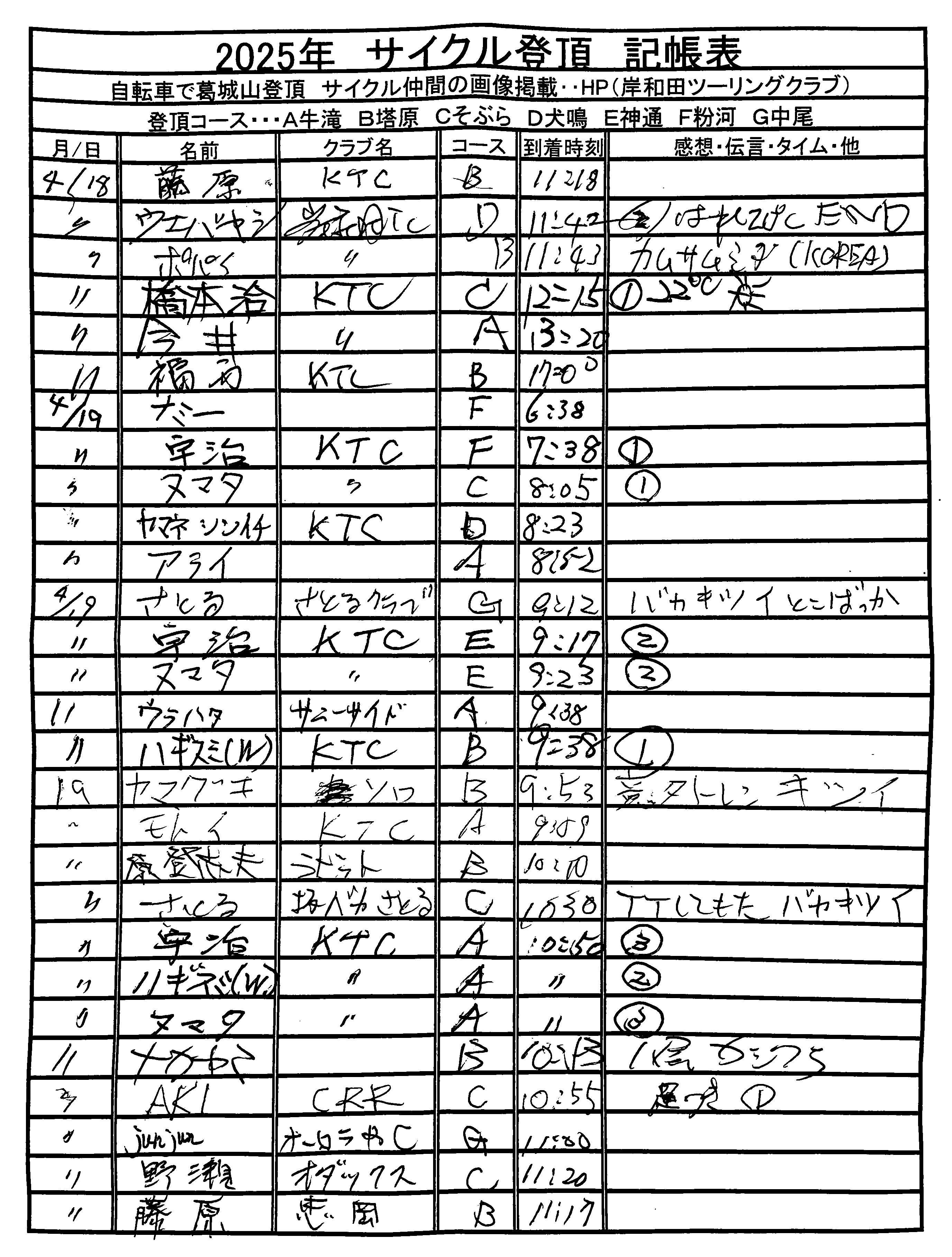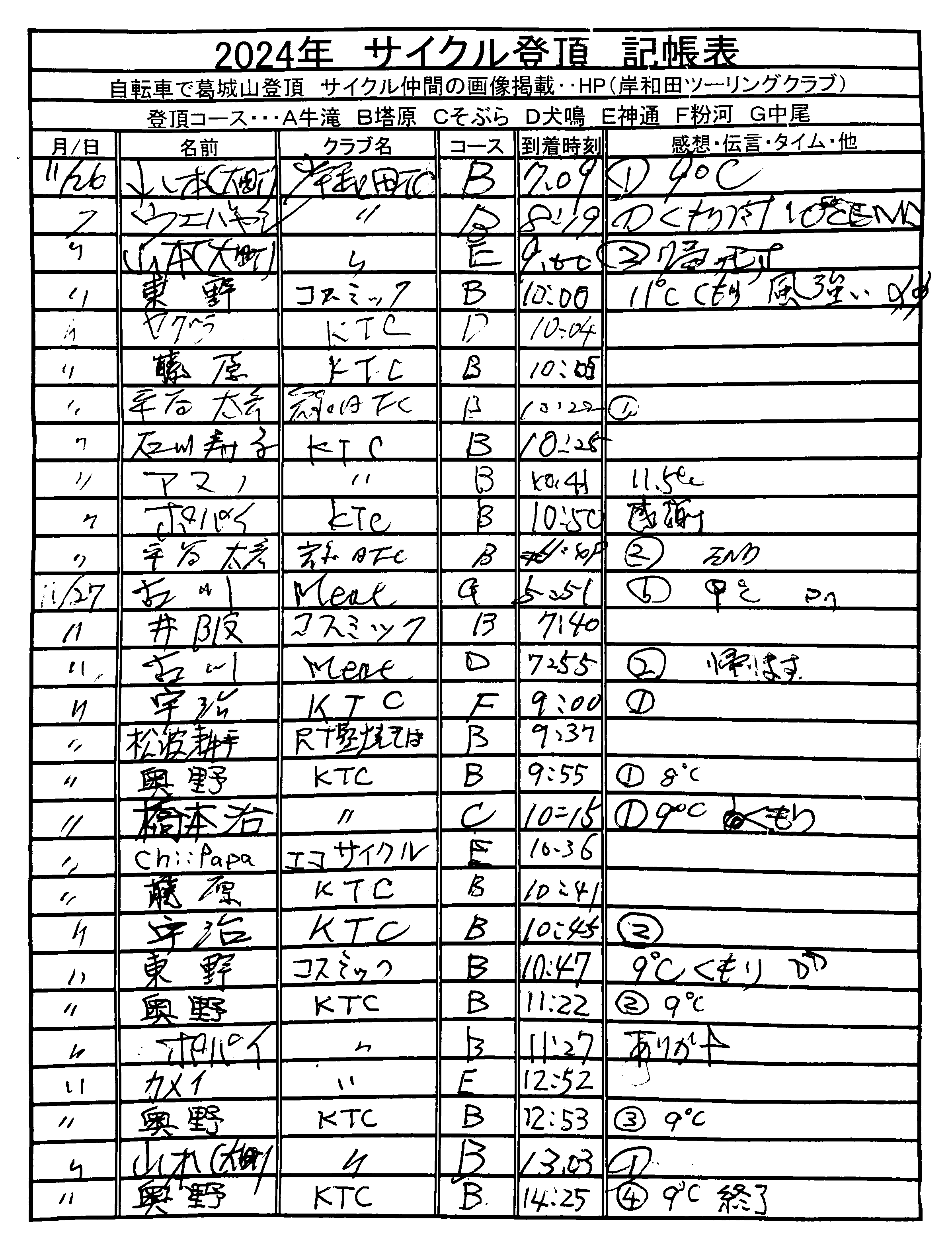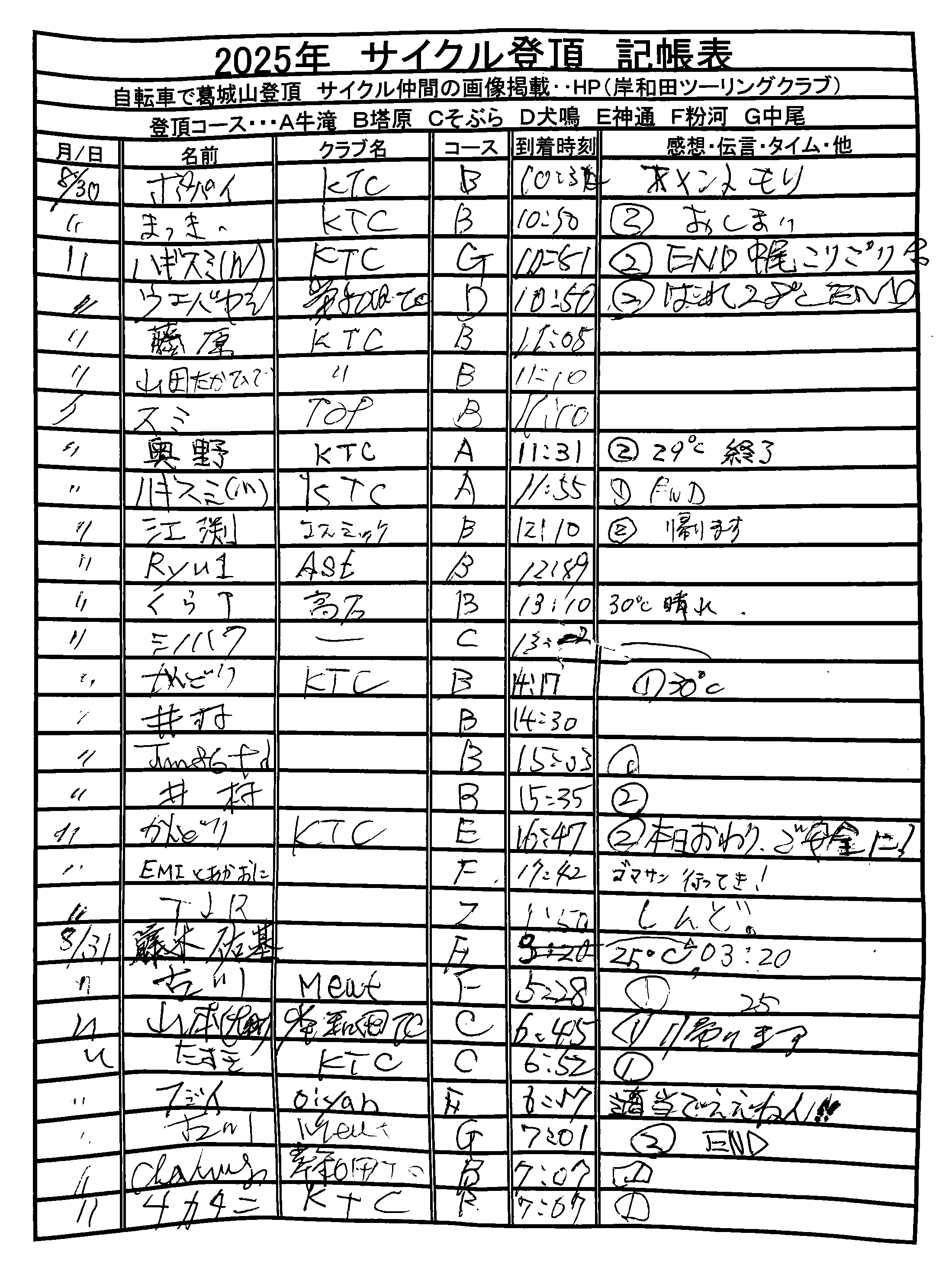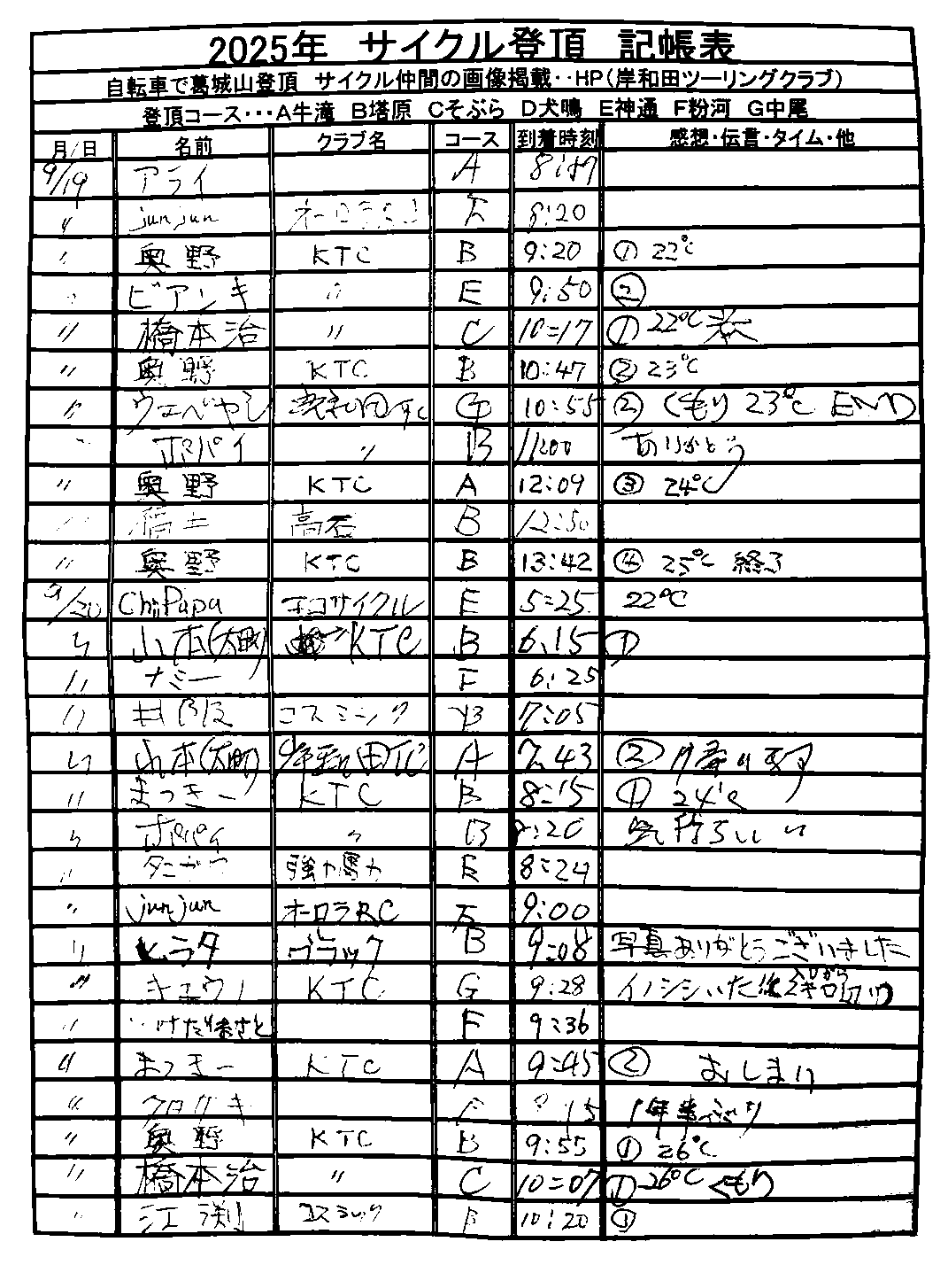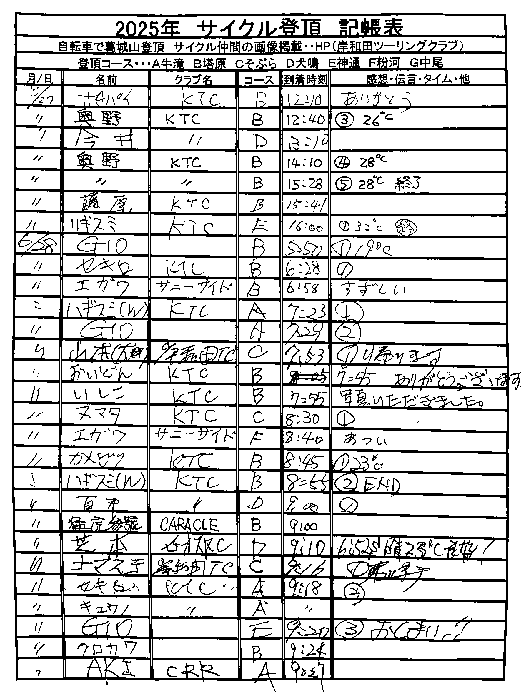 ■ 記帳表と回数表 ■ 岸和田ツーリングクラブの記帳表・回数表から引用させていただいてます。 2026年02月の記帳表 01/29〜02/01 01〜03 2026年01月の記帳表 12/31〜01/01 01〜04 04〜06 06〜08 08〜10 10〜13 13〜15 15〜17 17〜18 19〜21 21〜26 27〜29 29〜02/01 2025年12月の記帳表 11/30〜12/01 02〜03 03〜06 06〜07 07〜08 08〜10 10〜11 12〜13 13〜16 16〜18 18〜20 20〜20 20〜23 24〜28 28〜29 29〜31 31〜01/01 2025年11月の記帳表 10/30〜10/01 01〜02 02〜03 03〜04 05〜07 07〜08 08〜10 10〜11 11〜12 12〜14 14〜15 15〜16 16〜16 16〜17 17〜19 19〜21 19〜21 21〜22 22〜23 23〜24 24〜26 26〜28 28〜30 30〜30 30〜12/01 2025年10月の記帳表 09/30〜10/01 01〜02 02〜05 05〜06 06〜07 07〜08 08〜10 10〜11 11〜12 12〜13 13〜14 14〜15 15〜17 17〜18 18〜19 19〜21 21〜23 23〜25 25〜25 26〜27 27〜29 29〜30 30〜11/01 2025年09月の記帳表 08/31〜09/01 01〜02 02〜03 03〜06 06〜07 07〜07 07〜09 09〜10 10〜12 12〜13 13〜14 14〜15 15〜16 16〜18 18〜19 19〜20 20〜21 21〜22 22〜23 23〜24 24〜26 26〜27 27〜28 28〜28 28〜30 30〜10/01 2025年08月の記帳表 07/30〜08/01 01〜02 02〜03 03〜03 03〜03 03〜05 05〜06 06〜08 08〜08 09〜09 09〜12 12〜13 13〜14 14〜14 14〜15 15〜16 16〜17 17〜17 17〜18 18〜19 19〜20 20〜22 22〜23 23〜23 23〜24 24〜26 26〜27 27〜28 28〜29 29〜30 30〜31 31〜31 31〜09/01 2025年07月の記帳表 06/29〜07/01 01〜02 02〜03 03〜05 05〜05 05〜06 06〜06 06〜07 07〜09 09〜10 10〜12 12〜12 12〜13 13〜14 14〜16 16〜18 18〜19 19〜20 20〜20 20〜21 21〜21 22〜22 22〜23 24〜25 25〜26 26〜26 26〜27 27〜28 28〜29 29〜30 30〜08/01 2025年06月の記帳表 05/31〜06/01 01〜01 01〜02 02〜04 04〜05 05〜06 06〜07 07〜07 07〜08 08〜11 12〜13 13〜15 15〜16 16〜17 17〜18 18〜19 19〜20 20〜21 21〜22 22〜23 23〜25 26〜27 27〜28 28〜28 28〜29 28〜29 29〜29 29〜07/01 2025年05月の記帳表 04/29〜05/01 01〜01 01〜03 03〜03 03〜04 04〜04 04〜05 05〜05 05〜07 07〜08 08〜08 09〜10 10〜11 11〜11 11〜13 13〜14 14〜15 15〜16 16〜18 18〜18 18〜20 20〜21 21〜23 23〜23 23〜26 26〜27 27〜28 28〜30 30〜31 31〜06/01 2025年04月の記帳表 03/30〜04/01 01〜03 03〜04 04〜05 05〜06 06〜08 08〜09 09〜11 11〜12 12〜12 12〜14 14〜16 16〜17 17〜18 18〜19 19〜20 20〜20 20〜21 21〜23 24〜25 25〜26 26〜26 26〜26 26〜27 27〜27 27〜29 29〜29 29〜05/01 2025年03月の記帳表 02/28〜03/01 01〜06 06〜08 08〜09 09〜09 10〜12 12〜13 13〜14 14〜17 17〜21 21〜22 23〜23 23〜24 24〜25 25〜26 26〜29 29〜30 30〜30 30〜04/01 2025年02月の記帳表 01/30〜02/01 01〜04 04〜09 09〜13 13〜15 15〜15 15〜16 16〜18 19〜23 23〜28 28〜03/01 2025年01月の記帳表 12/31〜01/01 01〜02 02〜03 03〜04 04〜05 05〜05 07〜08 09〜13 13〜16 16〜18 18〜19 19〜21 21〜23 23〜25 25〜26 26〜26 26〜30 30〜02/01 2024年12月の記帳表 11/30〜12/01 01〜01 01〜02 02〜03 03〜04 05〜06 06〜07 07〜08 08〜09 09〜11 11〜12 12〜13 13〜15 15〜18 18〜20 20〜22 22〜23 23〜25 25〜27 27〜29 29〜31 31〜01/01 2024年11月の記帳表 01〜03 03〜04 04〜04 04〜05 05〜06 06〜08 08〜09 09〜10 10〜10 10〜12 12〜13 13〜14 14〜16 16〜17 17〜18 18〜19 19〜20 20〜21 22〜23 23〜24 24〜24 24〜25 26〜27 27〜30 30〜12/01 2024年10月の記帳表 09/29〜10/01 01〜02 02〜02 03〜05 05〜06 06〜06 06〜09 09〜10 10〜11 11〜12 12〜13 13〜13 13〜14 14〜15 15〜16 17〜17 17〜18 19〜20 20〜20 20〜22 22〜24 24〜25 25〜26 26〜27 27〜27 27〜29 29〜31 31〜31 2024年09月の記帳表 08/30〜09/01 01〜01 02〜03 03〜04 04〜05 05〜07 07〜07 07〜08 08〜09 09〜11 11〜12 12〜13 13〜14 14〜16 16〜16 16〜18 18〜20 20〜20 21〜21 21〜23 23〜23 23〜24 24〜25 25〜25 26〜27 27〜28 28〜28 28〜29 29〜29 29〜10/01 2024年08月の記帳表 07/31〜08/01 01〜02 02〜03 03〜03 03〜04 04〜04 04〜06 06〜07 07〜08 08〜10 10〜10 10〜11 11〜11 11〜12 12〜13 13〜14 14〜14 15〜15 15〜16 16〜17 17〜18 18〜18 18〜19 19〜21 21〜22 22〜23 23〜24 24〜25 25〜26 26〜27 28〜30 30〜09/01 2024年07月の記帳表 06/29〜07/03 03〜03 04〜05 05〜06 06〜06 06〜07 07〜07 07〜08 09〜09 09〜13 13〜14 14〜14 14〜15 15〜17 17〜18 18〜19 19〜20 20〜21 21〜21 21〜22 22〜24 24〜25 25〜26 26〜27 27〜28 28〜28 28〜29 29〜31 31〜08/01 2024年06月の記帳表 05/30〜06/01 01〜01 01〜02 02〜02 02〜03 03〜04 04〜05 05〜06 06〜07 07〜08 08〜08 08〜09 09〜11 11〜12 12〜12 12〜14 14〜15 15〜15 15〜16 16〜16 16〜17 17〜17 17〜19 19〜20 20〜22 22〜22 22〜25 25〜26 26〜29 29〜29 29〜29 29〜07/03 2024年05月の記帳表 04/29〜05/02 02〜02 02〜02 02〜03 03〜04 04〜04 04〜04 04〜05 05〜05 05〜07 07〜09 09〜10 10〜10 10〜11 11〜11 11〜11 11〜11 11〜12 12〜14 14〜15 15〜15 15〜17 17〜18 18〜18 18〜18 18〜20 20〜22 22〜22 22〜24 24〜25 25〜25 25〜26 26〜26 26〜26 26〜29 29〜30 30〜06/01 2024年04月の記帳表 03/31〜04/02 02〜05 05〜06 06〜06 06〜07 07〜07 07〜10 10〜11 11〜12 12〜13 13〜13 13〜14 14〜14 14〜16 16〜17 17〜17 17〜18 18〜19 19〜20 20〜20 21〜24 24〜25 25〜27 27〜28 28〜28 28〜29 29〜29 29〜05/02 2024年03月の記帳表 02/28〜03/01 01〜03 03〜03 03〜04 04〜07 07〜09 09〜10 10〜13 13〜14 14〜16 16〜16 16〜17 17〜18 19〜21 21〜22 22〜27 27〜28 28〜30 30〜30 31〜31 31〜 2024年02月の記帳表 01/31〜02/03 03〜03 03〜06 06〜07 08〜09 09〜10 10〜11 11〜11 11〜12 13〜14 14〜14 14〜16 16〜17 17〜18 18〜18 18〜20 20〜24 24〜26 26〜28 28〜03/01 2024年01月の記帳表 01〜02 02〜03 03〜05 05〜06 06〜07 07〜07 08〜09 09〜12 12〜13 14〜14 14〜17 17〜20 21〜23 23〜27 28〜29 29〜31 31〜02/03 2023