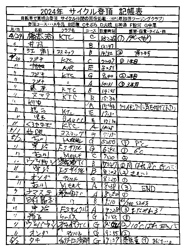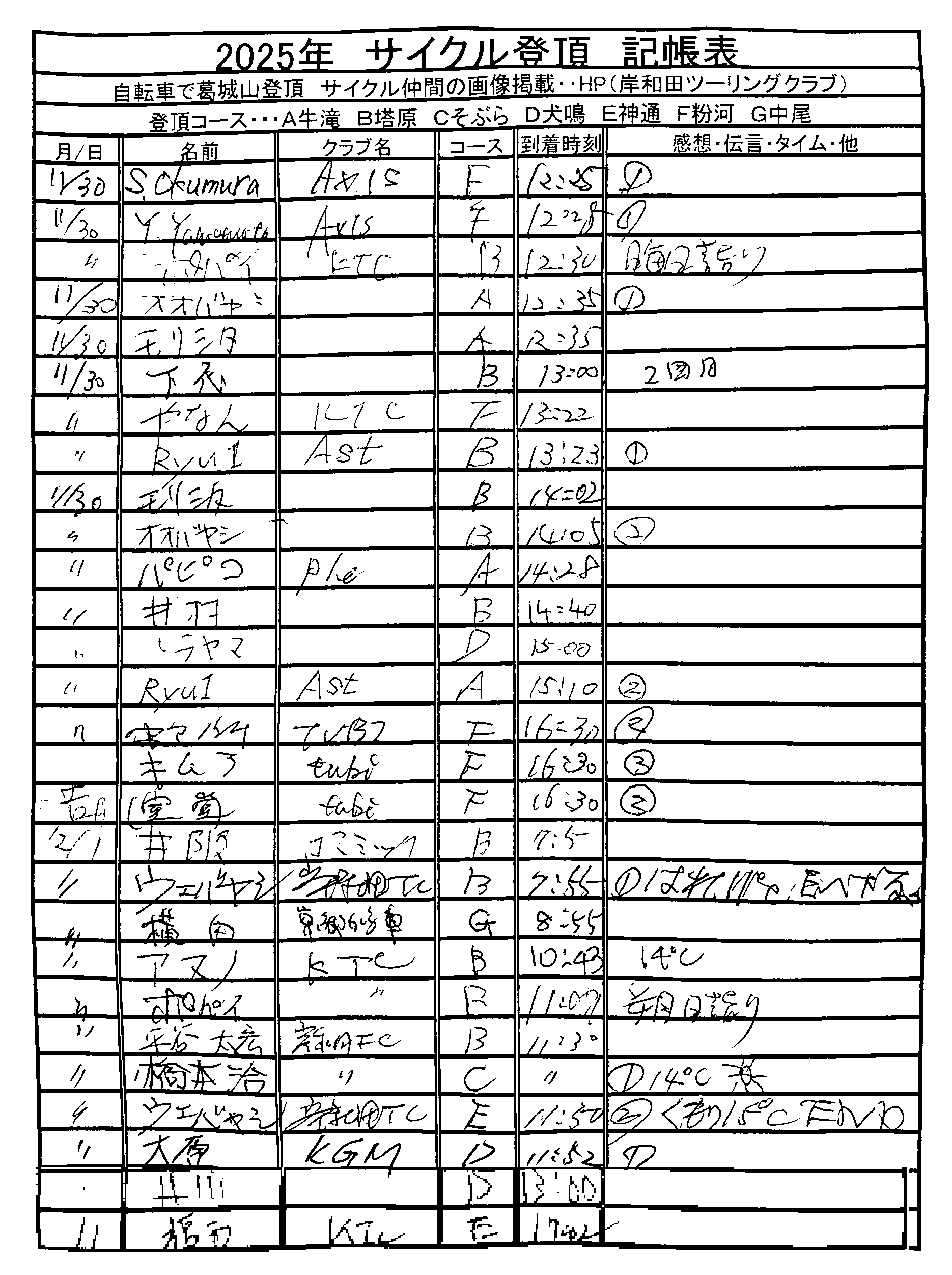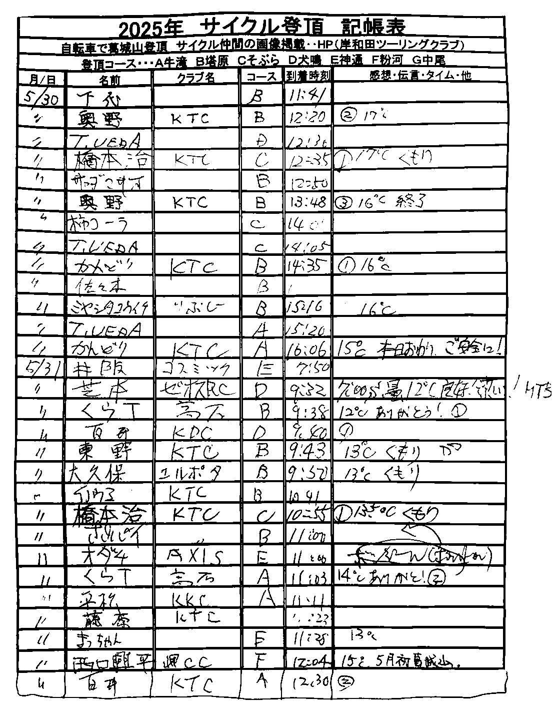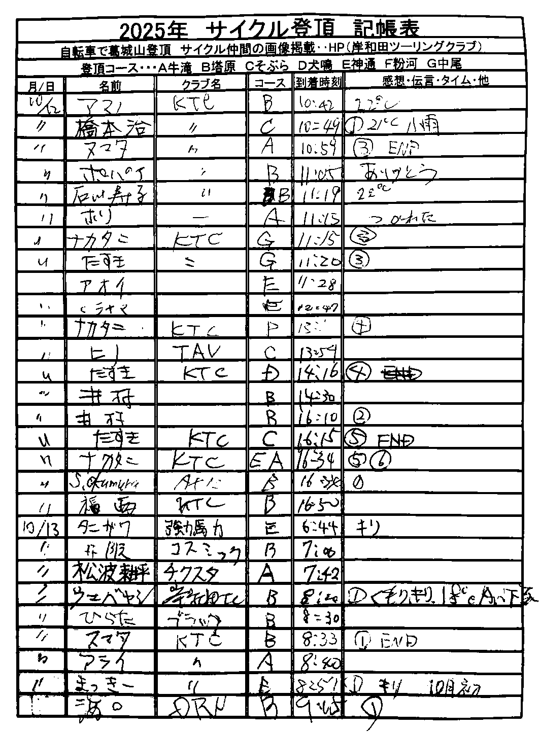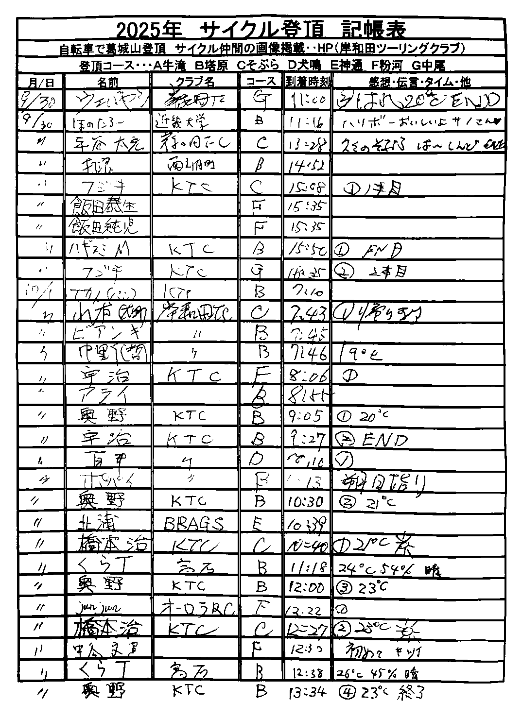 ■ 記帳表と回数表 ■ 岸和田ツーリングクラブの記帳表・回数表から引用させていただいてます。 2026年02月の記帳表 01/29〜02/01 01〜03 2026年01月の記帳表 12/31〜01/01 01〜04 04〜06 06〜08 08〜10 10〜13 13〜15 15〜17 17〜18 19〜21 21〜26 27〜29 29〜02/01 2025年12月の記帳表 11/30〜12/01 02〜03 03〜06 06〜07 07〜08 08〜10 10〜11 12〜13 13〜16 16〜18 18〜20 20〜20 20〜23 24〜28 28〜29 29〜31 31〜01/01 2025年11月の記帳表 10/30〜10/01 01〜02 02〜03 03〜04 05〜07 07〜08 08〜10 10〜11 11〜12 12〜14 14〜15 15〜16 16〜16 16〜17 17〜19 19〜21 19〜21 21〜22 22〜23 23〜24 24〜26 26〜28 28〜30 30〜30 30〜12/01 2025年10月の記帳表 09/30〜10/01 01〜02 02〜05 05〜06 06〜07 07〜08 08〜10 10〜11 11〜12 12〜13 13〜14 14〜15 15〜17 17〜18 18〜19 19〜21 21〜23 23〜25 25〜25 26〜27 27〜29 29〜30 30〜11/01 2025年09月の記帳表 08/31〜09/01 01〜02 02〜03 03〜06 06〜07 07〜07 07〜09 09〜10 10〜12 12〜13 13〜14 14〜15 15〜16 16〜18 18〜19 19〜20 20〜21 21〜22 22〜23 23〜24 24〜26 26〜27 27〜28 28〜28 28〜30 30〜10/01 2025年08月の記帳表 07/30〜08/01 01〜02 02〜03 03〜03 03〜03 03〜05 05〜06 06〜08 08〜08 09〜09 09〜12 12〜13 13〜14 14〜14 14〜15 15〜16 16〜17 17〜17 17〜18 18〜19 19〜20 20〜22 22〜23 23〜23 23〜24 24〜26 26〜27 27〜28 28〜29 29〜30 30〜31 31〜31 31〜09/01 2025年07月の記帳表 06/29〜07/01 01〜02 02〜03 03〜05 05〜05 05〜06 06〜06 06〜07 07〜09 09〜10 10〜12 12〜12 12〜13 13〜14 14〜16 16〜18 18〜19 19〜20 20〜20 20〜21 21〜21 22〜22 22〜23 24〜25 25〜26 26〜26 26〜27 27〜28 28〜29 29〜30 30〜08/01 2025年06月の記帳表 05/31〜06/01 01〜01 01〜02 02〜04 04〜05 05〜06 06〜07 07〜07 07〜08 08〜11 12〜13 13〜15 15〜16 16〜17 17〜18 18〜19 19〜20 20〜21 21〜22 22〜23 23〜25 26〜27 27〜28 28〜28 28〜29 28〜29 29〜29 29〜07/01 2025年05月の記帳表 04/29〜05/01 01〜01 01〜03 03〜03 03〜04 04〜04 04〜05 05〜05 05〜07 07〜08 08〜08 09〜10 10〜11 11〜11 11〜13 13〜14 14〜15 15〜16 16〜18 18〜18 18〜20 20〜21 21〜23 23〜23 23〜26 26〜27 27〜28 28〜30 30〜31 31〜06/01 2025年04月の記帳表 03/30〜04/01 01〜03 03〜04 04〜05 05〜06 06〜08 08〜09 09〜11 11〜12 12〜12 12〜14 14〜16 16〜17 17〜18 18〜19 19〜20 20〜20 20〜21 21〜23 24〜25 25〜26 26〜26 26〜26 26〜27 27〜27 27〜29 29〜29 29〜05/01 2025年03月の記帳表 02/28〜03/01 01〜06 06〜08 08〜09 09〜09 10〜12 12〜13 13〜14 14〜17 17〜21 21〜22 23〜23 23〜24 24〜25 25〜26 26〜29 29〜30 30〜30 30〜04/01 2025年02月の記帳表 01/30〜02/01 01〜04 04〜09 09〜13 13〜15 15〜15 15〜16 16〜18 19〜23 23〜28 28〜03/01 2025年01月の記帳表 12/31〜01/01 01〜02 02〜03 03〜04 04〜05 05〜05 07〜08 09〜13 13〜16 16〜18 18〜19 19〜21 21〜23 23〜25 25〜26 26〜26 26〜30 30〜02/01 2024年12月の記帳表 11/30〜12/01 01〜01 01〜02 02〜03 03〜04 05〜06 06〜07 07〜08 08〜09 09〜11 11〜12 12〜13 13〜15 15〜18 18〜20 20〜22 22〜23 23〜25 25〜27 27〜29 29〜31 31〜01/01 2024年11月の記帳表 01〜03 03〜04 04〜04 04〜05 05〜06 06〜08 08〜09 09〜10 10〜10 10〜12 12〜13 13〜14 14〜16 16〜17 17〜18 18〜19 19〜20 20〜21 22〜23 23〜24 24〜24 24〜25 26〜27 27〜30 30〜12/01 2024年10月の記帳表 09/29〜10/01 01〜02 02〜02 03〜05 05〜06 06〜06 06〜09 09〜10 10〜11 11〜12 12〜13 13〜13 13〜14 14〜15 15〜16 17〜17 17〜18 19〜20 20〜20 20〜22 22〜24 24〜25 25〜26 26〜27 27〜27 27〜29 29〜31 31〜31 2024年09月の記帳表 08/30〜09/01 01〜01 02〜03 03〜04 04〜05 05〜07 07〜07 07〜08 08〜09 09〜11 11〜12 12〜13 13〜14 14〜16 16〜16 16〜18 18〜20 20〜20 21〜21 21〜23 23〜23 23〜24 24〜25 25〜25 26〜27 27〜28 28〜28 28〜29 29〜29 29〜10/01 2024年08月の記帳表 07/31〜08/01 01〜02 02〜03 03〜03 03〜04 04〜04 04〜06 06〜07 07〜08 08〜10 10〜10 10〜11 11〜11 11〜12 12〜13 13〜14 14〜14 15〜15 15〜16 16〜17 17〜18 18〜18 18〜19 19〜21 21〜22 22〜23 23〜24 24〜25 25〜26 26〜27 28〜30 30〜09/01 2024年07月の記帳表 06/29〜07/03 03〜03 04〜05 05〜06 06〜06 06〜07 07〜07 07〜08 09〜09 09〜13 13〜14 14〜14 14〜15 15〜17 17〜18 18〜19 19〜20 20〜21 21〜21 21〜22 22〜24 24〜25 25〜26 26〜27 27〜28 28〜28 28〜29 29〜31 31〜08/01 2024年06月の記帳表 05/30〜06/01 01〜01 01〜02 02〜02 02〜03 03〜04 04〜05 05〜06 06〜07 07〜08 08〜08 08〜09 09〜11 11〜12 12〜12 12〜14 14〜15 15〜15 15〜16 16〜16 16〜17 17〜17 17〜19 19〜20 20〜22 22〜22 22〜25 25〜26 26〜29 29〜29 29〜29 29〜07/03 2024年05月の記帳表 04/29〜05/02 02〜02 02〜02 02〜03 03〜04 04〜04 04〜04 04〜05 05〜05 05〜07 07〜09 09〜10 10〜10 10〜11 11〜11 11〜11 11〜11 11〜12 12〜14 14〜15 15〜15 15〜17 17〜18 18〜18 18〜18 18〜20 20〜22 22〜22 22〜24 24〜25 25〜25 25〜26 26〜26 26〜26 26〜29 29〜30 30〜06/01 2024年04月の記帳表 03/31〜04/02 02〜05 05〜06 06〜06 06〜07 07〜07 07〜10 10〜11 11〜12 12〜13 13〜13 13〜14 14〜14 14〜16 16〜17 17〜17 17〜18 18〜19 19〜20 20〜20 21〜24 24〜25 25〜27 27〜28 28〜28 28〜29 29〜29 29〜05/02 2024年03月の記帳表 02/28〜03/01 01〜03 03〜03 03〜04 04〜07 07〜09 09〜10 10〜13 13〜14 14〜16 16〜16 16〜17 17〜18 19〜21 21〜22 22〜27 27〜28 28〜30 30〜30 31〜31 31〜 2024年02月の記帳表 01/31〜02/03 03〜03 03〜06 06〜07 08〜09 09〜10 10〜11 11〜11 11〜12 13〜14 14〜14 14〜16 16〜17 17〜18 18〜18 18〜20 20〜24 24〜26 26〜28 28〜03/01 2024年01月の記帳表 01〜02 02〜03 03〜05 05〜06 06〜07 07〜07 08〜09 09〜12 12〜13 14〜14 14〜17 17〜20 21〜23 23〜27 28〜29 29〜31 31〜02/03 2023