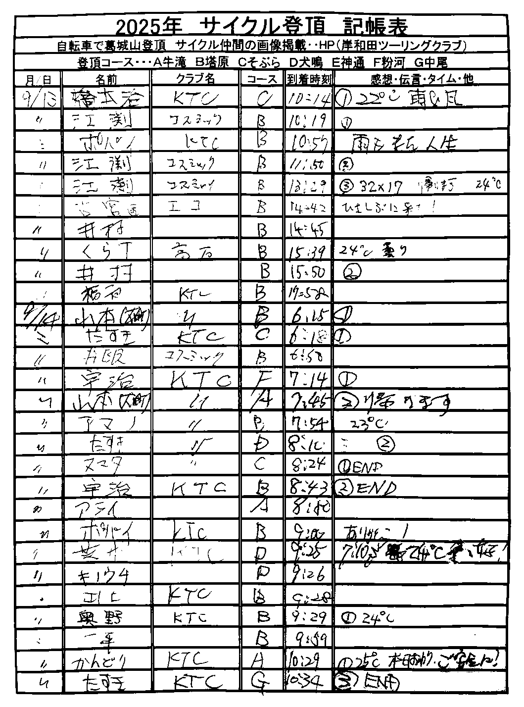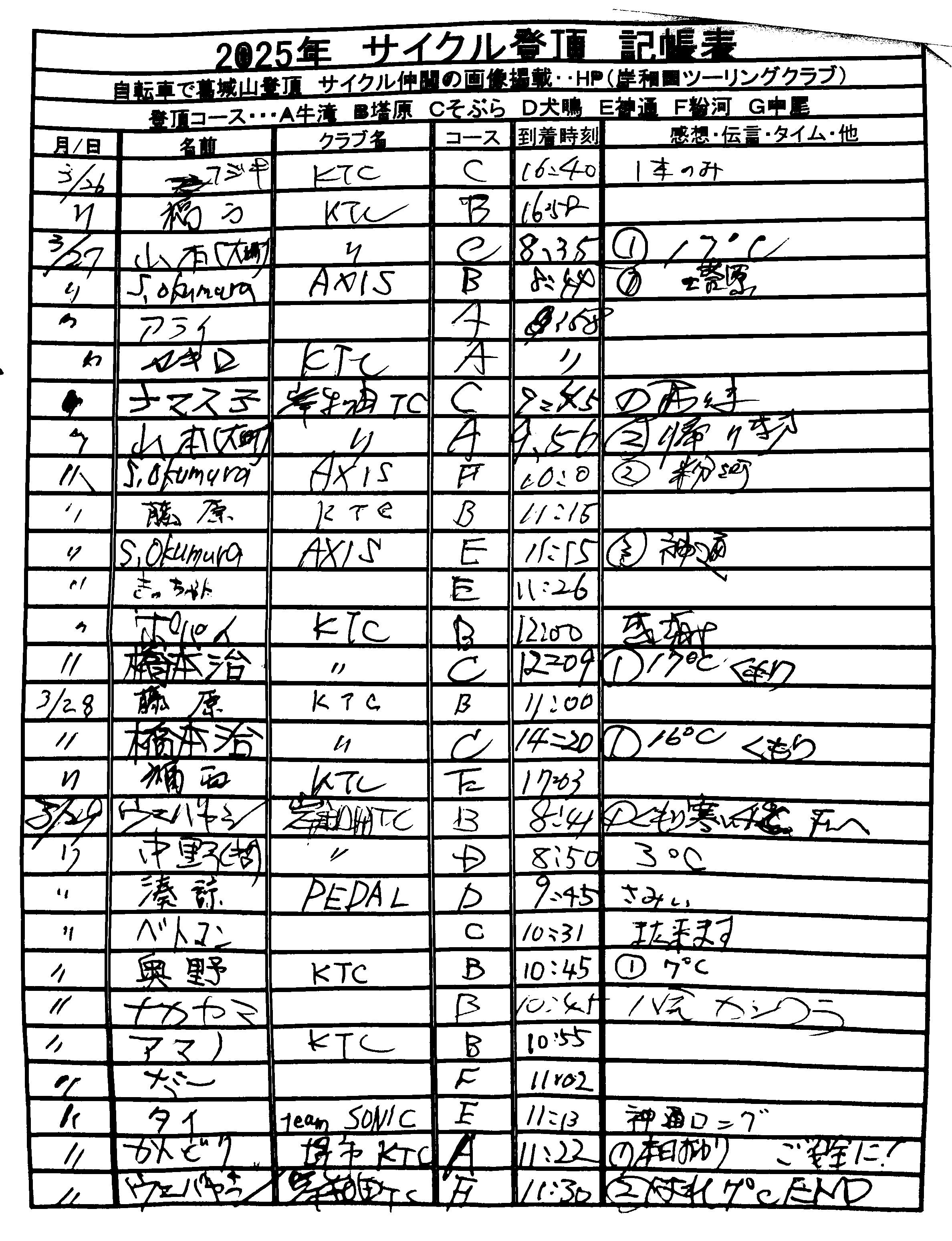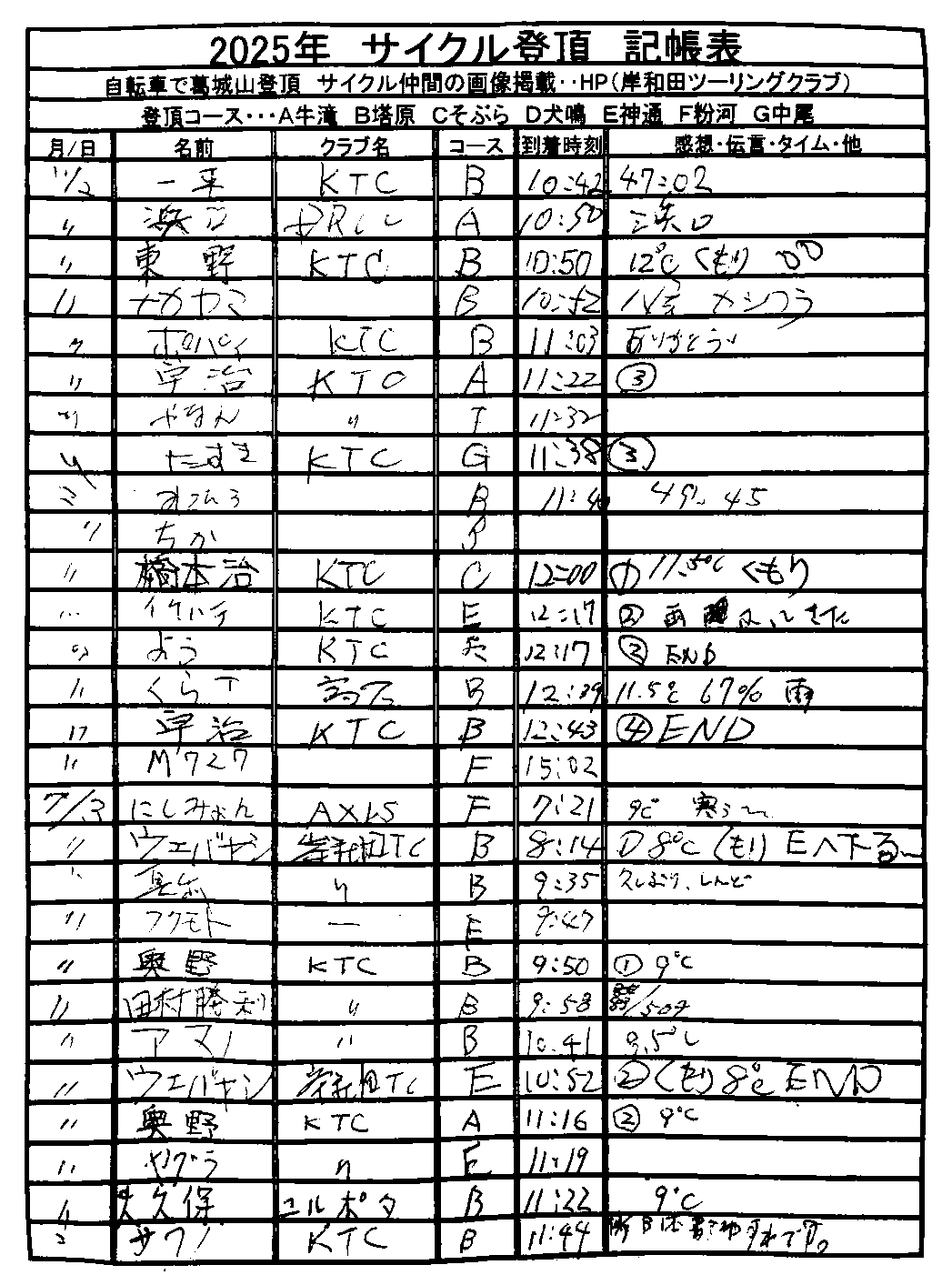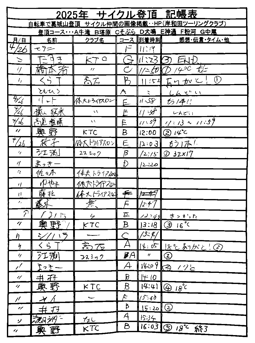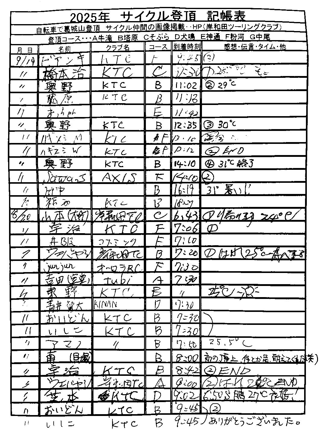 ■ 記帳表と回数表 ■ 岸和田ツーリングクラブの記帳表・回数表から引用させていただいてます。 2026年02月の記帳表 01/29〜02/01 01〜03 2026年01月の記帳表 12/31〜01/01 01〜04 04〜06 06〜08 08〜10 10〜13 13〜15 15〜17 17〜18 19〜21 21〜26 27〜29 29〜02/01 2025年12月の記帳表 11/30〜12/01 02〜03 03〜06 06〜07 07〜08 08〜10 10〜11 12〜13 13〜16 16〜18 18〜20 20〜20 20〜23 24〜28 28〜29 29〜31 31〜01/01 2025年11月の記帳表 10/30〜10/01 01〜02 02〜03 03〜04 05〜07 07〜08 08〜10 10〜11 11〜12 12〜14 14〜15 15〜16 16〜16 16〜17 17〜19 19〜21 19〜21 21〜22 22〜23 23〜24 24〜26 26〜28 28〜30 30〜30 30〜12/01 2025年10月の記帳表 09/30〜10/01 01〜02 02〜05 05〜06 06〜07 07〜08 08〜10 10〜11 11〜12 12〜13 13〜14 14〜15 15〜17 17〜18 18〜19 19〜21 21〜23 23〜25 25〜25 26〜27 27〜29 29〜30 30〜11/01 2025年09月の記帳表 08/31〜09/01 01〜02 02〜03 03〜06 06〜07 07〜07 07〜09 09〜10 10〜12 12〜13 13〜14 14〜15 15〜16 16〜18 18〜19 19〜20 20〜21 21〜22 22〜23 23〜24 24〜26 26〜27 27〜28 28〜28 28〜30 30〜10/01 2025年08月の記帳表 07/30〜08/01 01〜02 02〜03 03〜03 03〜03 03〜05 05〜06 06〜08 08〜08 09〜09 09〜12 12〜13 13〜14 14〜14 14〜15 15〜16 16〜17 17〜17 17〜18 18〜19 19〜20 20〜22 22〜23 23〜23 23〜24 24〜26 26〜27 27〜28 28〜29 29〜30 30〜31 31〜31 31〜09/01 2025年07月の記帳表 06/29〜07/01 01〜02 02〜03 03〜05 05〜05 05〜06 06〜06 06〜07 07〜09 09〜10 10〜12 12〜12 12〜13 13〜14 14〜16 16〜18 18〜19 19〜20 20〜20 20〜21 21〜21 22〜22 22〜23 24〜25 25〜26 26〜26 26〜27 27〜28 28〜29 29〜30 30〜08/01 2025年06月の記帳表 05/31〜06/01 01〜01 01〜02 02〜04 04〜05 05〜06 06〜07 07〜07 07〜08 08〜11 12〜13 13〜15 15〜16 16〜17 17〜18 18〜19 19〜20 20〜21 21〜22 22〜23 23〜25 26〜27 27〜28 28〜28 28〜29 28〜29 29〜29 29〜07/01 2025年05月の記帳表 04/29〜05/01 01〜01 01〜03 03〜03 03〜04 04〜04 04〜05 05〜05 05〜07 07〜08 08〜08 09〜10 10〜11 11〜11 11〜13 13〜14 14〜15 15〜16 16〜18 18〜18 18〜20 20〜21 21〜23 23〜23 23〜26 26〜27 27〜28 28〜30 30〜31 31〜06/01 2025年04月の記帳表 03/30〜04/01 01〜03 03〜04 04〜05 05〜06 06〜08 08〜09 09〜11 11〜12 12〜12 12〜14 14〜16 16〜17 17〜18 18〜19 19〜20 20〜20 20〜21 21〜23 24〜25 25〜26 26〜26 26〜26 26〜27 27〜27 27〜29 29〜29 29〜05/01 2025年03月の記帳表 02/28〜03/01 01〜06 06〜08 08〜09 09〜09 10〜12 12〜13 13〜14 14〜17 17〜21 21〜22 23〜23 23〜24 24〜25 25〜26 26〜29 29〜30 30〜30 30〜04/01 2025年02月の記帳表 01/30〜02/01 01〜04 04〜09 09〜13 13〜15 15〜15 15〜16 16〜18 19〜23 23〜28 28〜03/01 2025年01月の記帳表 12/31〜01/01 01〜02 02〜03 03〜04 04〜05 05〜05 07〜08 09〜13 13〜16 16〜18 18〜19 19〜21 21〜23 23〜25 25〜26 26〜26 26〜30 30〜02/01 2024年12月の記帳表 11/30〜12/01 01〜01 01〜02 02〜03 03〜04 05〜06 06〜07 07〜08 08〜09 09〜11 11〜12 12〜13 13〜15 15〜18 18〜20 20〜22 22〜23 23〜25 25〜27 27〜29 29〜31 31〜01/01 2024年11月の記帳表 01〜03 03〜04 04〜04 04〜05 05〜06 06〜08 08〜09 09〜10 10〜10 10〜12 12〜13 13〜14 14〜16 16〜17 17〜18 18〜19 19〜20 20〜21 22〜23 23〜24 24〜24 24〜25 26〜27 27〜30 30〜12/01 2024年10月の記帳表 09/29〜10/01 01〜02 02〜02 03〜05 05〜06 06〜06 06〜09 09〜10 10〜11 11〜12 12〜13 13〜13 13〜14 14〜15 15〜16 17〜17 17〜18 19〜20 20〜20 20〜22 22〜24 24〜25 25〜26 26〜27 27〜27 27〜29 29〜31 31〜31 2024年09月の記帳表 08/30〜09/01 01〜01 02〜03 03〜04 04〜05 05〜07 07〜07 07〜08 08〜09 09〜11 11〜12 12〜13 13〜14 14〜16 16〜16 16〜18 18〜20 20〜20 21〜21 21〜23 23〜23 23〜24 24〜25 25〜25 26〜27 27〜28 28〜28 28〜29 29〜29 29〜10/01 2024年08月の記帳表 07/31〜08/01 01〜02 02〜03 03〜03 03〜04 04〜04 04〜06 06〜07 07〜08 08〜10 10〜10 10〜11 11〜11 11〜12 12〜13 13〜14 14〜14 15〜15 15〜16 16〜17 17〜18 18〜18 18〜19 19〜21 21〜22 22〜23 23〜24 24〜25 25〜26 26〜27 28〜30 30〜09/01 2024年07月の記帳表 06/29〜07/03 03〜03 04〜05 05〜06 06〜06 06〜07 07〜07 07〜08 09〜09 09〜13 13〜14 14〜14 14〜15 15〜17 17〜18 18〜19 19〜20 20〜21 21〜21 21〜22 22〜24 24〜25 25〜26 26〜27 27〜28 28〜28 28〜29 29〜31 31〜08/01 2024年06月の記帳表 05/30〜06/01 01〜01 01〜02 02〜02 02〜03 03〜04 04〜05 05〜06 06〜07 07〜08 08〜08 08〜09 09〜11 11〜12 12〜12 12〜14 14〜15 15〜15 15〜16 16〜16 16〜17 17〜17 17〜19 19〜20 20〜22 22〜22 22〜25 25〜26 26〜29 29〜29 29〜29 29〜07/03 2024年05月の記帳表 04/29〜05/02 02〜02 02〜02 02〜03 03〜04 04〜04 04〜04 04〜05 05〜05 05〜07 07〜09 09〜10 10〜10 10〜11 11〜11 11〜11 11〜11 11〜12 12〜14 14〜15 15〜15 15〜17 17〜18 18〜18 18〜18 18〜20 20〜22 22〜22 22〜24 24〜25 25〜25 25〜26 26〜26 26〜26 26〜29 29〜30 30〜06/01 2024年04月の記帳表 03/31〜04/02 02〜05 05〜06 06〜06 06〜07 07〜07 07〜10 10〜11 11〜12 12〜13 13〜13 13〜14 14〜14 14〜16 16〜17 17〜17 17〜18 18〜19 19〜20 20〜20 21〜24 24〜25 25〜27 27〜28 28〜28 28〜29 29〜29 29〜05/02 2024年03月の記帳表 02/28〜03/01 01〜03 03〜03 03〜04 04〜07 07〜09 09〜10 10〜13 13〜14 14〜16 16〜16 16〜17 17〜18 19〜21 21〜22 22〜27 27〜28 28〜30 30〜30 31〜31 31〜 2024年02月の記帳表 01/31〜02/03 03〜03 03〜06 06〜07 08〜09 09〜10 10〜11 11〜11 11〜12 13〜14 14〜14 14〜16 16〜17 17〜18 18〜18 18〜20 20〜24 24〜26 26〜28 28〜03/01 2024年01月の記帳表 01〜02 02〜03 03〜05 05〜06 06〜07 07〜07 08〜09 09〜12 12〜13 14〜14 14〜17 17〜20 21〜23 23〜27 28〜29 29〜31 31〜02/03 2023