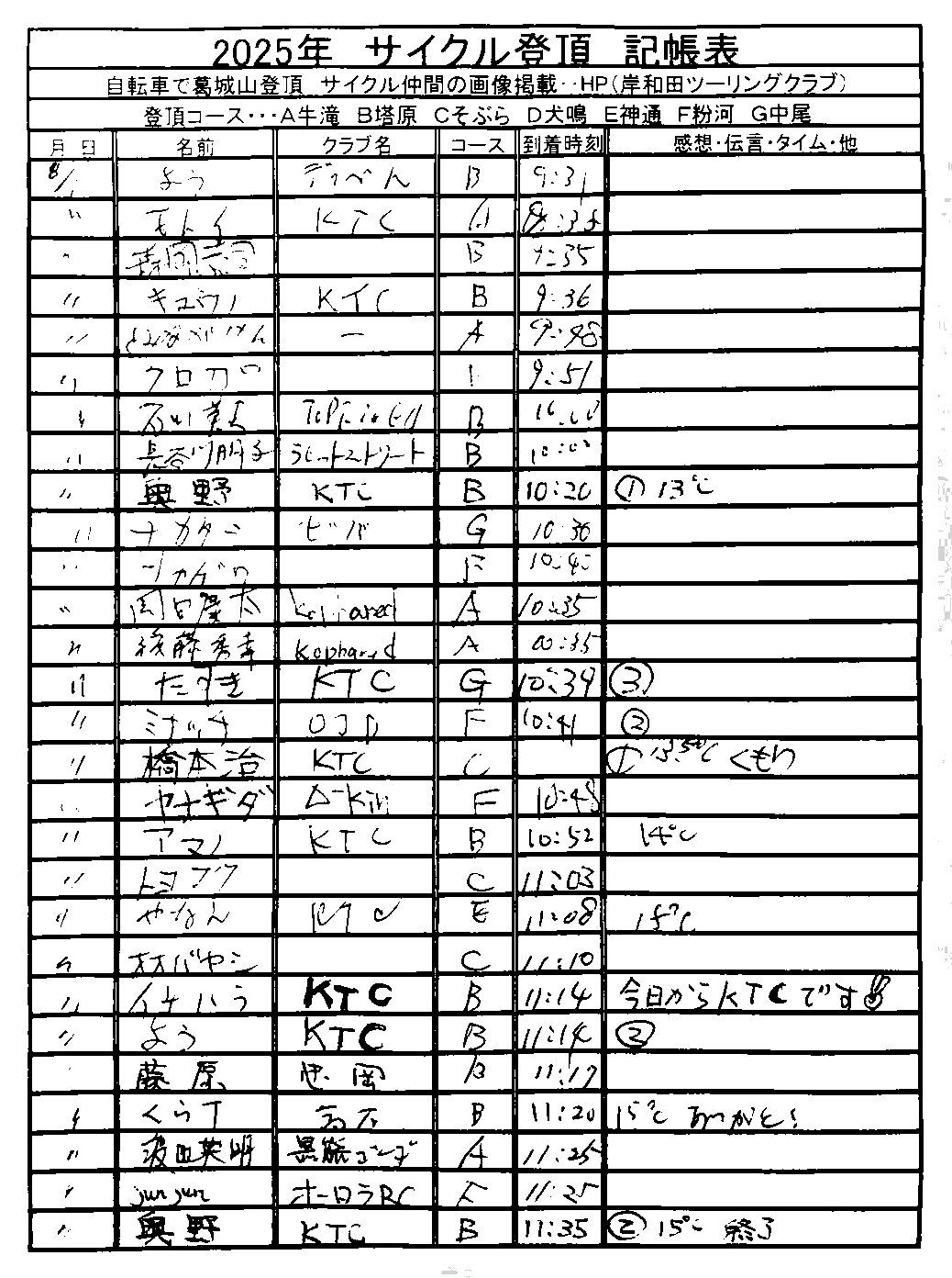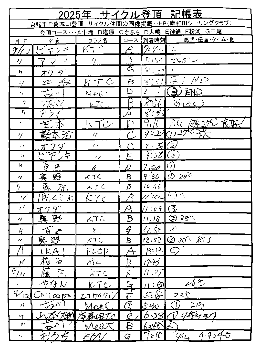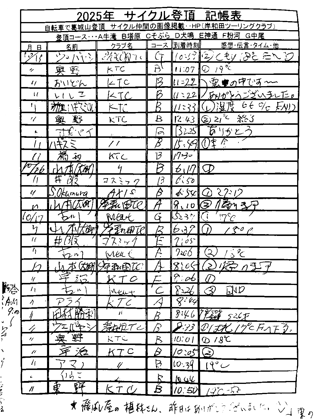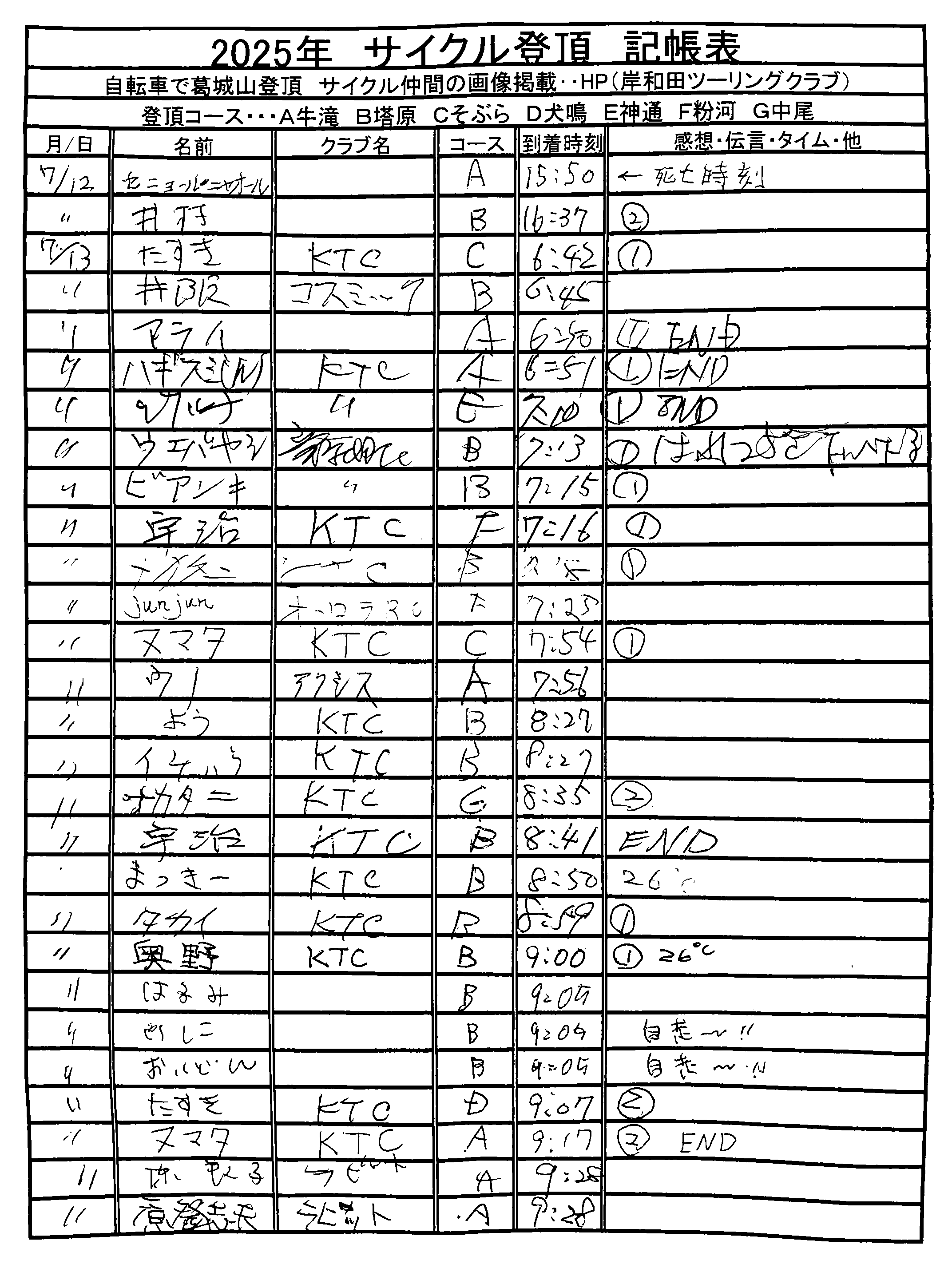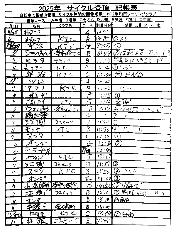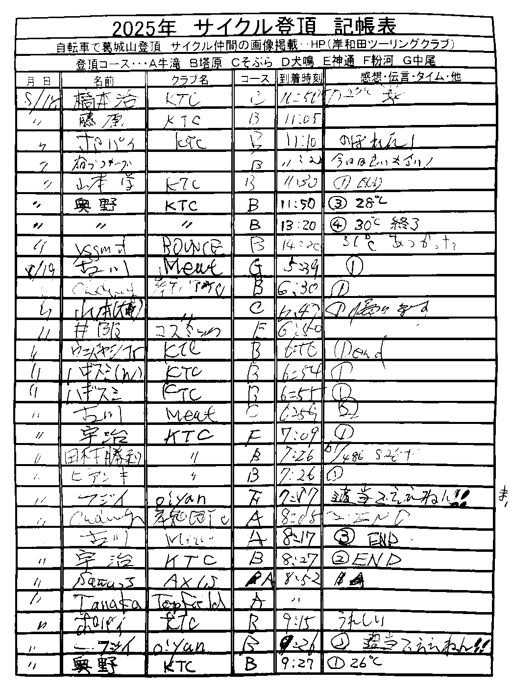 ■ 記帳表と回数表 ■ 岸和田ツーリングクラブの記帳表・回数表から引用させていただいてます。 2026年02月の記帳表 01/29〜02/01 01〜03 2026年01月の記帳表 12/31〜01/01 01〜04 04〜06 06〜08 08〜10 10〜13 13〜15 15〜17 17〜18 19〜21 21〜26 27〜29 29〜02/01 2025年12月の記帳表 11/30〜12/01 02〜03 03〜06 06〜07 07〜08 08〜10 10〜11 12〜13 13〜16 16〜18 18〜20 20〜20 20〜23 24〜28 28〜29 29〜31 31〜01/01 2025年11月の記帳表 10/30〜10/01 01〜02 02〜03 03〜04 05〜07 07〜08 08〜10 10〜11 11〜12 12〜14 14〜15 15〜16 16〜16 16〜17 17〜19 19〜21 19〜21 21〜22 22〜23 23〜24 24〜26 26〜28 28〜30 30〜30 30〜12/01 2025年10月の記帳表 09/30〜10/01 01〜02 02〜05 05〜06 06〜07 07〜08 08〜10 10〜11 11〜12 12〜13 13〜14 14〜15 15〜17 17〜18 18〜19 19〜21 21〜23 23〜25 25〜25 26〜27 27〜29 29〜30 30〜11/01 2025年09月の記帳表 08/31〜09/01 01〜02 02〜03 03〜06 06〜07 07〜07 07〜09 09〜10 10〜12 12〜13 13〜14 14〜15 15〜16 16〜18 18〜19 19〜20 20〜21 21〜22 22〜23 23〜24 24〜26 26〜27 27〜28 28〜28 28〜30 30〜10/01 2025年08月の記帳表 07/30〜08/01 01〜02 02〜03 03〜03 03〜03 03〜05 05〜06 06〜08 08〜08 09〜09 09〜12 12〜13 13〜14 14〜14 14〜15 15〜16 16〜17 17〜17 17〜18 18〜19 19〜20 20〜22 22〜23 23〜23 23〜24 24〜26 26〜27 27〜28 28〜29 29〜30 30〜31 31〜31 31〜09/01 2025年07月の記帳表 06/29〜07/01 01〜02 02〜03 03〜05 05〜05 05〜06 06〜06 06〜07 07〜09 09〜10 10〜12 12〜12 12〜13 13〜14 14〜16 16〜18 18〜19 19〜20 20〜20 20〜21 21〜21 22〜22 22〜23 24〜25 25〜26 26〜26 26〜27 27〜28 28〜29 29〜30 30〜08/01 2025年06月の記帳表 05/31〜06/01 01〜01 01〜02 02〜04 04〜05 05〜06 06〜07 07〜07 07〜08 08〜11 12〜13 13〜15 15〜16 16〜17 17〜18 18〜19 19〜20 20〜21 21〜22 22〜23 23〜25 26〜27 27〜28 28〜28 28〜29 28〜29 29〜29 29〜07/01 2025年05月の記帳表 04/29〜05/01 01〜01 01〜03 03〜03 03〜04 04〜04 04〜05 05〜05 05〜07 07〜08 08〜08 09〜10 10〜11 11〜11 11〜13 13〜14 14〜15 15〜16 16〜18 18〜18 18〜20 20〜21 21〜23 23〜23 23〜26 26〜27 27〜28 28〜30 30〜31 31〜06/01 2025年04月の記帳表 03/30〜04/01 01〜03 03〜04 04〜05 05〜06 06〜08 08〜09 09〜11 11〜12 12〜12 12〜14 14〜16 16〜17 17〜18 18〜19 19〜20 20〜20 20〜21 21〜23 24〜25 25〜26 26〜26 26〜26 26〜27 27〜27 27〜29 29〜29 29〜05/01 2025年03月の記帳表 02/28〜03/01 01〜06 06〜08 08〜09 09〜09 10〜12 12〜13 13〜14 14〜17 17〜21 21〜22 23〜23 23〜24 24〜25 25〜26 26〜29 29〜30 30〜30 30〜04/01 2025年02月の記帳表 01/30〜02/01 01〜04 04〜09 09〜13 13〜15 15〜15 15〜16 16〜18 19〜23 23〜28 28〜03/01 2025年01月の記帳表 12/31〜01/01 01〜02 02〜03 03〜04 04〜05 05〜05 07〜08 09〜13 13〜16 16〜18 18〜19 19〜21 21〜23 23〜25 25〜26 26〜26 26〜30 30〜02/01 2024年12月の記帳表 11/30〜12/01 01〜01 01〜02 02〜03 03〜04 05〜06 06〜07 07〜08 08〜09 09〜11 11〜12 12〜13 13〜15 15〜18 18〜20 20〜22 22〜23 23〜25 25〜27 27〜29 29〜31 31〜01/01 2024年11月の記帳表 01〜03 03〜04 04〜04 04〜05 05〜06 06〜08 08〜09 09〜10 10〜10 10〜12 12〜13 13〜14 14〜16 16〜17 17〜18 18〜19 19〜20 20〜21 22〜23 23〜24 24〜24 24〜25 26〜27 27〜30 30〜12/01 2024年10月の記帳表 09/29〜10/01 01〜02 02〜02 03〜05 05〜06 06〜06 06〜09 09〜10 10〜11 11〜12 12〜13 13〜13 13〜14 14〜15 15〜16 17〜17 17〜18 19〜20 20〜20 20〜22 22〜24 24〜25 25〜26 26〜27 27〜27 27〜29 29〜31 31〜31 2024年09月の記帳表 08/30〜09/01 01〜01 02〜03 03〜04 04〜05 05〜07 07〜07 07〜08 08〜09 09〜11 11〜12 12〜13 13〜14 14〜16 16〜16 16〜18 18〜20 20〜20 21〜21 21〜23 23〜23 23〜24 24〜25 25〜25 26〜27 27〜28 28〜28 28〜29 29〜29 29〜10/01 2024年08月の記帳表 07/31〜08/01 01〜02 02〜03 03〜03 03〜04 04〜04 04〜06 06〜07 07〜08 08〜10 10〜10 10〜11 11〜11 11〜12 12〜13 13〜14 14〜14 15〜15 15〜16 16〜17 17〜18 18〜18 18〜19 19〜21 21〜22 22〜23 23〜24 24〜25 25〜26 26〜27 28〜30 30〜09/01 2024年07月の記帳表 06/29〜07/03 03〜03 04〜05 05〜06 06〜06 06〜07 07〜07 07〜08 09〜09 09〜13 13〜14 14〜14 14〜15 15〜17 17〜18 18〜19 19〜20 20〜21 21〜21 21〜22 22〜24 24〜25 25〜26 26〜27 27〜28 28〜28 28〜29 29〜31 31〜08/01 2024年06月の記帳表 05/30〜06/01 01〜01 01〜02 02〜02 02〜03 03〜04 04〜05 05〜06 06〜07 07〜08 08〜08 08〜09 09〜11 11〜12 12〜12 12〜14 14〜15 15〜15 15〜16 16〜16 16〜17 17〜17 17〜19 19〜20 20〜22 22〜22 22〜25 25〜26 26〜29 29〜29 29〜29 29〜07/03 2024年05月の記帳表 04/29〜05/02 02〜02 02〜02 02〜03 03〜04 04〜04 04〜04 04〜05 05〜05 05〜07 07〜09 09〜10 10〜10 10〜11 11〜11 11〜11 11〜11 11〜12 12〜14 14〜15 15〜15 15〜17 17〜18 18〜18 18〜18 18〜20 20〜22 22〜22 22〜24 24〜25 25〜25 25〜26 26〜26 26〜26 26〜29 29〜30 30〜06/01 2024年04月の記帳表 03/31〜04/02 02〜05 05〜06 06〜06 06〜07 07〜07 07〜10 10〜11 11〜12 12〜13 13〜13 13〜14 14〜14 14〜16 16〜17 17〜17 17〜18 18〜19 19〜20 20〜20 21〜24 24〜25 25〜27 27〜28 28〜28 28〜29 29〜29 29〜05/02 2024年03月の記帳表 02/28〜03/01 01〜03 03〜03 03〜04 04〜07 07〜09 09〜10 10〜13 13〜14 14〜16 16〜16 16〜17 17〜18 19〜21 21〜22 22〜27 27〜28 28〜30 30〜30 31〜31 31〜 2024年02月の記帳表 01/31〜02/03 03〜03 03〜06 06〜07 08〜09 09〜10 10〜11 11〜11 11〜12 13〜14 14〜14 14〜16 16〜17 17〜18 18〜18 18〜20 20〜24 24〜26 26〜28 28〜03/01 2024年01月の記帳表 01〜02 02〜03 03〜05 05〜06 06〜07 07〜07 08〜09 09〜12 12〜13 14〜14 14〜17 17〜20 21〜23 23〜27 28〜29 29〜31 31〜02/03 2023