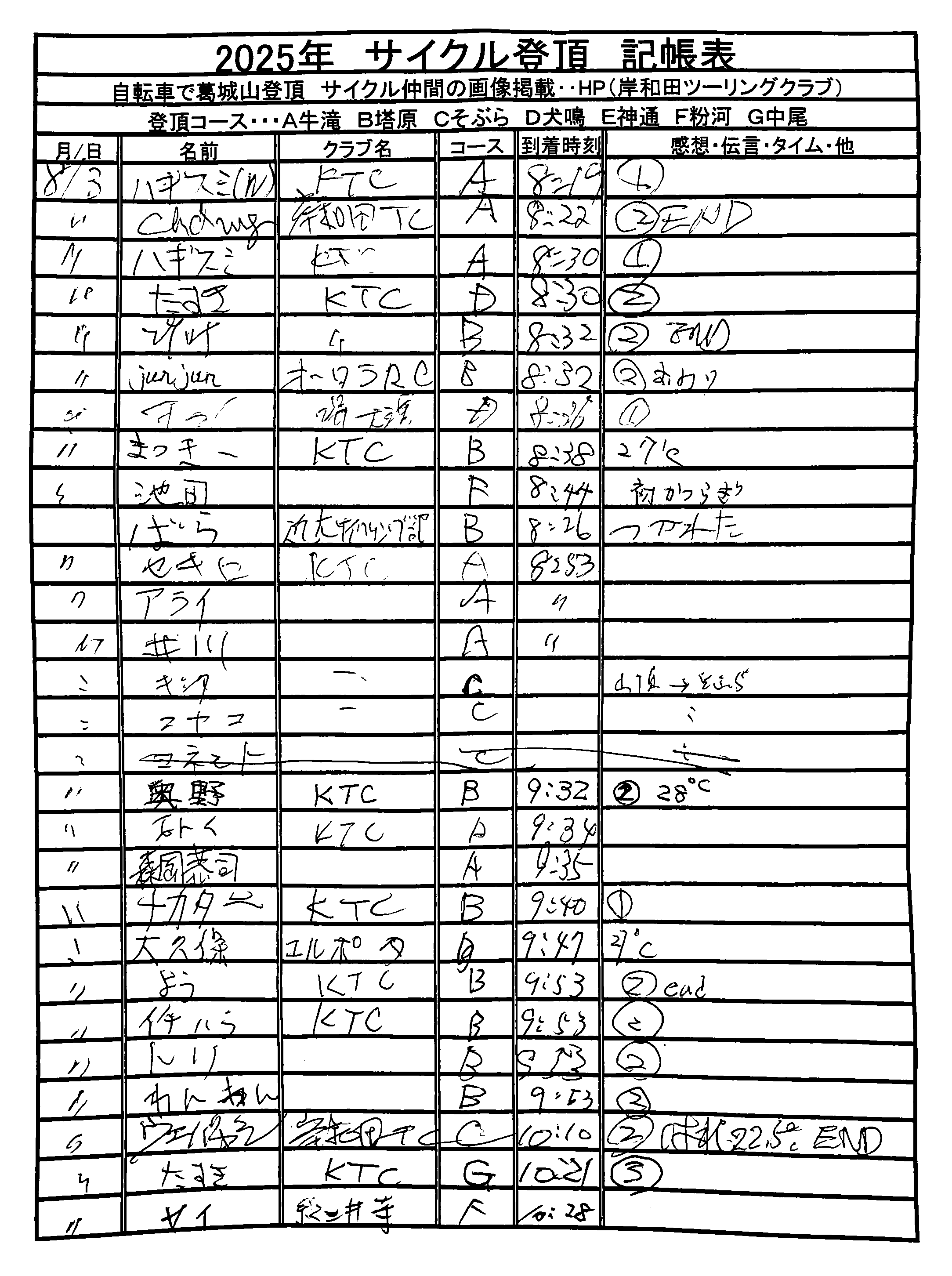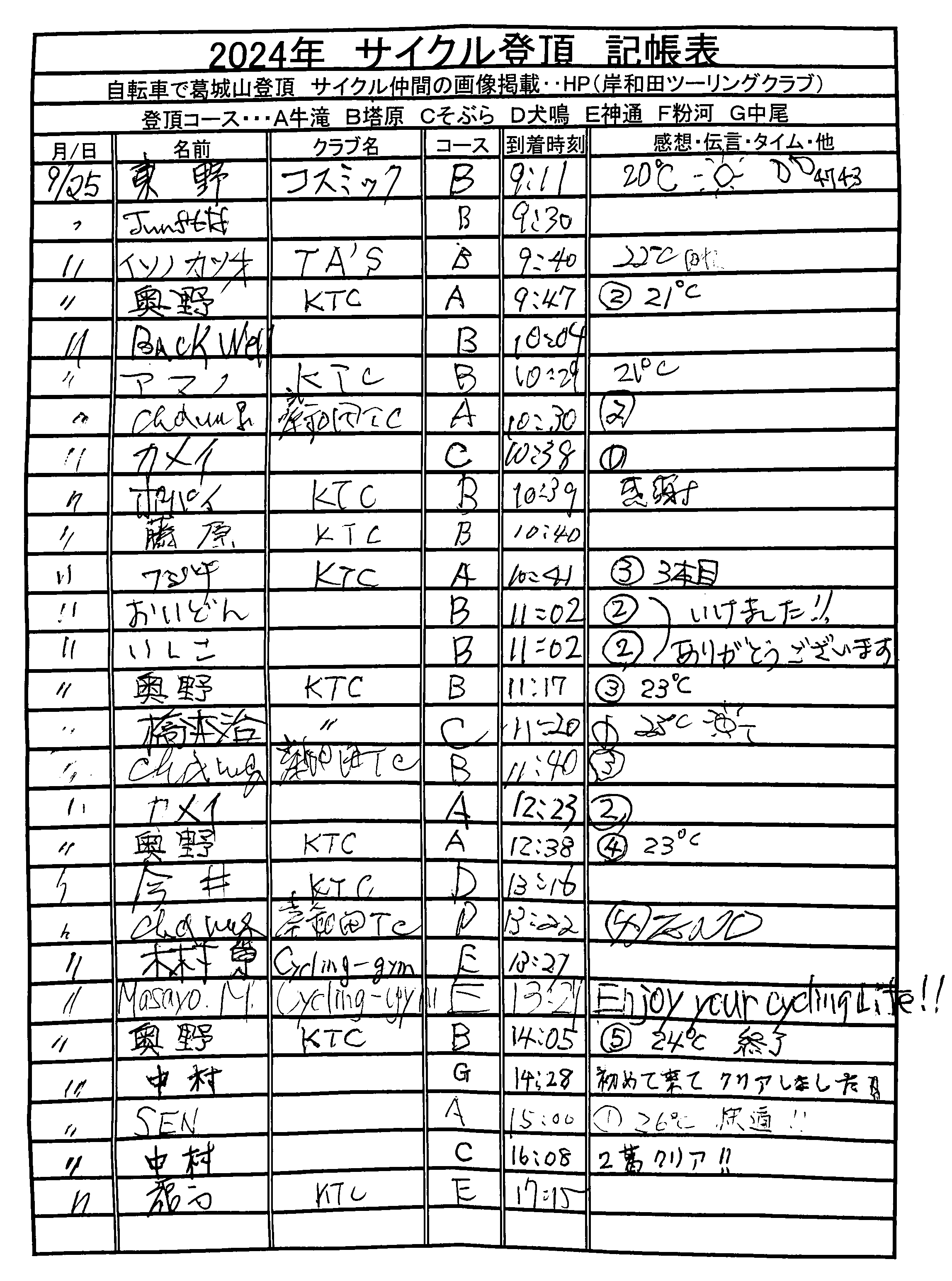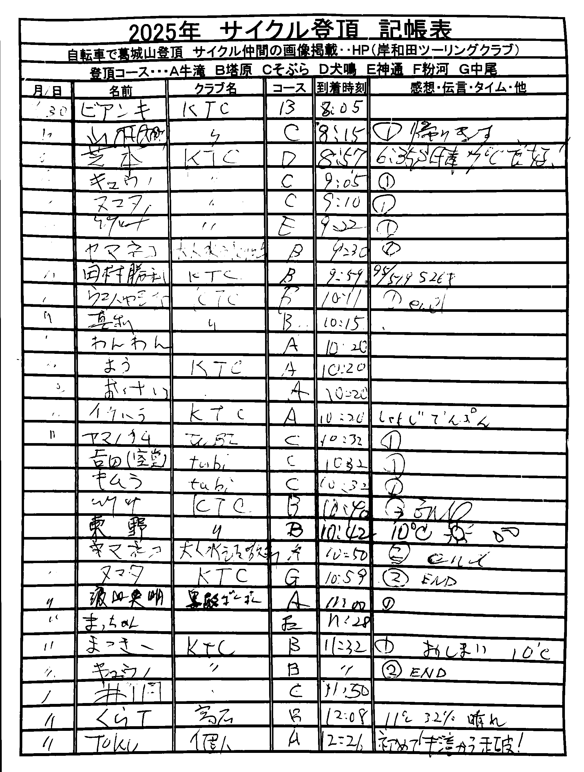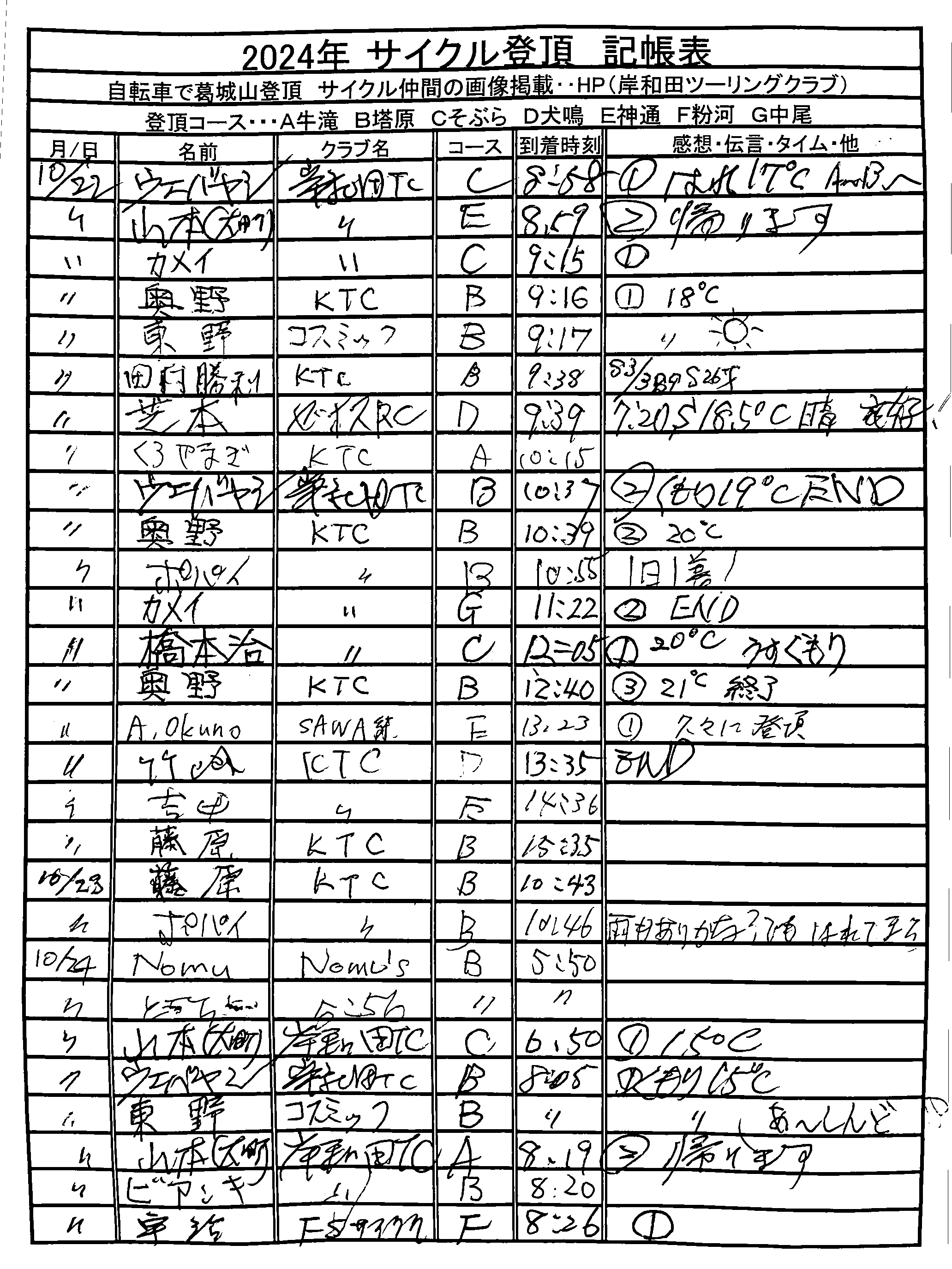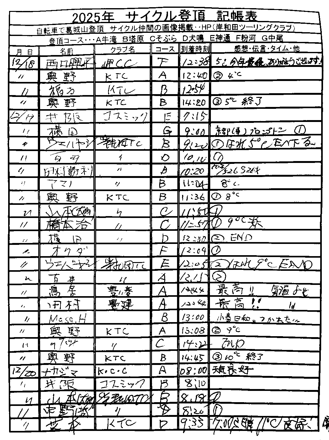 ■ 記帳表と回数表 ■ 岸和田ツーリングクラブの記帳表・回数表から引用させていただいてます。 2026年02月の記帳表 01/29〜02/01 01〜03 2026年01月の記帳表 12/31〜01/01 01〜04 04〜06 06〜08 08〜10 10〜13 13〜15 15〜17 17〜18 19〜21 21〜26 27〜29 29〜02/01 2025年12月の記帳表 11/30〜12/01 02〜03 03〜06 06〜07 07〜08 08〜10 10〜11 12〜13 13〜16 16〜18 18〜20 20〜20 20〜23 24〜28 28〜29 29〜31 31〜01/01 2025年11月の記帳表 10/30〜10/01 01〜02 02〜03 03〜04 05〜07 07〜08 08〜10 10〜11 11〜12 12〜14 14〜15 15〜16 16〜16 16〜17 17〜19 19〜21 19〜21 21〜22 22〜23 23〜24 24〜26 26〜28 28〜30 30〜30 30〜12/01 2025年10月の記帳表 09/30〜10/01 01〜02 02〜05 05〜06 06〜07 07〜08 08〜10 10〜11 11〜12 12〜13 13〜14 14〜15 15〜17 17〜18 18〜19 19〜21 21〜23 23〜25 25〜25 26〜27 27〜29 29〜30 30〜11/01 2025年09月の記帳表 08/31〜09/01 01〜02 02〜03 03〜06 06〜07 07〜07 07〜09 09〜10 10〜12 12〜13 13〜14 14〜15 15〜16 16〜18 18〜19 19〜20 20〜21 21〜22 22〜23 23〜24 24〜26 26〜27 27〜28 28〜28 28〜30 30〜10/01 2025年08月の記帳表 07/30〜08/01 01〜02 02〜03 03〜03 03〜03 03〜05 05〜06 06〜08 08〜08 09〜09 09〜12 12〜13 13〜14 14〜14 14〜15 15〜16 16〜17 17〜17 17〜18 18〜19 19〜20 20〜22 22〜23 23〜23 23〜24 24〜26 26〜27 27〜28 28〜29 29〜30 30〜31 31〜31 31〜09/01 2025年07月の記帳表 06/29〜07/01 01〜02 02〜03 03〜05 05〜05 05〜06 06〜06 06〜07 07〜09 09〜10 10〜12 12〜12 12〜13 13〜14 14〜16 16〜18 18〜19 19〜20 20〜20 20〜21 21〜21 22〜22 22〜23 24〜25 25〜26 26〜26 26〜27 27〜28 28〜29 29〜30 30〜08/01 2025年06月の記帳表 05/31〜06/01 01〜01 01〜02 02〜04 04〜05 05〜06 06〜07 07〜07 07〜08 08〜11 12〜13 13〜15 15〜16 16〜17 17〜18 18〜19 19〜20 20〜21 21〜22 22〜23 23〜25 26〜27 27〜28 28〜28 28〜29 28〜29 29〜29 29〜07/01 2025年05月の記帳表 04/29〜05/01 01〜01 01〜03 03〜03 03〜04 04〜04 04〜05 05〜05 05〜07 07〜08 08〜08 09〜10 10〜11 11〜11 11〜13 13〜14 14〜15 15〜16 16〜18 18〜18 18〜20 20〜21 21〜23 23〜23 23〜26 26〜27 27〜28 28〜30 30〜31 31〜06/01 2025年04月の記帳表 03/30〜04/01 01〜03 03〜04 04〜05 05〜06 06〜08 08〜09 09〜11 11〜12 12〜12 12〜14 14〜16 16〜17 17〜18 18〜19 19〜20 20〜20 20〜21 21〜23 24〜25 25〜26 26〜26 26〜26 26〜27 27〜27 27〜29 29〜29 29〜05/01 2025年03月の記帳表 02/28〜03/01 01〜06 06〜08 08〜09 09〜09 10〜12 12〜13 13〜14 14〜17 17〜21 21〜22 23〜23 23〜24 24〜25 25〜26 26〜29 29〜30 30〜30 30〜04/01 2025年02月の記帳表 01/30〜02/01 01〜04 04〜09 09〜13 13〜15 15〜15 15〜16 16〜18 19〜23 23〜28 28〜03/01 2025年01月の記帳表 12/31〜01/01 01〜02 02〜03 03〜04 04〜05 05〜05 07〜08 09〜13 13〜16 16〜18 18〜19 19〜21 21〜23 23〜25 25〜26 26〜26 26〜30 30〜02/01 2024年12月の記帳表 11/30〜12/01 01〜01 01〜02 02〜03 03〜04 05〜06 06〜07 07〜08 08〜09 09〜11 11〜12 12〜13 13〜15 15〜18 18〜20 20〜22 22〜23 23〜25 25〜27 27〜29 29〜31 31〜01/01 2024年11月の記帳表 01〜03 03〜04 04〜04 04〜05 05〜06 06〜08 08〜09 09〜10 10〜10 10〜12 12〜13 13〜14 14〜16 16〜17 17〜18 18〜19 19〜20 20〜21 22〜23 23〜24 24〜24 24〜25 26〜27 27〜30 30〜12/01 2024年10月の記帳表 09/29〜10/01 01〜02 02〜02 03〜05 05〜06 06〜06 06〜09 09〜10 10〜11 11〜12 12〜13 13〜13 13〜14 14〜15 15〜16 17〜17 17〜18 19〜20 20〜20 20〜22 22〜24 24〜25 25〜26 26〜27 27〜27 27〜29 29〜31 31〜31 2024年09月の記帳表 08/30〜09/01 01〜01 02〜03 03〜04 04〜05 05〜07 07〜07 07〜08 08〜09 09〜11 11〜12 12〜13 13〜14 14〜16 16〜16 16〜18 18〜20 20〜20 21〜21 21〜23 23〜23 23〜24 24〜25 25〜25 26〜27 27〜28 28〜28 28〜29 29〜29 29〜10/01 2024年08月の記帳表 07/31〜08/01 01〜02 02〜03 03〜03 03〜04 04〜04 04〜06 06〜07 07〜08 08〜10 10〜10 10〜11 11〜11 11〜12 12〜13 13〜14 14〜14 15〜15 15〜16 16〜17 17〜18 18〜18 18〜19 19〜21 21〜22 22〜23 23〜24 24〜25 25〜26 26〜27 28〜30 30〜09/01 2024年07月の記帳表 06/29〜07/03 03〜03 04〜05 05〜06 06〜06 06〜07 07〜07 07〜08 09〜09 09〜13 13〜14 14〜14 14〜15 15〜17 17〜18 18〜19 19〜20 20〜21 21〜21 21〜22 22〜24 24〜25 25〜26 26〜27 27〜28 28〜28 28〜29 29〜31 31〜08/01 2024年06月の記帳表 05/30〜06/01 01〜01 01〜02 02〜02 02〜03 03〜04 04〜05 05〜06 06〜07 07〜08 08〜08 08〜09 09〜11 11〜12 12〜12 12〜14 14〜15 15〜15 15〜16 16〜16 16〜17 17〜17 17〜19 19〜20 20〜22 22〜22 22〜25 25〜26 26〜29 29〜29 29〜29 29〜07/03 2024年05月の記帳表 04/29〜05/02 02〜02 02〜02 02〜03 03〜04 04〜04 04〜04 04〜05 05〜05 05〜07 07〜09 09〜10 10〜10 10〜11 11〜11 11〜11 11〜11 11〜12 12〜14 14〜15 15〜15 15〜17 17〜18 18〜18 18〜18 18〜20 20〜22 22〜22 22〜24 24〜25 25〜25 25〜26 26〜26 26〜26 26〜29 29〜30 30〜06/01 2024年04月の記帳表 03/31〜04/02 02〜05 05〜06 06〜06 06〜07 07〜07 07〜10 10〜11 11〜12 12〜13 13〜13 13〜14 14〜14 14〜16 16〜17 17〜17 17〜18 18〜19 19〜20 20〜20 21〜24 24〜25 25〜27 27〜28 28〜28 28〜29 29〜29 29〜05/02 2024年03月の記帳表 02/28〜03/01 01〜03 03〜03 03〜04 04〜07 07〜09 09〜10 10〜13 13〜14 14〜16 16〜16 16〜17 17〜18 19〜21 21〜22 22〜27 27〜28 28〜30 30〜30 31〜31 31〜 2024年02月の記帳表 01/31〜02/03 03〜03 03〜06 06〜07 08〜09 09〜10 10〜11 11〜11 11〜12 13〜14 14〜14 14〜16 16〜17 17〜18 18〜18 18〜20 20〜24 24〜26 26〜28 28〜03/01 2024年01月の記帳表 01〜02 02〜03 03〜05 05〜06 06〜07 07〜07 08〜09 09〜12 12〜13 14〜14 14〜17 17〜20 21〜23 23〜27 28〜29 29〜31 31〜02/03 2023