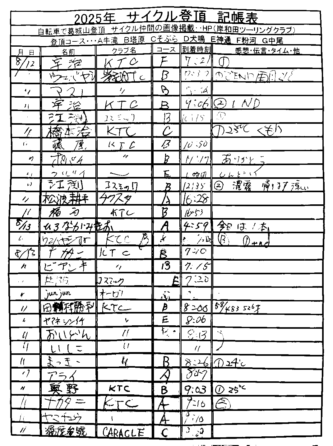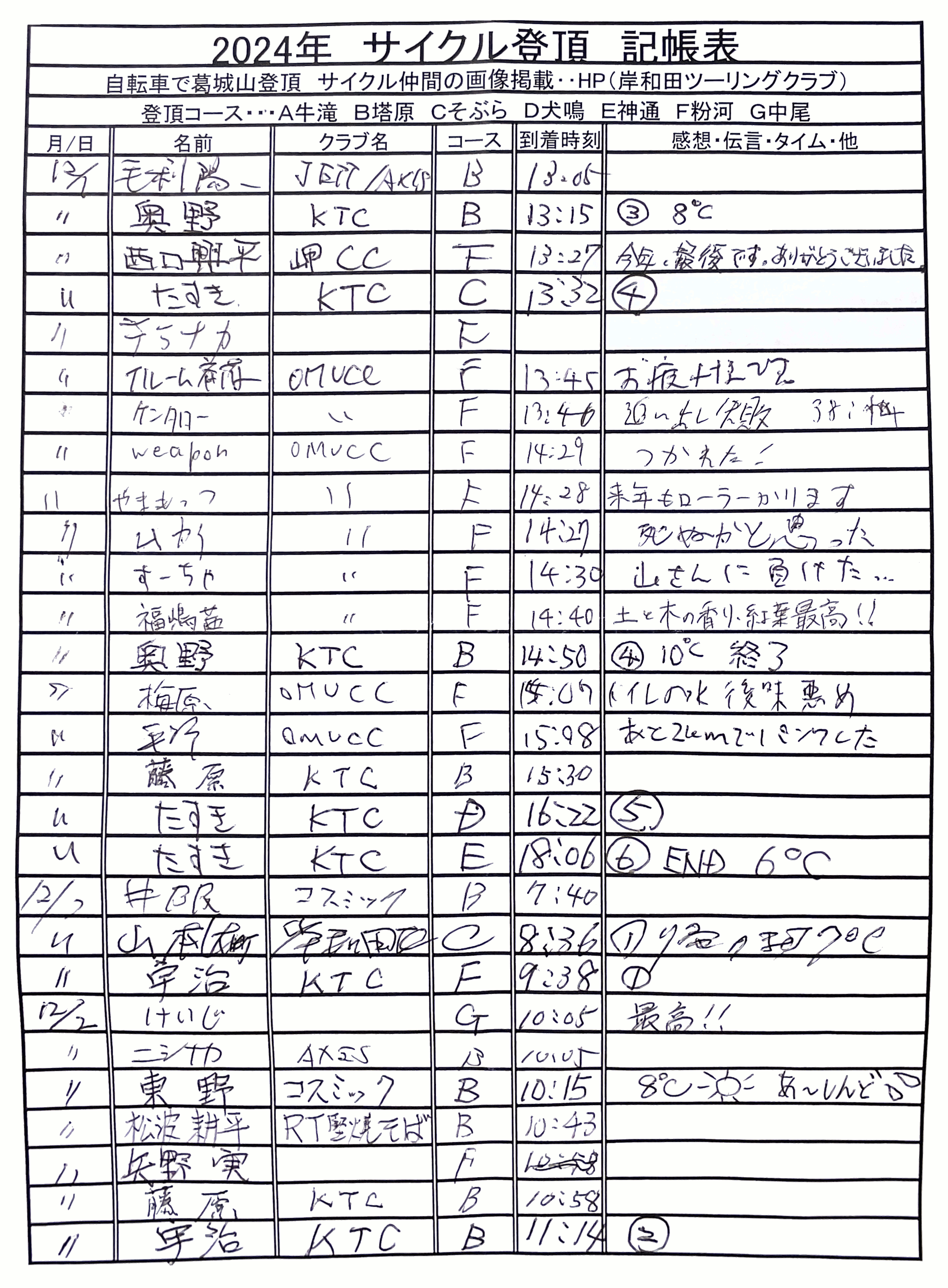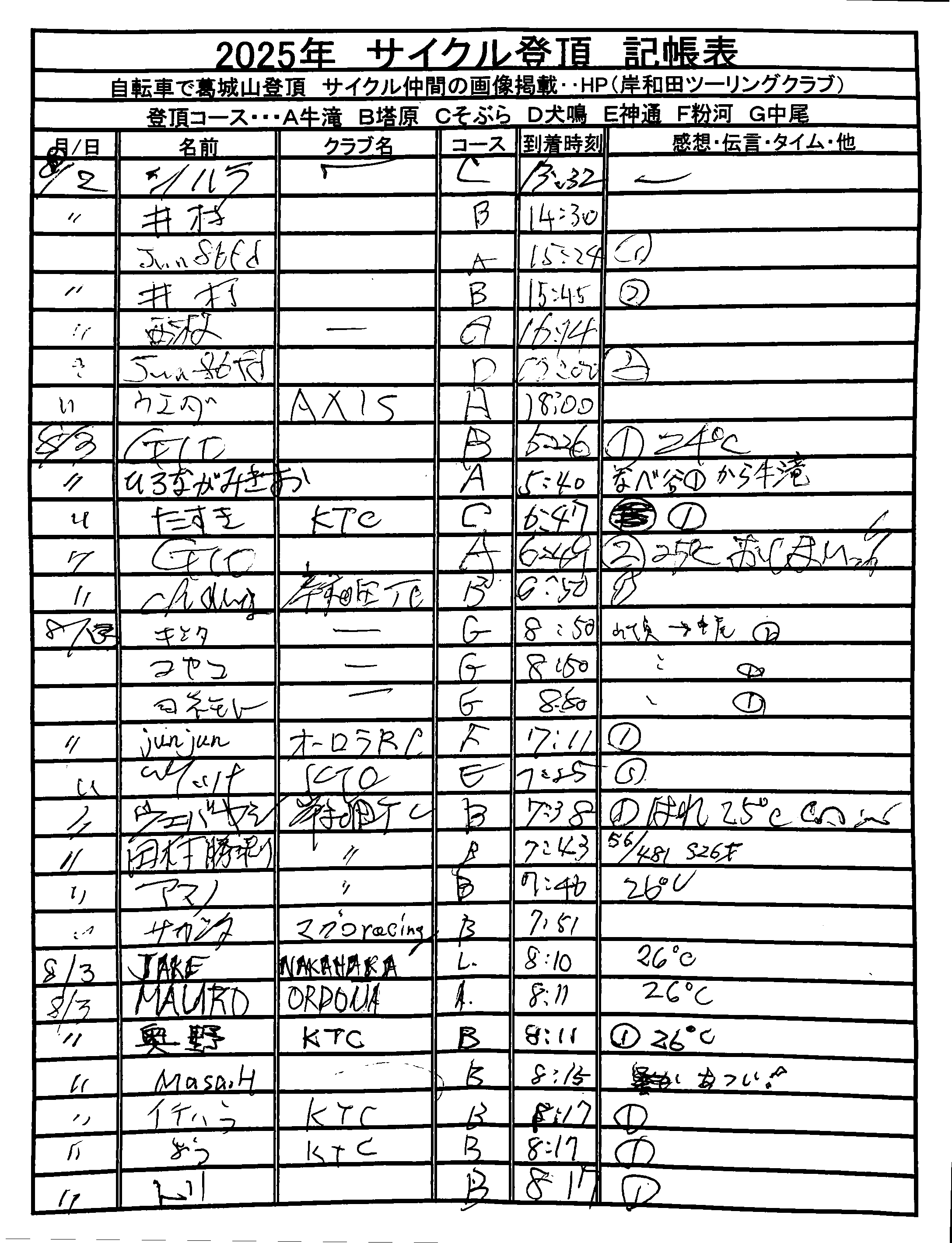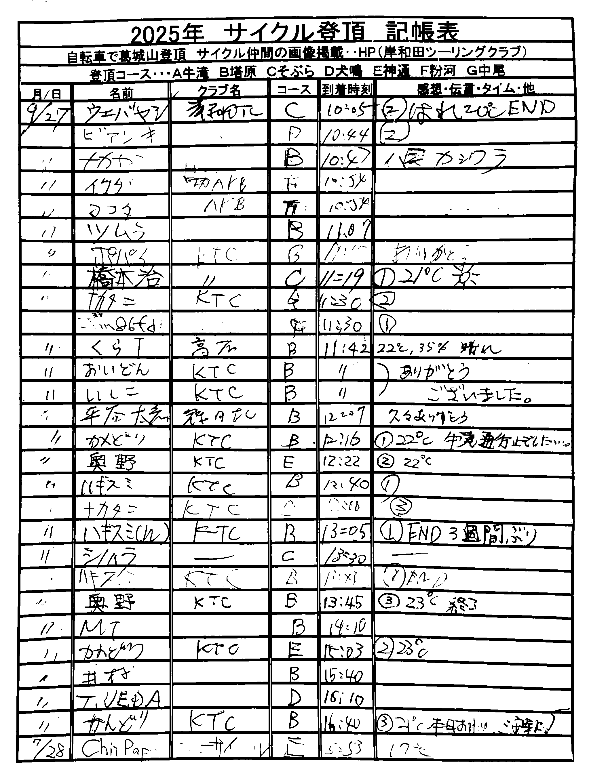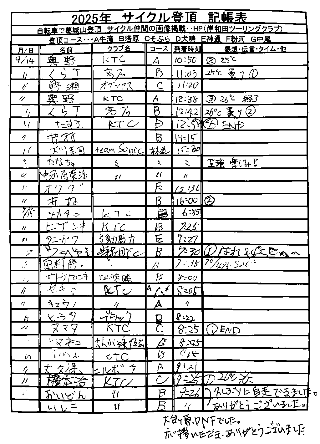 ■ 記帳表と回数表 ■ 岸和田ツーリングクラブの記帳表・回数表から引用させていただいてます。 2026年02月の記帳表 01/29〜02/01 01〜03 2026年01月の記帳表 12/31〜01/01 01〜04 04〜06 06〜08 08〜10 10〜13 13〜15 15〜17 17〜18 19〜21 21〜26 27〜29 29〜02/01 2025年12月の記帳表 11/30〜12/01 02〜03 03〜06 06〜07 07〜08 08〜10 10〜11 12〜13 13〜16 16〜18 18〜20 20〜20 20〜23 24〜28 28〜29 29〜31 31〜01/01 2025年11月の記帳表 10/30〜10/01 01〜02 02〜03 03〜04 05〜07 07〜08 08〜10 10〜11 11〜12 12〜14 14〜15 15〜16 16〜16 16〜17 17〜19 19〜21 19〜21 21〜22 22〜23 23〜24 24〜26 26〜28 28〜30 30〜30 30〜12/01 2025年10月の記帳表 09/30〜10/01 01〜02 02〜05 05〜06 06〜07 07〜08 08〜10 10〜11 11〜12 12〜13 13〜14 14〜15 15〜17 17〜18 18〜19 19〜21 21〜23 23〜25 25〜25 26〜27 27〜29 29〜30 30〜11/01 2025年09月の記帳表 08/31〜09/01 01〜02 02〜03 03〜06 06〜07 07〜07 07〜09 09〜10 10〜12 12〜13 13〜14 14〜15 15〜16 16〜18 18〜19 19〜20 20〜21 21〜22 22〜23 23〜24 24〜26 26〜27 27〜28 28〜28 28〜30 30〜10/01 2025年08月の記帳表 07/30〜08/01 01〜02 02〜03 03〜03 03〜03 03〜05 05〜06 06〜08 08〜08 09〜09 09〜12 12〜13 13〜14 14〜14 14〜15 15〜16 16〜17 17〜17 17〜18 18〜19 19〜20 20〜22 22〜23 23〜23 23〜24 24〜26 26〜27 27〜28 28〜29 29〜30 30〜31 31〜31 31〜09/01 2025年07月の記帳表 06/29〜07/01 01〜02 02〜03 03〜05 05〜05 05〜06 06〜06 06〜07 07〜09 09〜10 10〜12 12〜12 12〜13 13〜14 14〜16 16〜18 18〜19 19〜20 20〜20 20〜21 21〜21 22〜22 22〜23 24〜25 25〜26 26〜26 26〜27 27〜28 28〜29 29〜30 30〜08/01 2025年06月の記帳表 05/31〜06/01 01〜01 01〜02 02〜04 04〜05 05〜06 06〜07 07〜07 07〜08 08〜11 12〜13 13〜15 15〜16 16〜17 17〜18 18〜19 19〜20 20〜21 21〜22 22〜23 23〜25 26〜27 27〜28 28〜28 28〜29 28〜29 29〜29 29〜07/01 2025年05月の記帳表 04/29〜05/01 01〜01 01〜03 03〜03 03〜04 04〜04 04〜05 05〜05 05〜07 07〜08 08〜08 09〜10 10〜11 11〜11 11〜13 13〜14 14〜15 15〜16 16〜18 18〜18 18〜20 20〜21 21〜23 23〜23 23〜26 26〜27 27〜28 28〜30 30〜31 31〜06/01 2025年04月の記帳表 03/30〜04/01 01〜03 03〜04 04〜05 05〜06 06〜08 08〜09 09〜11 11〜12 12〜12 12〜14 14〜16 16〜17 17〜18 18〜19 19〜20 20〜20 20〜21 21〜23 24〜25 25〜26 26〜26 26〜26 26〜27 27〜27 27〜29 29〜29 29〜05/01 2025年03月の記帳表 02/28〜03/01 01〜06 06〜08 08〜09 09〜09 10〜12 12〜13 13〜14 14〜17 17〜21 21〜22 23〜23 23〜24 24〜25 25〜26 26〜29 29〜30 30〜30 30〜04/01 2025年02月の記帳表 01/30〜02/01 01〜04 04〜09 09〜13 13〜15 15〜15 15〜16 16〜18 19〜23 23〜28 28〜03/01 2025年01月の記帳表 12/31〜01/01 01〜02 02〜03 03〜04 04〜05 05〜05 07〜08 09〜13 13〜16 16〜18 18〜19 19〜21 21〜23 23〜25 25〜26 26〜26 26〜30 30〜02/01 2024年12月の記帳表 11/30〜12/01 01〜01 01〜02 02〜03 03〜04 05〜06 06〜07 07〜08 08〜09 09〜11 11〜12 12〜13 13〜15 15〜18 18〜20 20〜22 22〜23 23〜25 25〜27 27〜29 29〜31 31〜01/01 2024年11月の記帳表 01〜03 03〜04 04〜04 04〜05 05〜06 06〜08 08〜09 09〜10 10〜10 10〜12 12〜13 13〜14 14〜16 16〜17 17〜18 18〜19 19〜20 20〜21 22〜23 23〜24 24〜24 24〜25 26〜27 27〜30 30〜12/01 2024年10月の記帳表 09/29〜10/01 01〜02 02〜02 03〜05 05〜06 06〜06 06〜09 09〜10 10〜11 11〜12 12〜13 13〜13 13〜14 14〜15 15〜16 17〜17 17〜18 19〜20 20〜20 20〜22 22〜24 24〜25 25〜26 26〜27 27〜27 27〜29 29〜31 31〜31 2024年09月の記帳表 08/30〜09/01 01〜01 02〜03 03〜04 04〜05 05〜07 07〜07 07〜08 08〜09 09〜11 11〜12 12〜13 13〜14 14〜16 16〜16 16〜18 18〜20 20〜20 21〜21 21〜23 23〜23 23〜24 24〜25 25〜25 26〜27 27〜28 28〜28 28〜29 29〜29 29〜10/01 2024年08月の記帳表 07/31〜08/01 01〜02 02〜03 03〜03 03〜04 04〜04 04〜06 06〜07 07〜08 08〜10 10〜10 10〜11 11〜11 11〜12 12〜13 13〜14 14〜14 15〜15 15〜16 16〜17 17〜18 18〜18 18〜19 19〜21 21〜22 22〜23 23〜24 24〜25 25〜26 26〜27 28〜30 30〜09/01 2024年07月の記帳表 06/29〜07/03 03〜03 04〜05 05〜06 06〜06 06〜07 07〜07 07〜08 09〜09 09〜13 13〜14 14〜14 14〜15 15〜17 17〜18 18〜19 19〜20 20〜21 21〜21 21〜22 22〜24 24〜25 25〜26 26〜27 27〜28 28〜28 28〜29 29〜31 31〜08/01 2024年06月の記帳表 05/30〜06/01 01〜01 01〜02 02〜02 02〜03 03〜04 04〜05 05〜06 06〜07 07〜08 08〜08 08〜09 09〜11 11〜12 12〜12 12〜14 14〜15 15〜15 15〜16 16〜16 16〜17 17〜17 17〜19 19〜20 20〜22 22〜22 22〜25 25〜26 26〜29 29〜29 29〜29 29〜07/03 2024年05月の記帳表 04/29〜05/02 02〜02 02〜02 02〜03 03〜04 04〜04 04〜04 04〜05 05〜05 05〜07 07〜09 09〜10 10〜10 10〜11 11〜11 11〜11 11〜11 11〜12 12〜14 14〜15 15〜15 15〜17 17〜18 18〜18 18〜18 18〜20 20〜22 22〜22 22〜24 24〜25 25〜25 25〜26 26〜26 26〜26 26〜29 29〜30 30〜06/01 2024年04月の記帳表 03/31〜04/02 02〜05 05〜06 06〜06 06〜07 07〜07 07〜10 10〜11 11〜12 12〜13 13〜13 13〜14 14〜14 14〜16 16〜17 17〜17 17〜18 18〜19 19〜20 20〜20 21〜24 24〜25 25〜27 27〜28 28〜28 28〜29 29〜29 29〜05/02 2024年03月の記帳表 02/28〜03/01 01〜03 03〜03 03〜04 04〜07 07〜09 09〜10 10〜13 13〜14 14〜16 16〜16 16〜17 17〜18 19〜21 21〜22 22〜27 27〜28 28〜30 30〜30 31〜31 31〜 2024年02月の記帳表 01/31〜02/03 03〜03 03〜06 06〜07 08〜09 09〜10 10〜11 11〜11 11〜12 13〜14 14〜14 14〜16 16〜17 17〜18 18〜18 18〜20 20〜24 24〜26 26〜28 28〜03/01 2024年01月の記帳表 01〜02 02〜03 03〜05 05〜06 06〜07 07〜07 08〜09 09〜12 12〜13 14〜14 14〜17 17〜20 21〜23 23〜27 28〜29 29〜31 31〜02/03 2023